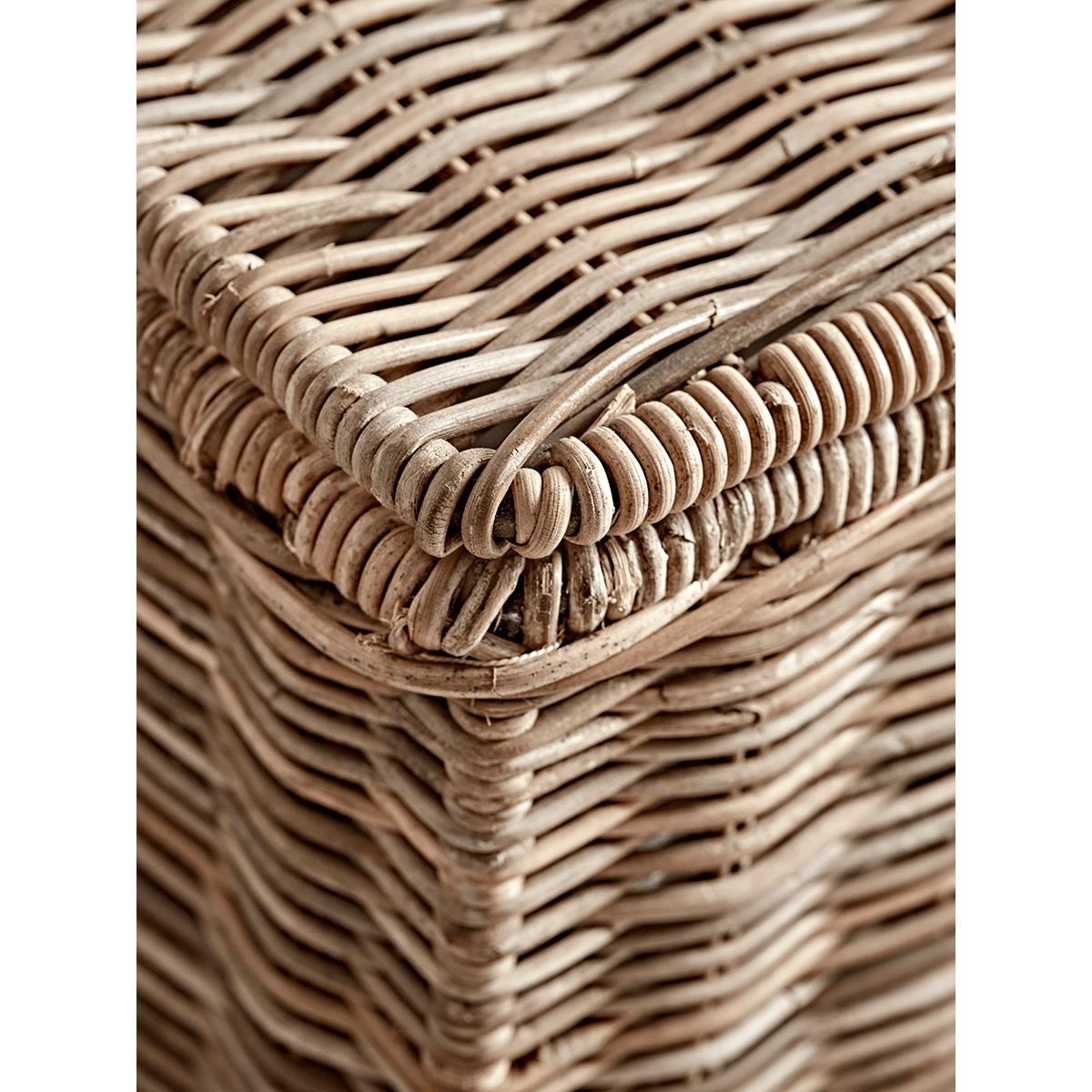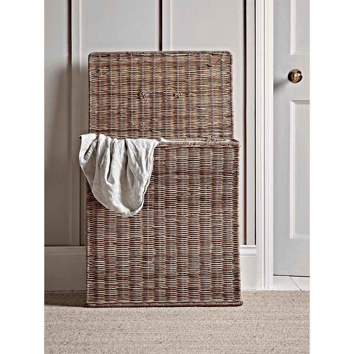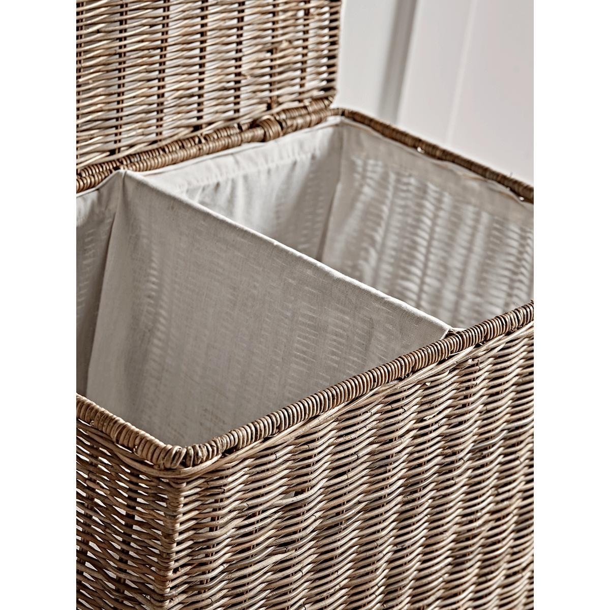 Crafted from finely woven round rattan with a linen inner, our large, rectangular laundry basket features two inner sections for separating your light and dark washing. Each piece features a hinged lid with a simple strap handle to lift.