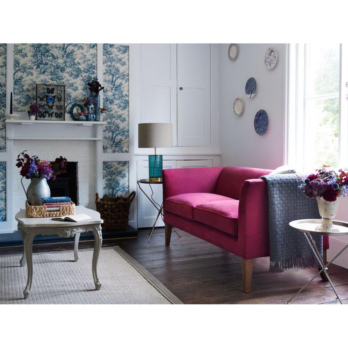 I love this compact sofa for its versatility and refined elegance, making it an excellent choice for smaller living spaces or as a statement piece in eclectic interiors. The orchid cotton matte velvet adds a subtle touch of colour without overwhelming the room, keeping things soft and sophisticated. It works particularly well in contemporary or vintage-inspired settings, especially when paired with textured cushions or metallic accents. Practical tips include layering with contrasting or patterned throws to add visual interest, and placing it in a nook to create an inviting, cosy corner. Its clean lines and elegant arms make it adaptable, so it pairs nicely with both statement coffee tables and minimalistic decor.