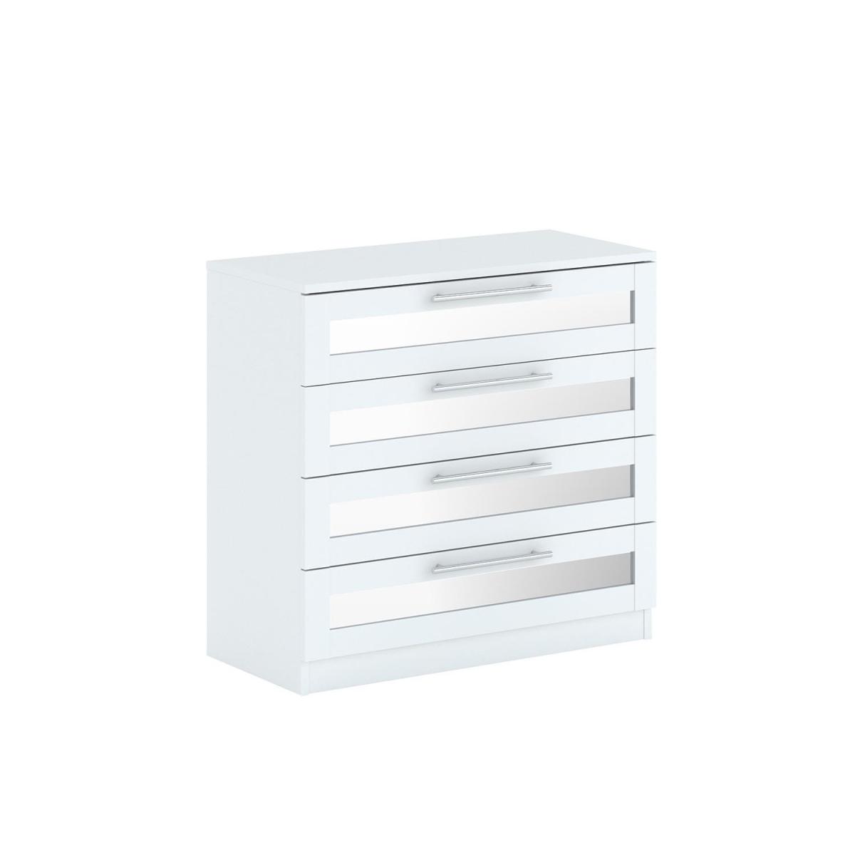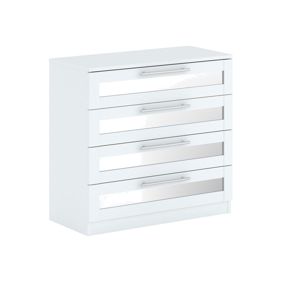 Bring some modern class to your bedroom with the Finley 4 Drawer Chest. Coloured white and featuring sleek accent mirrors, the four drawers allow you ample opportunity to organise and store your clothing. The lightweight MDF will prove sturdy, while the entire unit will be easy to assemble.