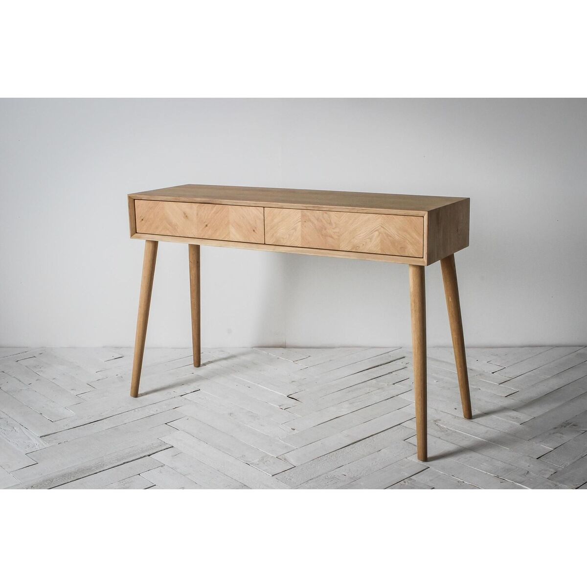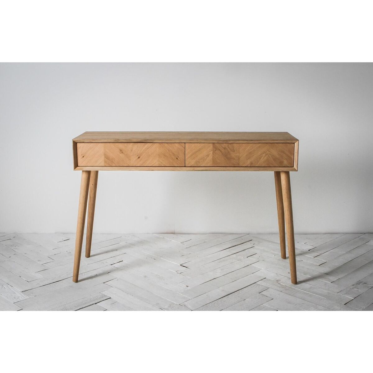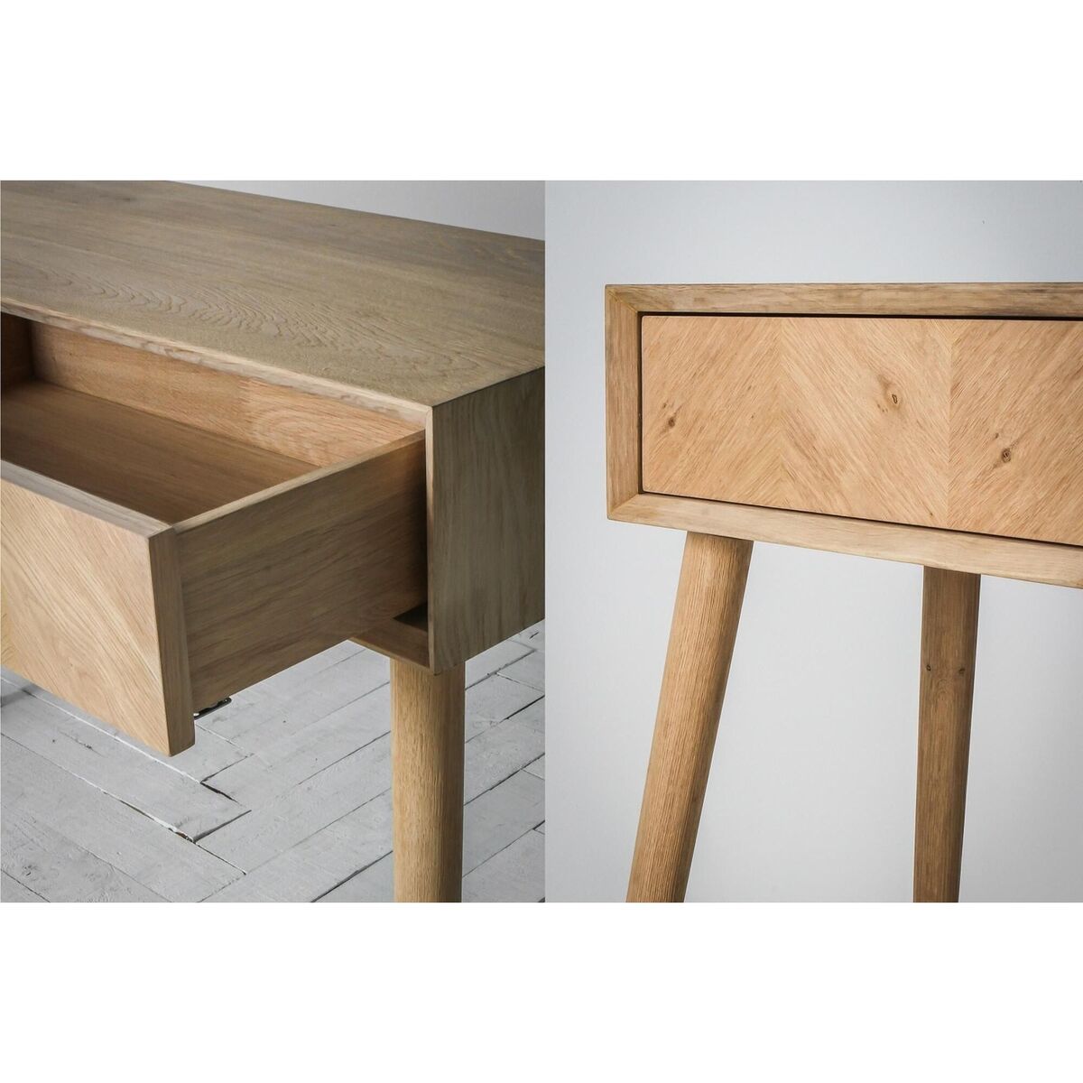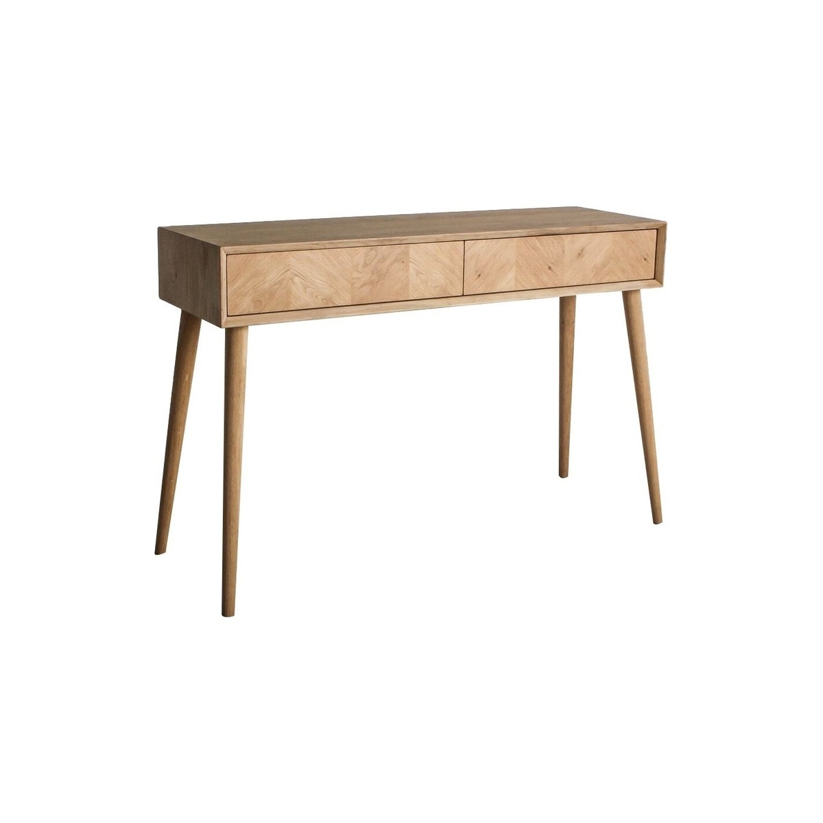 There's just something about natural oak that makes these designs utterly special and certainly, that is the case of the Finn console table. This sleek design gives a nod to mid-century design while celebrating modernity. Crafted from natural oak, the Finn range is a great display of natural beauty, showcasing the streaks, knots and grain of the wood which add texture to its spacious tabletop and slim, tapered legs. Two spacious drawers have been taken to the next level with oak veneer to achieve Chevron-inspired, patterned fronts which add a touch of functionality to this design, ideal for storing small items. Hallways, entryways and even bedrooms will set the perfect scenery for the Finn, a must-have design for the modern home. Discover: The Finn Range