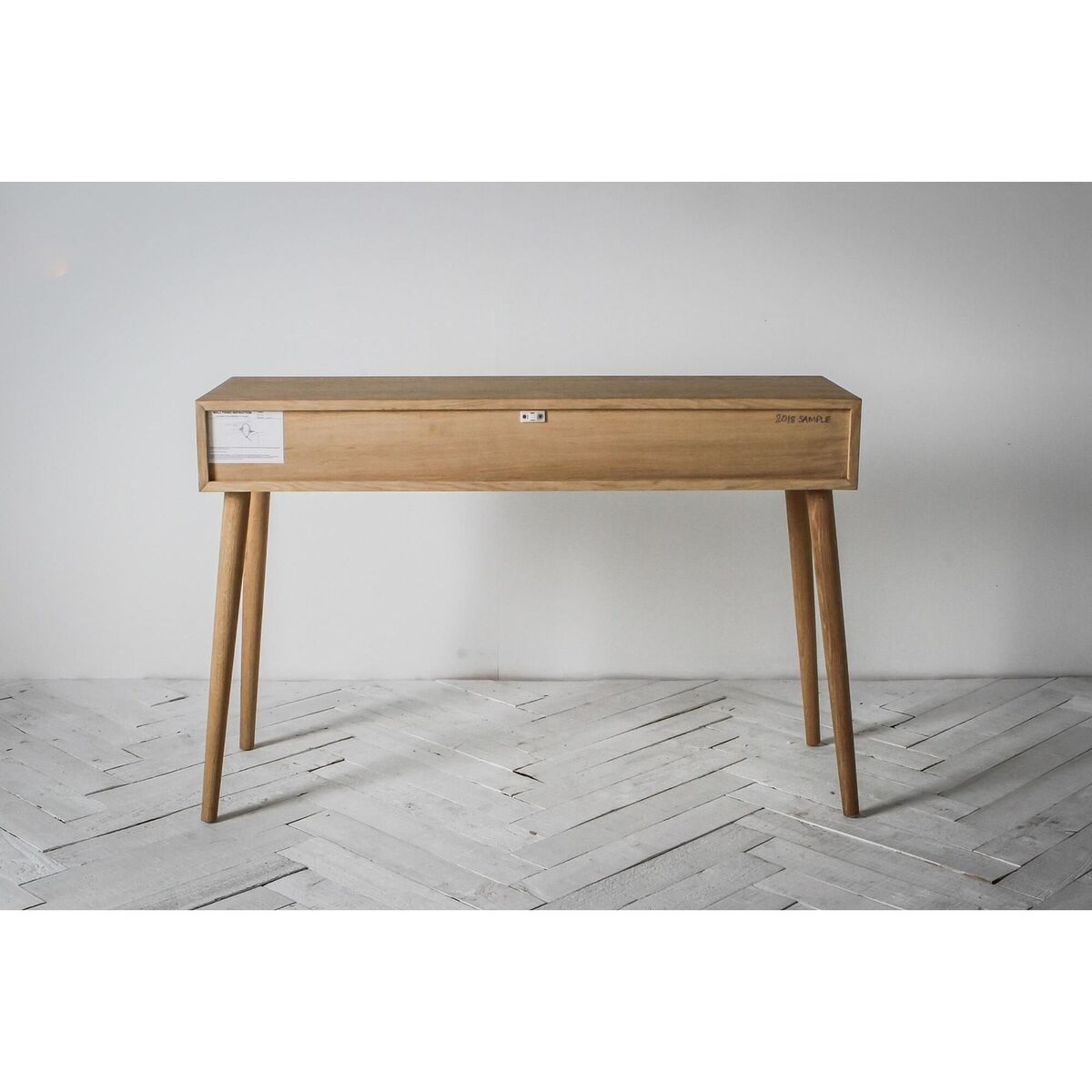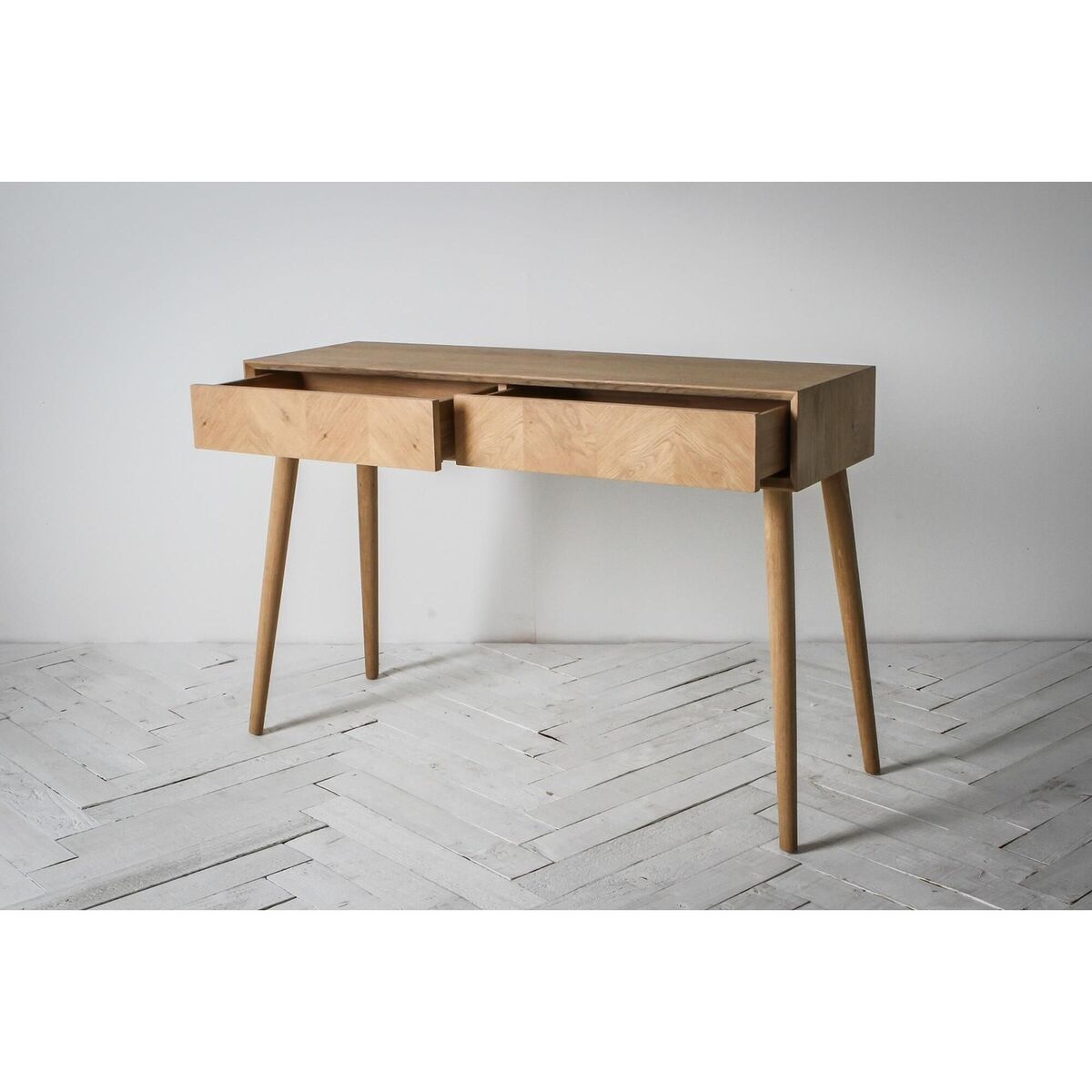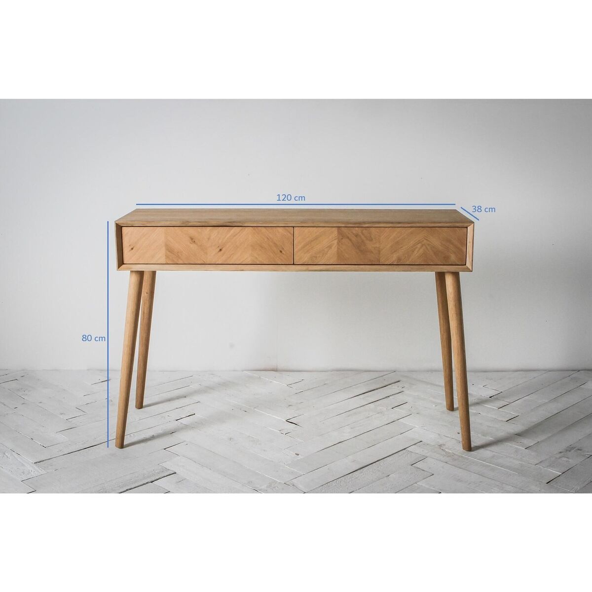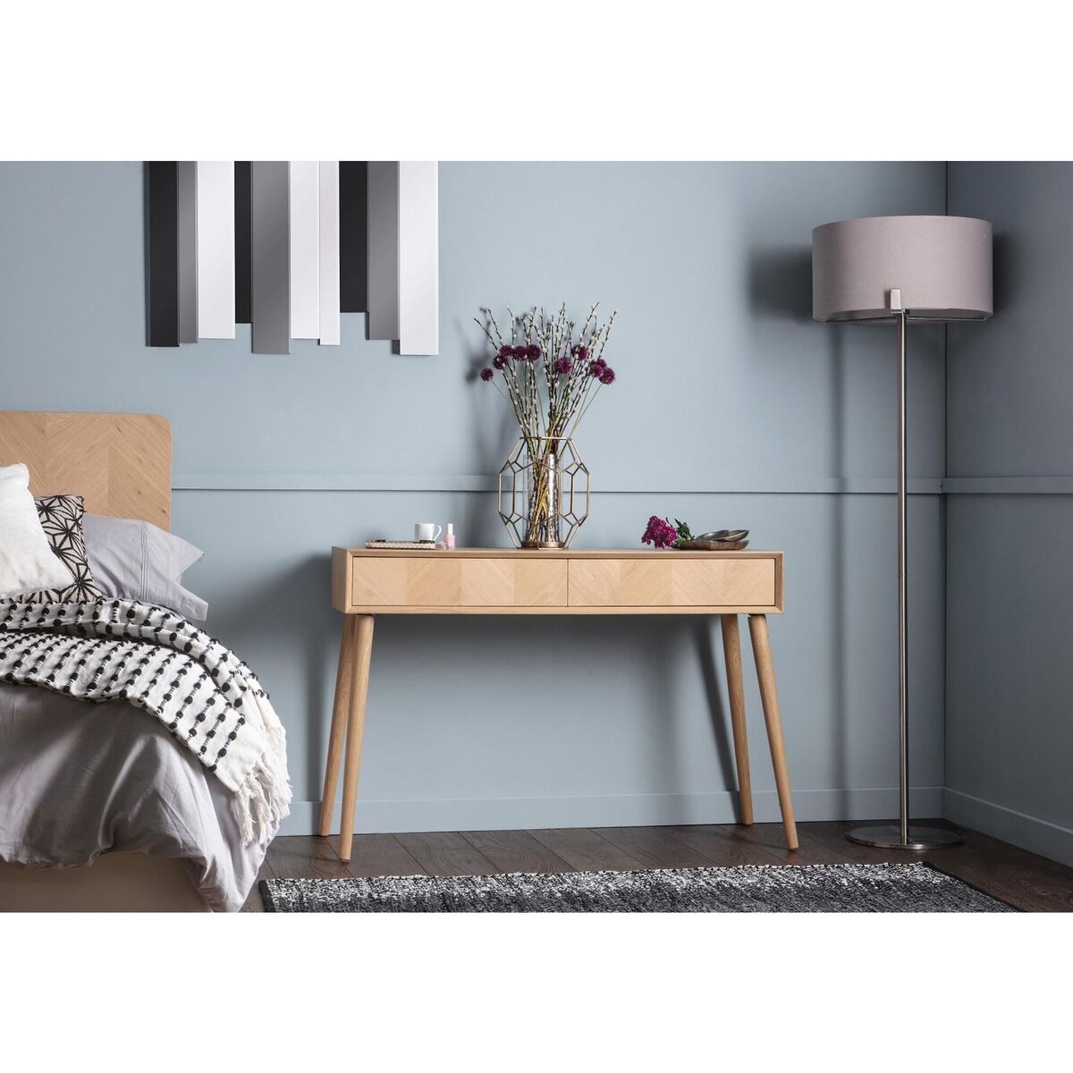 There's just something about natural oak that makes these designs utterly special and certainly, that is the case of the Finn console table. This sleek design gives a nod to mid-century design while celebrating modernity. Crafted from natural oak, the Finn range is a great display of natural beauty, showcasing the streaks, knots and grain of the wood which add texture to its spacious tabletop and slim, tapered legs. Two spacious drawers have been taken to the next level with oak veneer to achieve Chevron-inspired, patterned fronts which add a touch of functionality to this design, ideal for storing small items. Hallways, entryways and even bedrooms will set the perfect scenery for the Finn, a must-have design for the modern home. Discover: The Finn Range