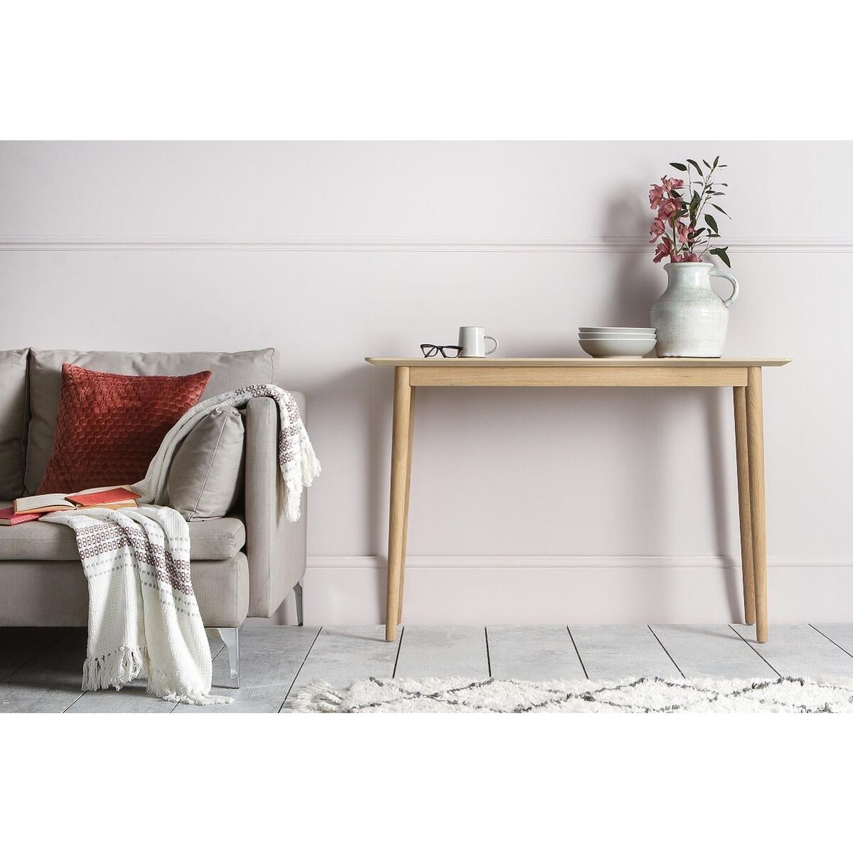 There's just something about natural oak that makes these designs utterly special and certainly, that is the case of the Finn console table. This sleek design gives a nod to mid-century design while celebrating modernity. Crafted from naturaloak, the Finn Range is a great display of natural beauty, showcasing the streaks, knots and grain of the wood which add texture to its spacious tabletop and slim, tapered legs. This has been taken to the next level with oak veneer to achieve the inlay chevron design across the top and facade for added visual appeal. Hallways, entryways and even bedrooms will set the perfect scenery for the Finn, a must-have design for the modern home.