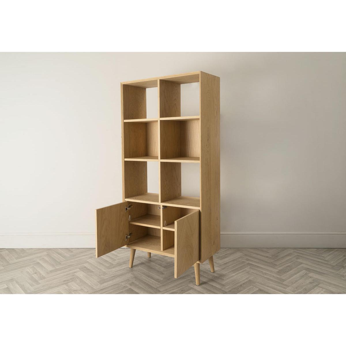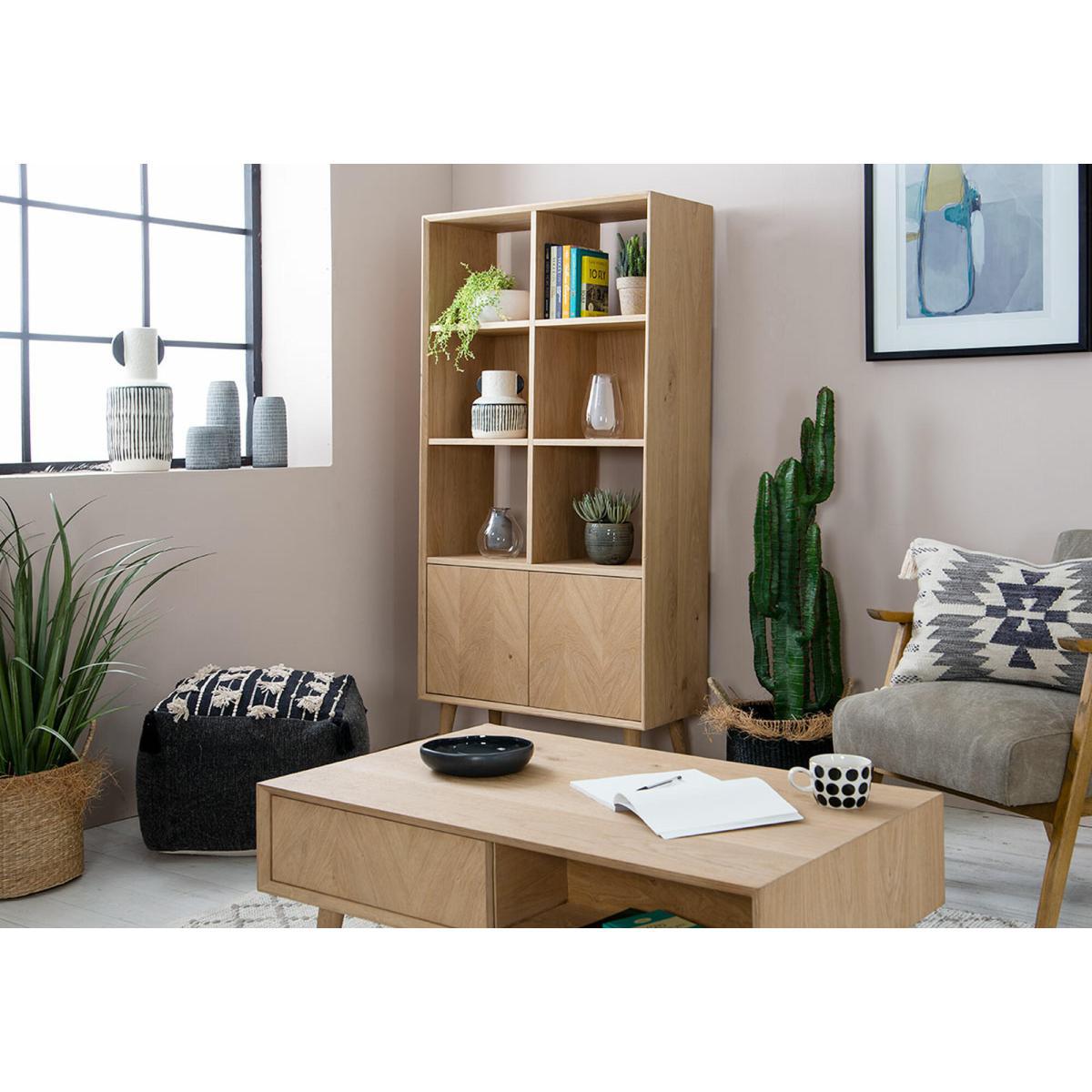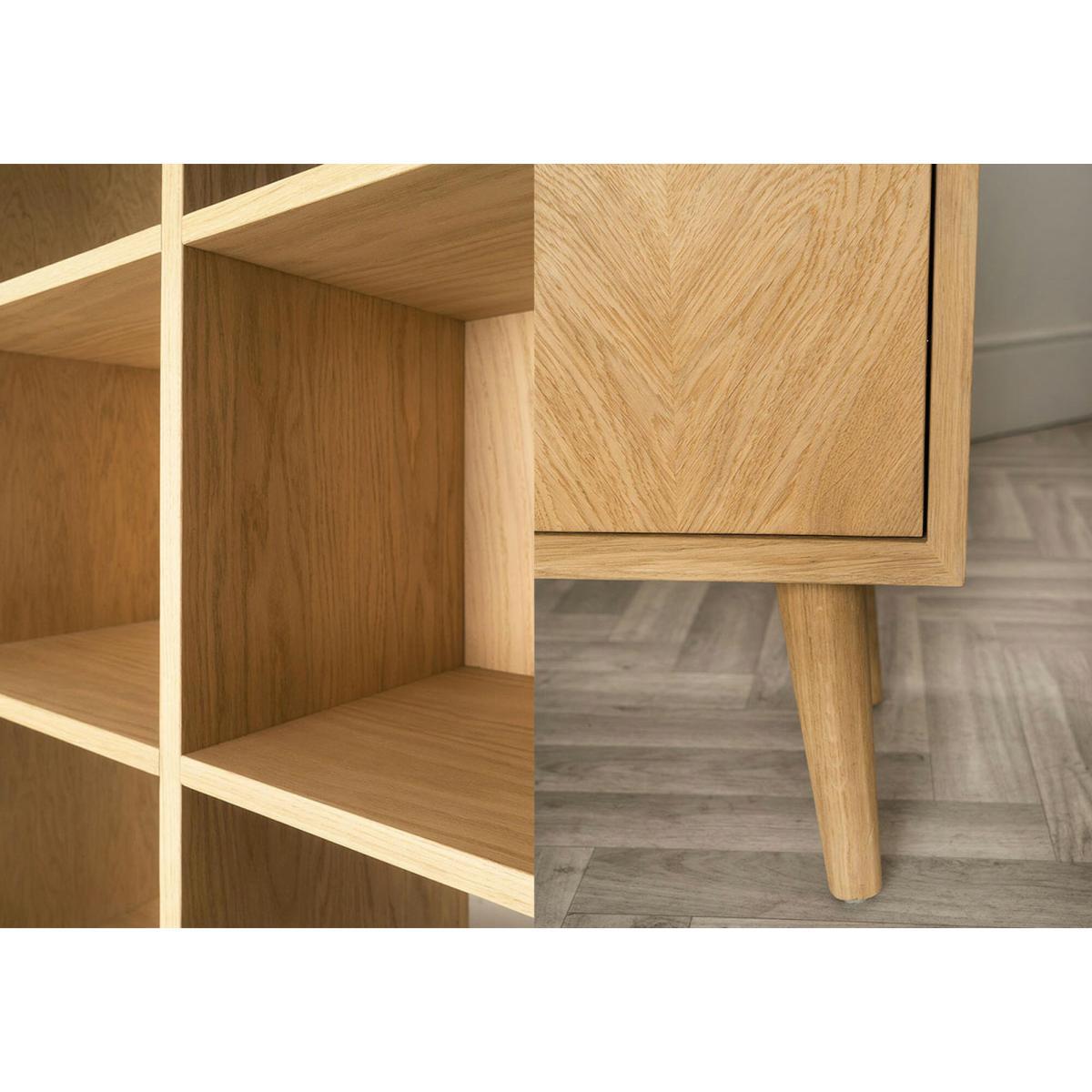 I’m a big fan of the Finn shelf thanks to its simple, mid-century lines and natural oak finish - it brings warmth without feeling bulky. The mix of open cubbies and a lower cupboard makes it ideal for living rooms, home offices or hallways where you need both display and hidden storage. Styling-wise, balance a few books and ceramics in some compartments, leave a couple empty for negative space, and introduce a small plant or two to soften the geometry. Use the cupboard below for less attractive essentials - cables, paperwork or board games - so the overall look stays neat and uncluttered.