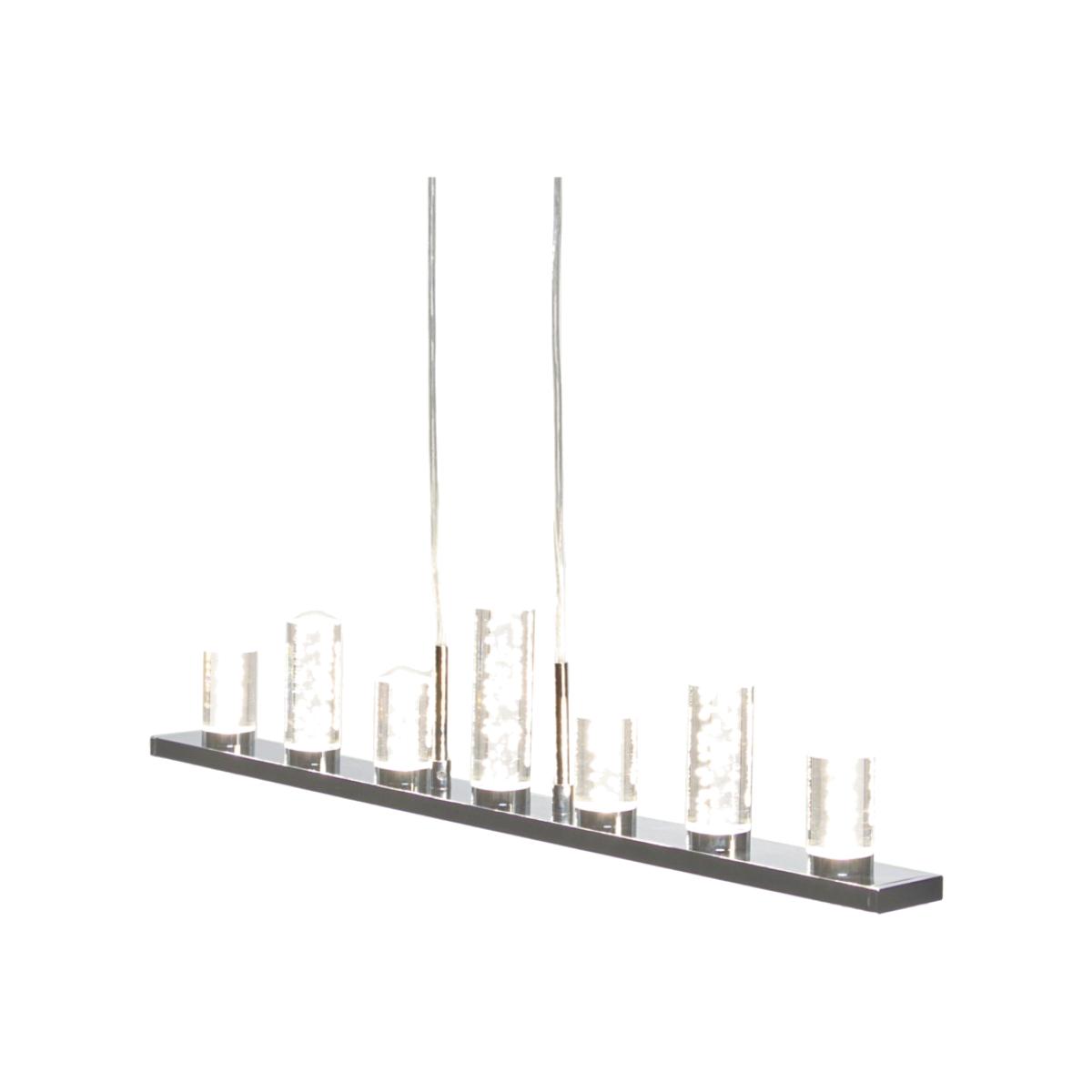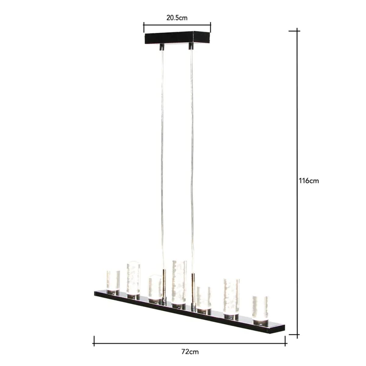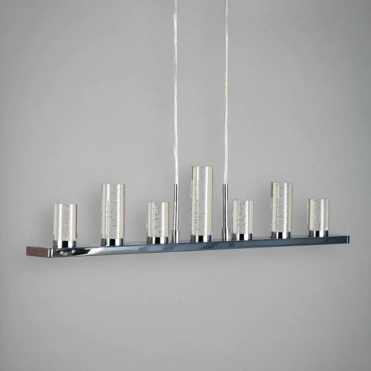 Get modern, stylish lighting for your home with the Finn LED Bubble Diner Ceiling Pendant. The chrome finish on this ceiling light makes it highly durable as well as giving the light a stunning shine. Featuring integral LED, you can be sure you are getting both eco-friendly and energy-efficient lighting at all times. The 7 bubble cylinders sit in a line across the pendant bar, that illuminate, providing you with a stunning warm glow of light through your space. While the stunning bubble design bring a modern touch to any home.