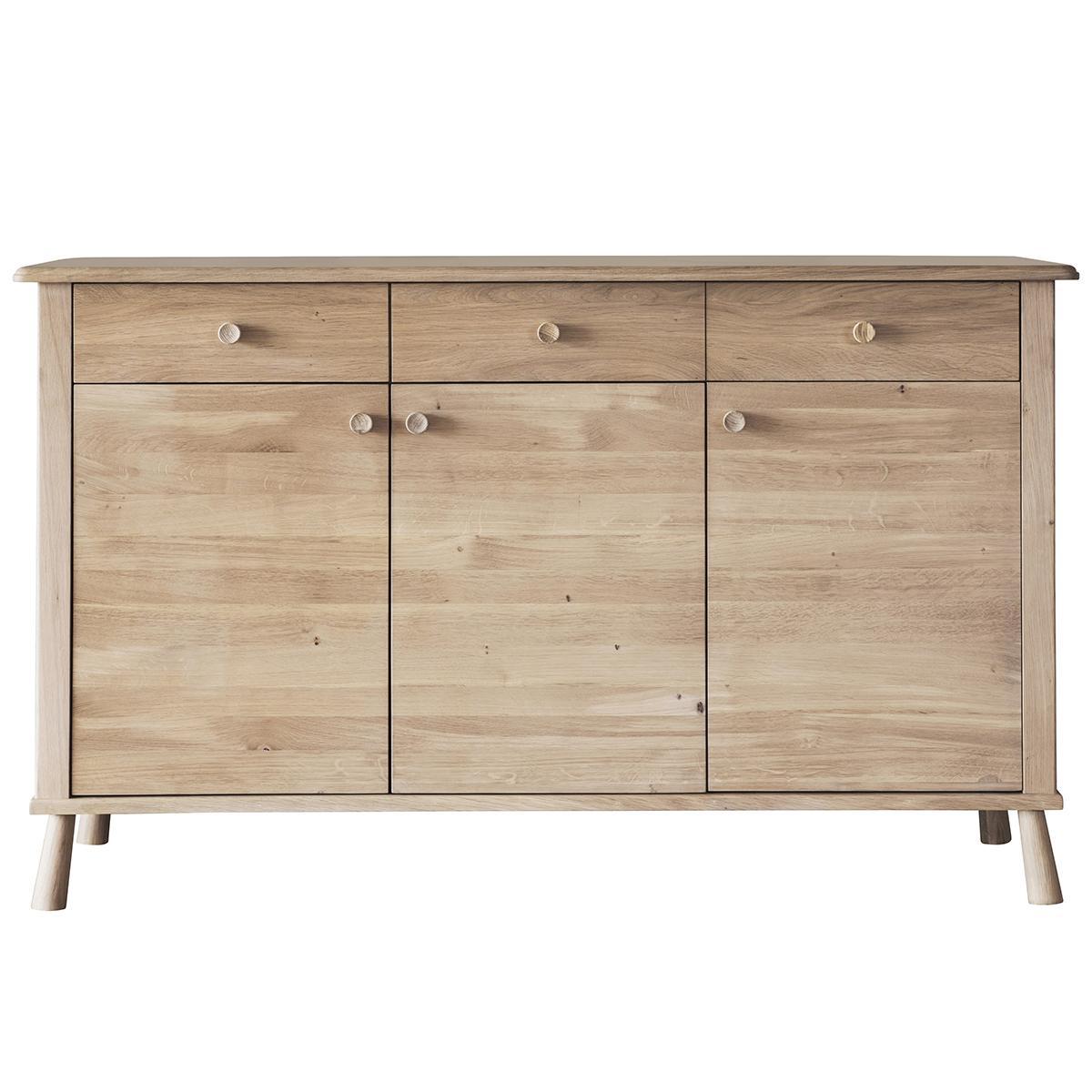 This Scandic style sideboard is made from a combination of the finest solid Oak and veneers for practicality and functionality and is the perfect storage solution for your living space. The sideboard has one double cupboard and one single cupboard as well as three handy drawers for extra storage. This sideboard has a beautiful natural light oak finish and stylish design.