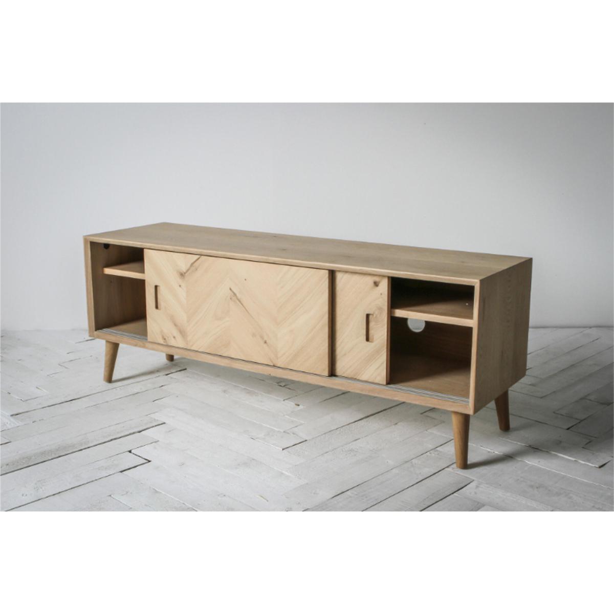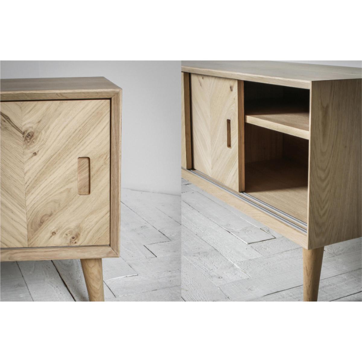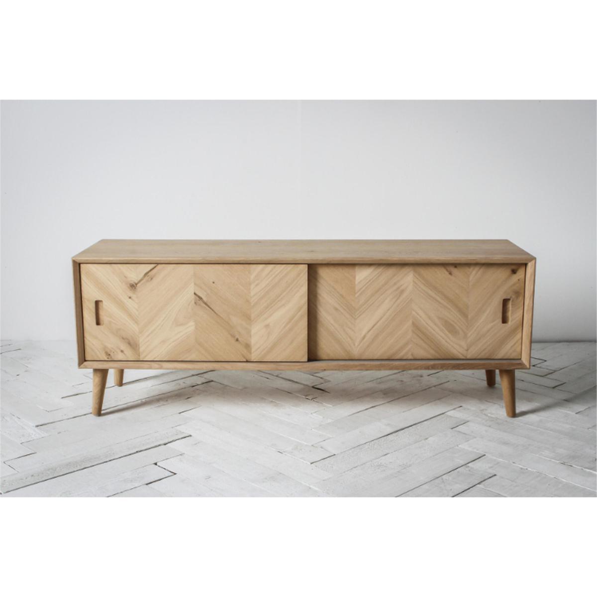 There is something about natural oak that makes designs special and certainly, that is the case of the Finn media unit. This beautiful design has everything we would want from a media unit: spacious storage space for your home entertainment essentials, an ample top surface and a stylish design that works well with any decor. As if that wasn't enough, the Finn is also a wonderful showcase of the beauty of the natural oak wood that was used to craft the piece. Its innate beauty is displayed throughout the main body, with Chevron-inspired door fronts and even in its short tapered legs, which give a nod to mid-century modern design. The slim Finn range is perfect for the busy, modern home and will delight those looking for a timeless centrepiece for their living rooms. Discover: The Finn Range