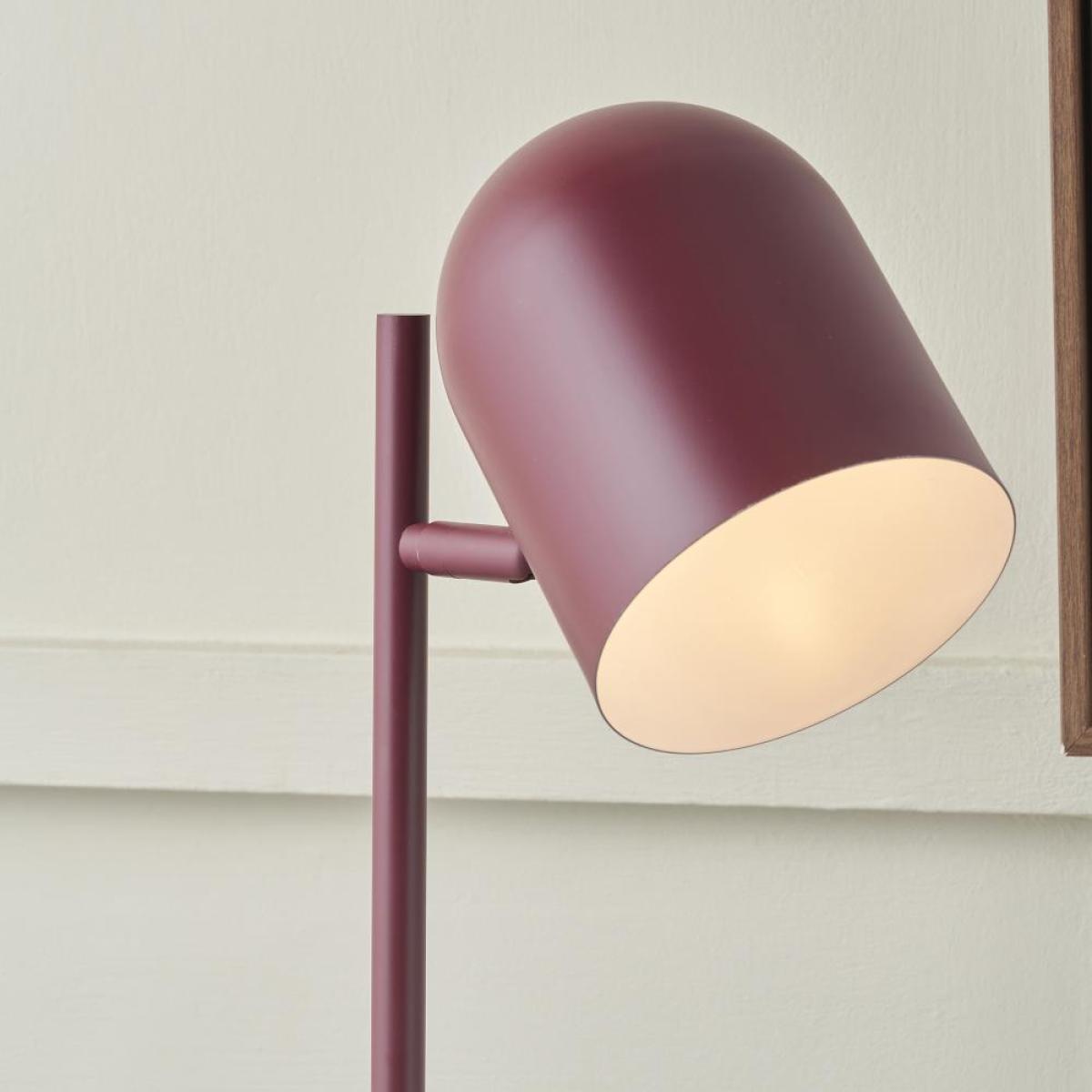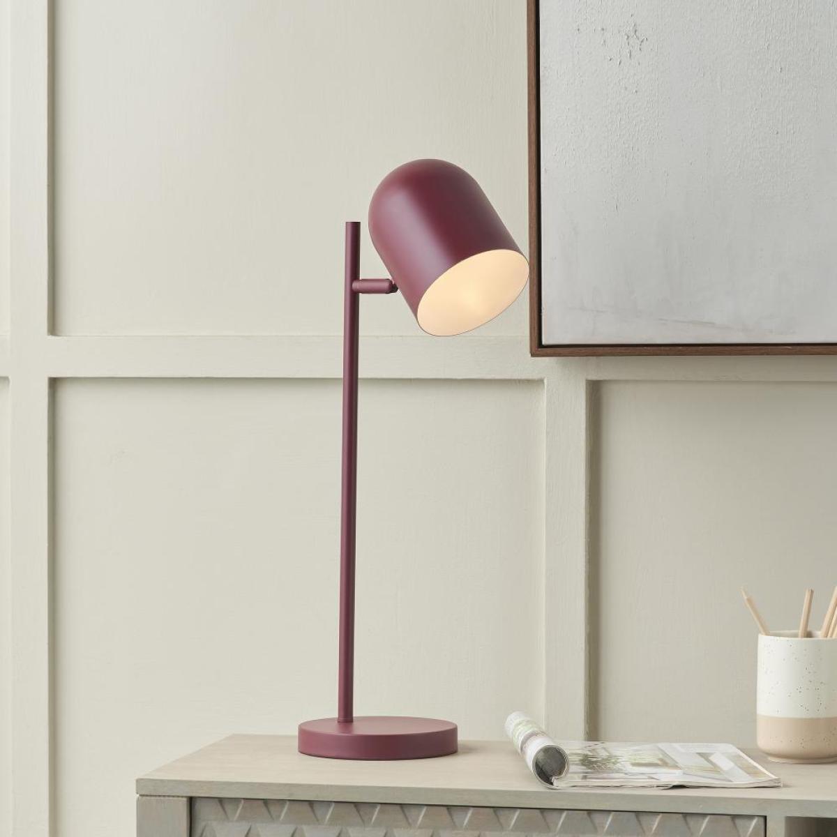 I love the Finn table lamp’s sleek, modern design and rich berry hue, which make it a stylish statement piece in both contemporary and minimalist interiors. It works particularly well on sideboards, bedside tables, or desks, adding a pop of colour without overwhelming the space. For practical styling, consider pairing it with neutral or muted-toned accessories to highlight its vibrancy, or use it alongside other warm metals and textured surfaces to create a layered look. Its compact size makes it versatile enough to bring warmth and character to small or large rooms alike, making it a functional aesthetic addition in a variety of settings.