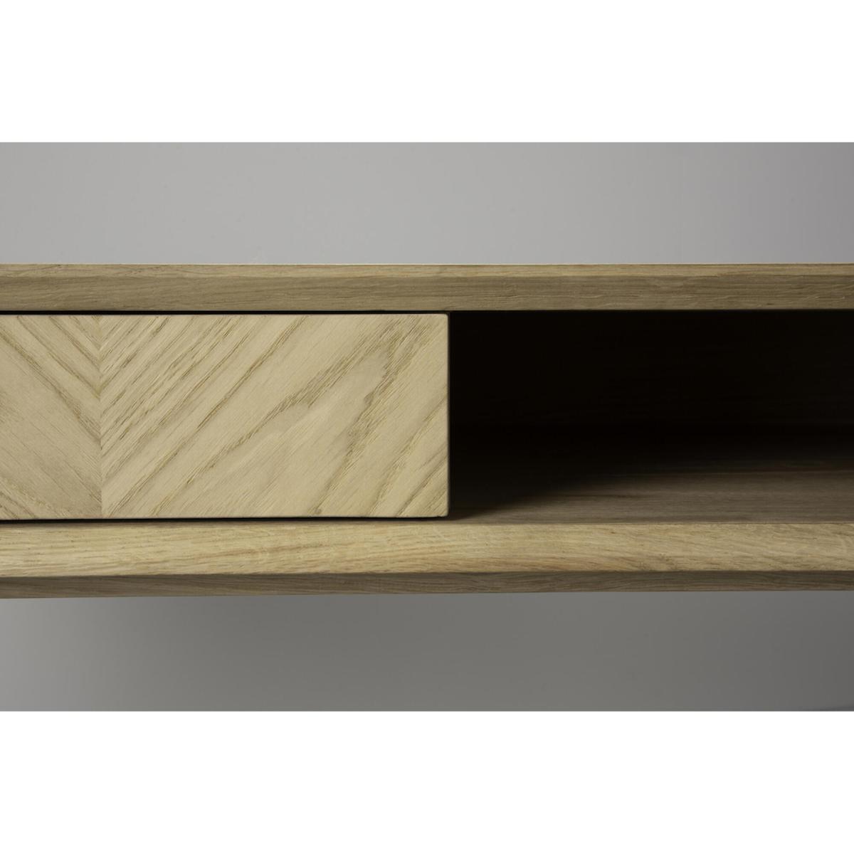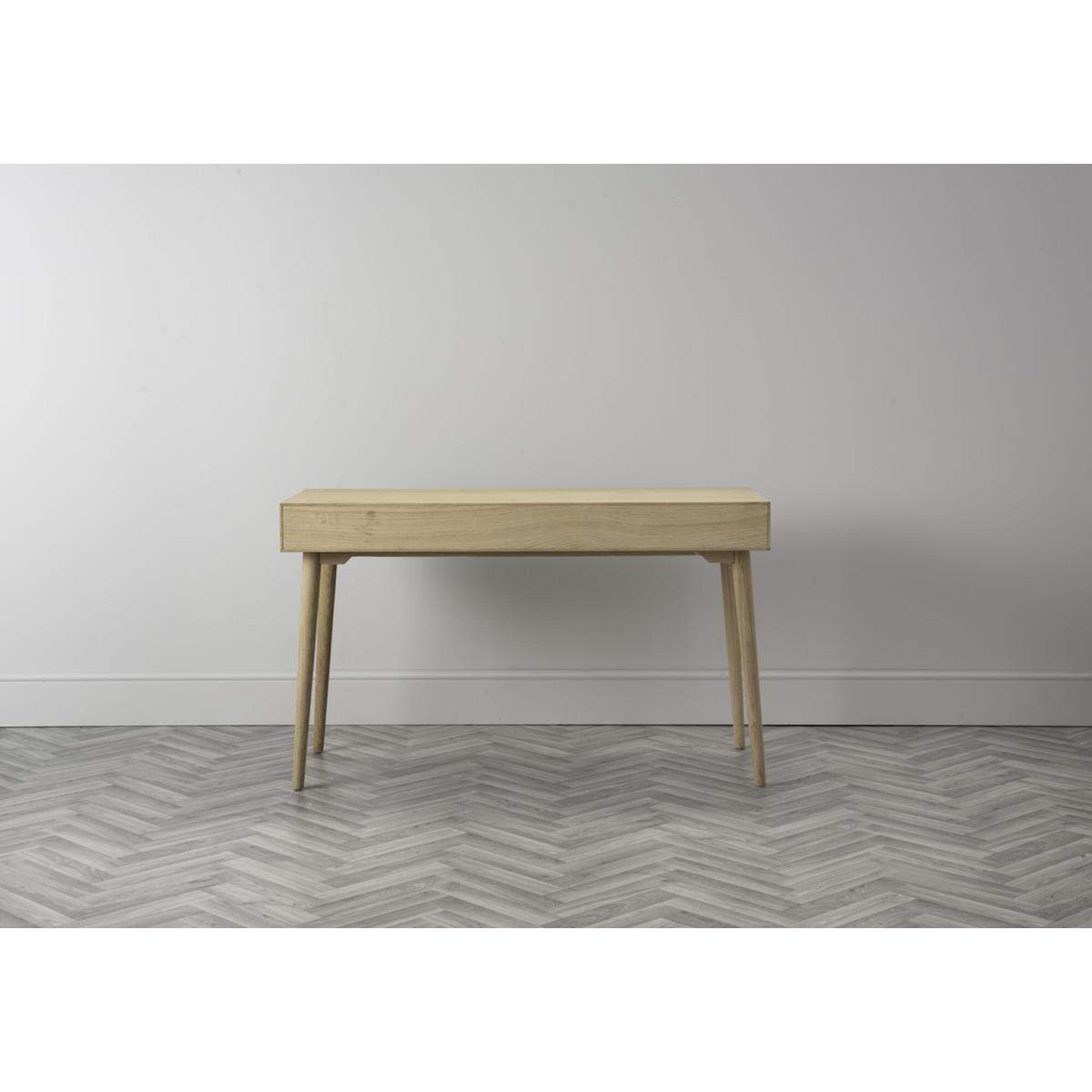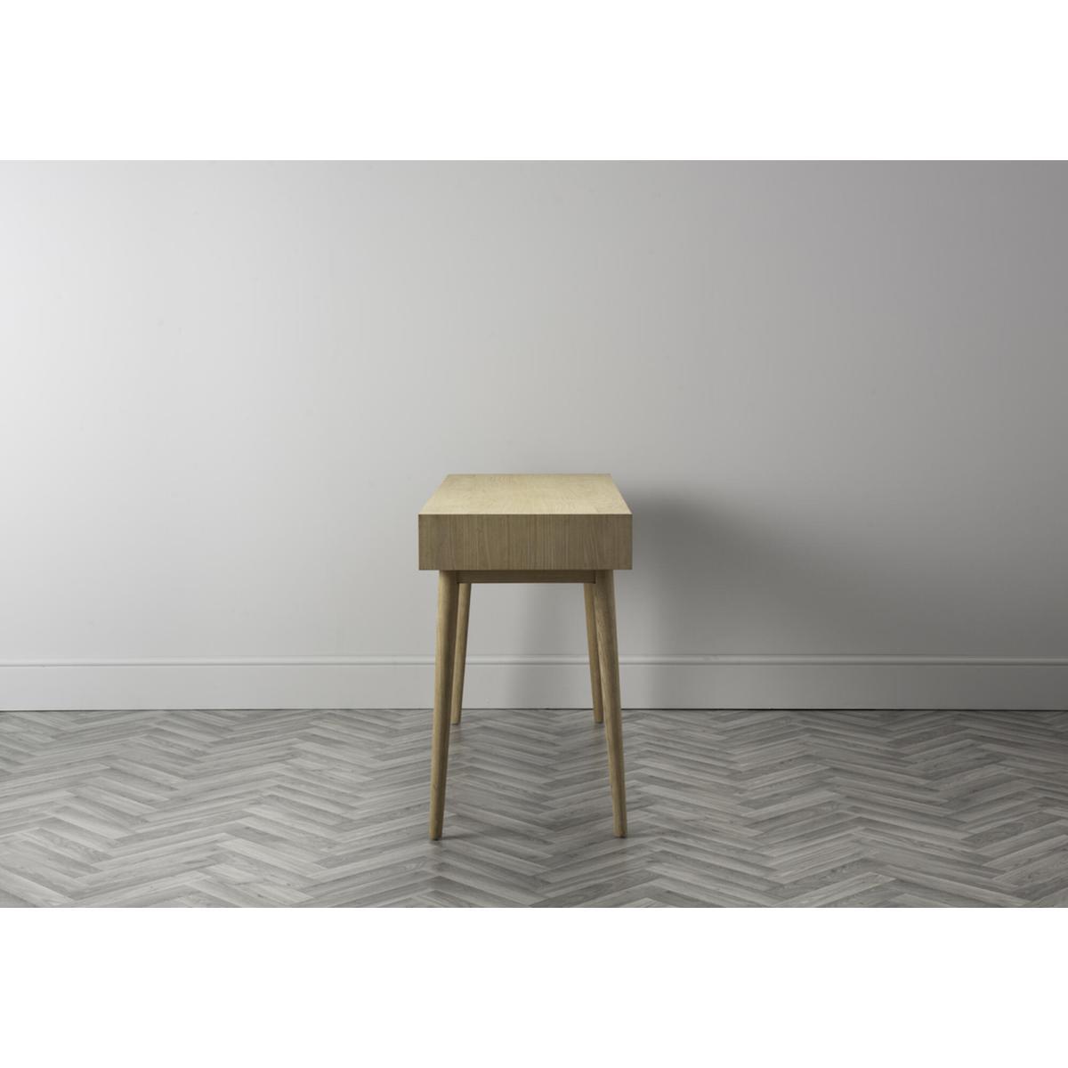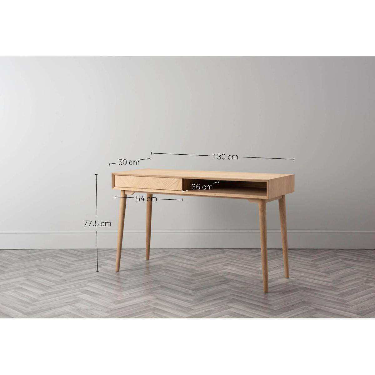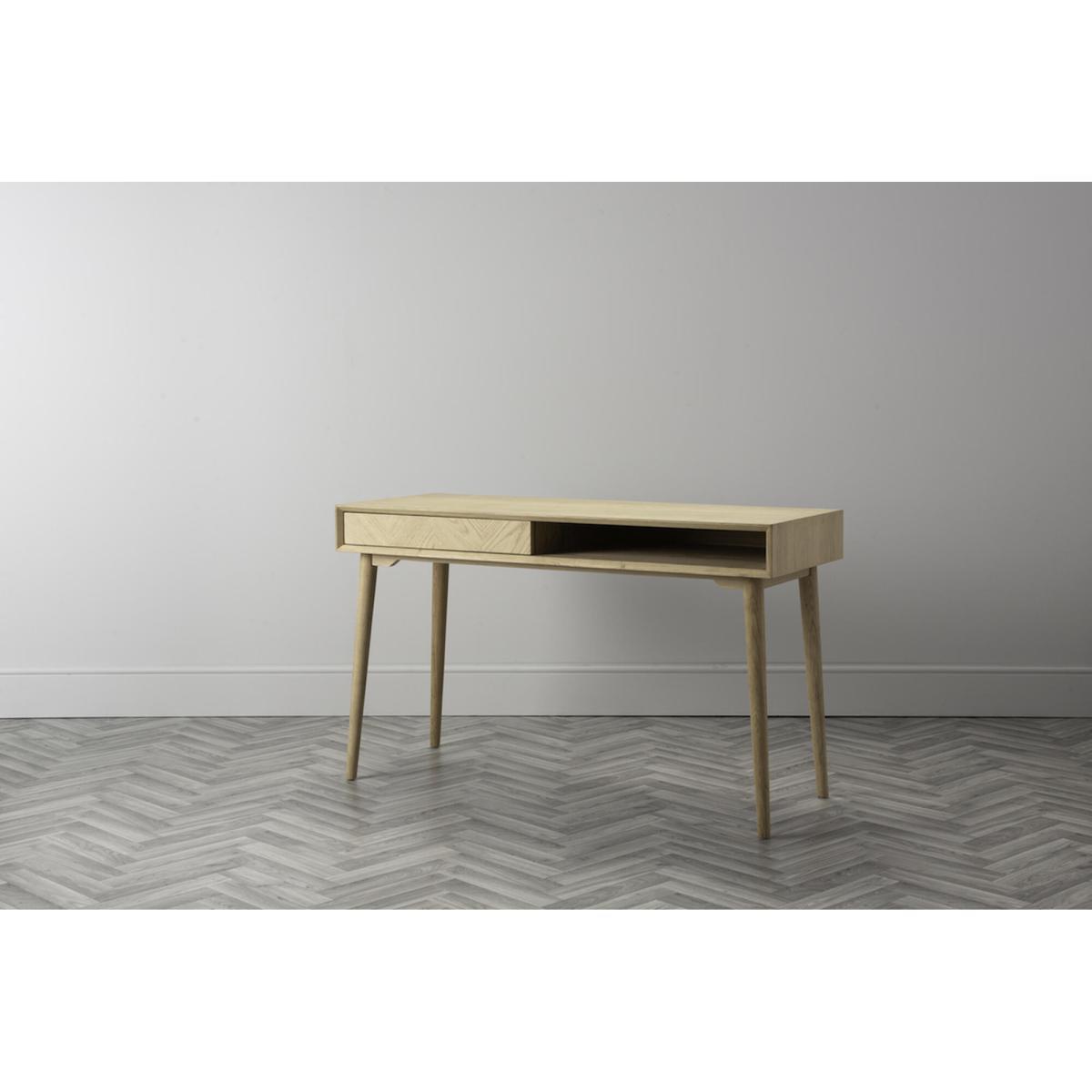 There's just something about natural oak that makes designs utterly special and certainly, that is the case of the Finn One Drawer Desk. This sleek design gives a nod to mid-century design while celebrating modernity. Crafted from natural oak, the Finn Range is a great display of natural beauty, showcasing the streaks, knots and grain of the wood which add texture to its spacious tabletop and slim, tapered legs. This has been taken to the next level with oak veneer to achieve the inlay chevron design across the top and facade for added visual appeal. Add one of our fabulous swivel chairs, and your home office is ready for the work day ahead.