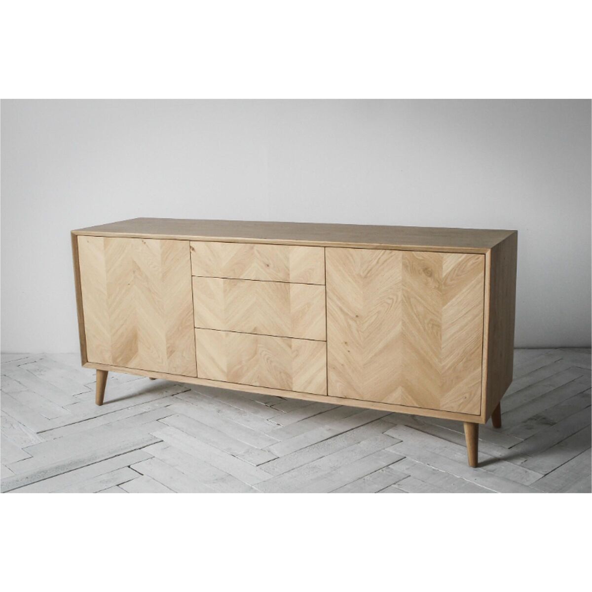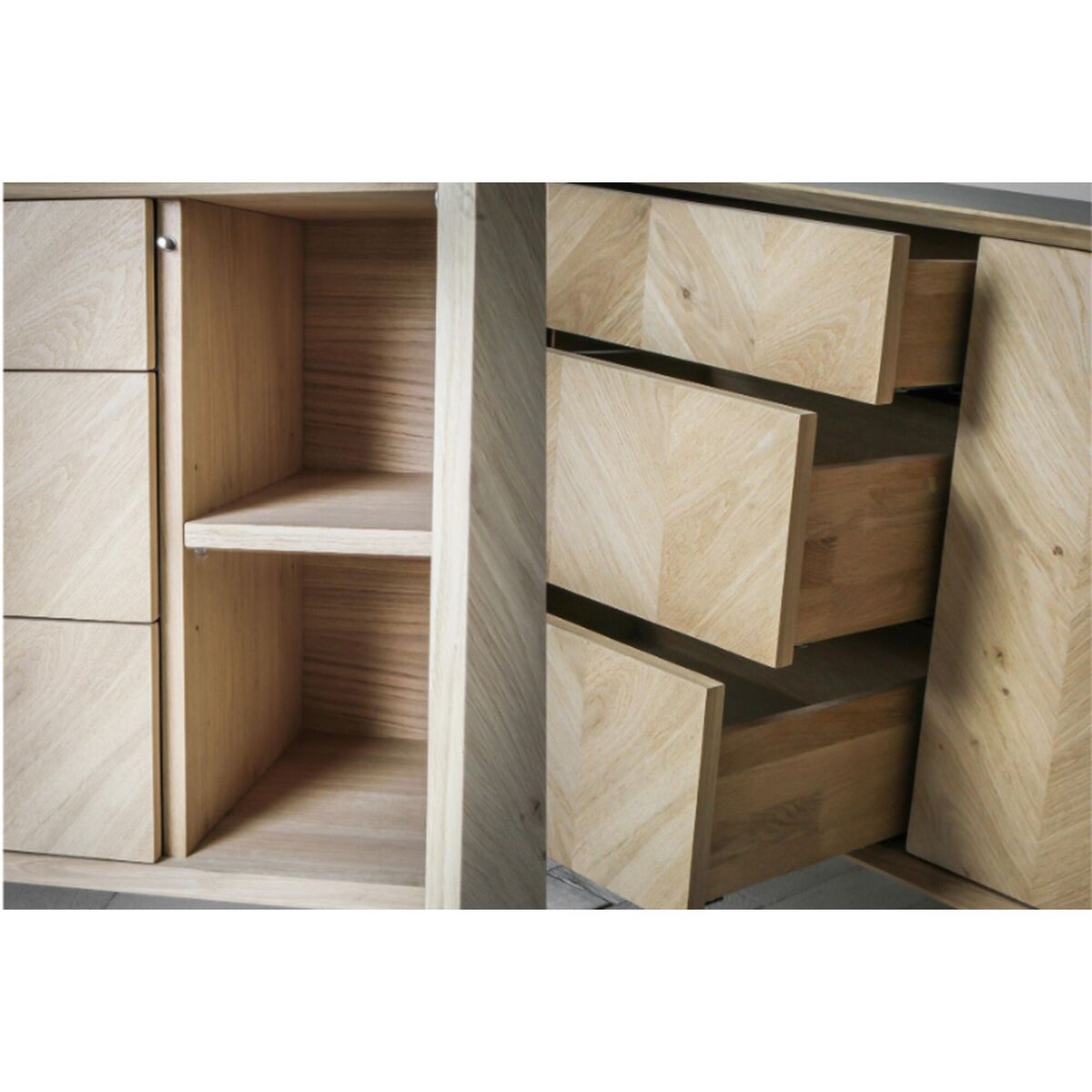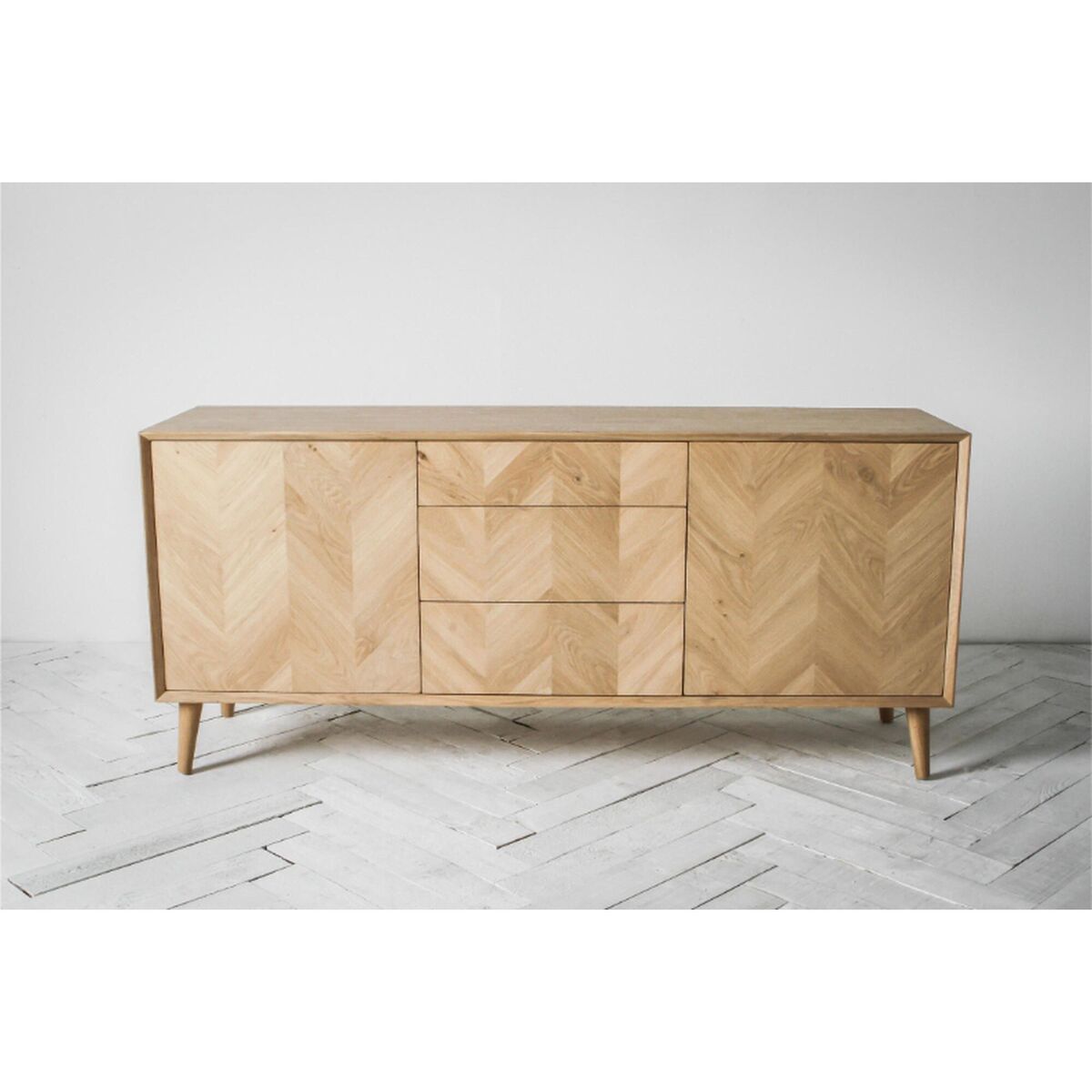 There's just something about natural oak that makes designs utterly special and certainly, that is the case of the Finn sideboard. Nodding to mid-century style, the Finn Range celebrates modernity and creates an inspiring scene, acting as an elegant display of the innate beauty of wood. The streaks, knots and grain of the natural oak material dance throughout this piece, particularly with its stunning oak veneer that achieves a chevron-inspired top and facade. Three drawers and two cupboard areas add space to store your home essentials. We can't think of a better design for modern interiors as the Finn ticks all the right boxes: naturally charming, beautifully modern and crafted to the higher specs of quality and design. Discover: The Finn Range