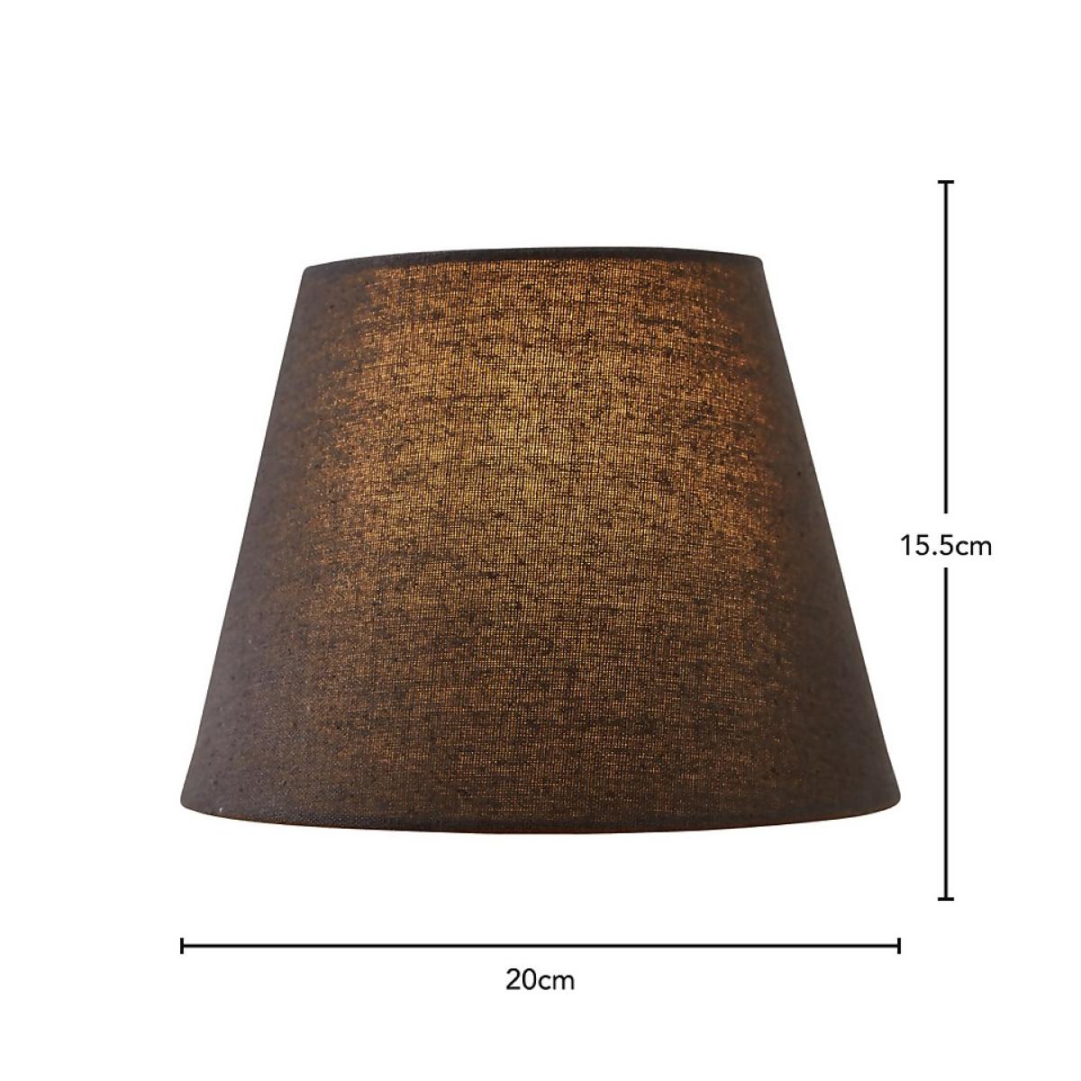 I love this charcoal tapered shade for its understated elegance and versatility. Its neutral tone makes it a great choice for a range of interior styles, from modern minimalist to cosy traditional spaces. It works particularly well in living rooms and bedrooms where you want to introduce a touch of sophistication without overpowering the decor. Practical styling tips include pairing it with warm-toned bases or contrasting textures, such as brass or matte black fixtures, to create visual interest. Its compact 20cm size makes it ideal for side tables or smaller lamp bases, offering a refined finishing touch to any arrangement.