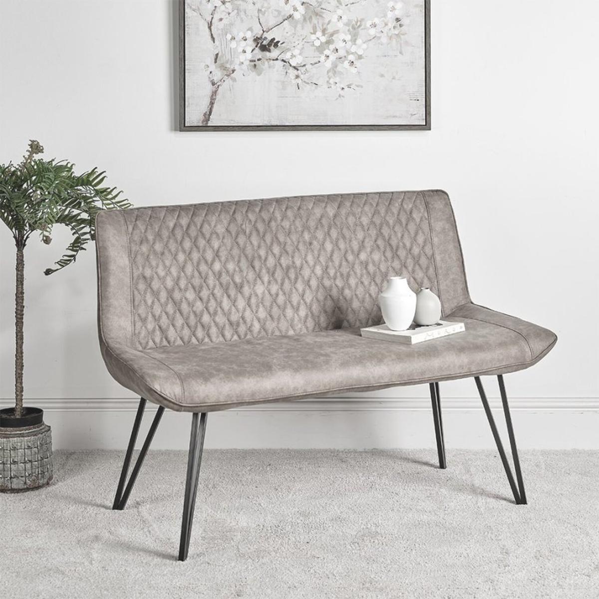 The Finnick Dining Bench is a great new addition to our Finnick Range. With a supportive back and deep seat, the diamond-stitched soft leather effect upholstery looks and feels fantastic. Also available in the same great versatile colour options. Benches are a great alternative to chairs or combined with dining chairs for a more communal dining time.