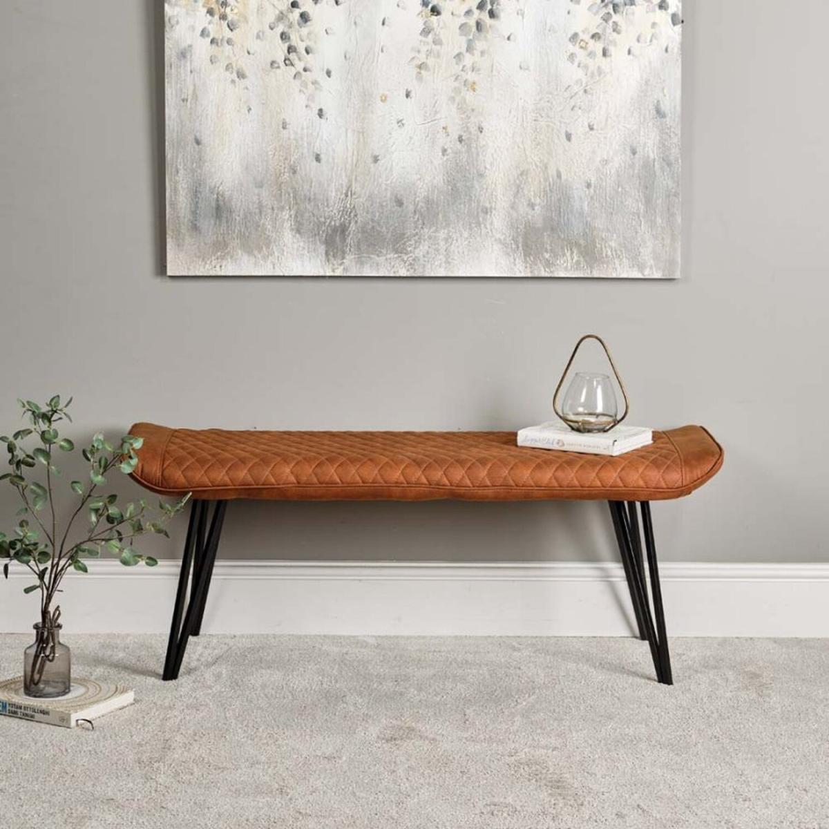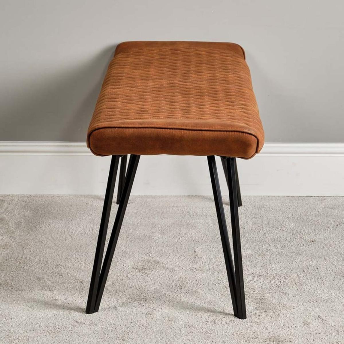 I love this piece for its clean lines and versatile appeal, making it a practical addition to various interiors. The Finnick in tan works particularly well in minimalist, Scandinavian, or industrial spaces where it can add warmth and texture without overpowering the aesthetic. It’s perfect as extra seating in a hallway, at the foot of a bed, or even as a statement piece in a living room. Practical styling tips include pairing it with a cosy cushion or a stack of books for a lived-in look, or accentuating its warm tone with soft textiles and natural materials. Its tapered legs bring a modern touch, making it suitable for both contemporary and retro-inspired interiors.