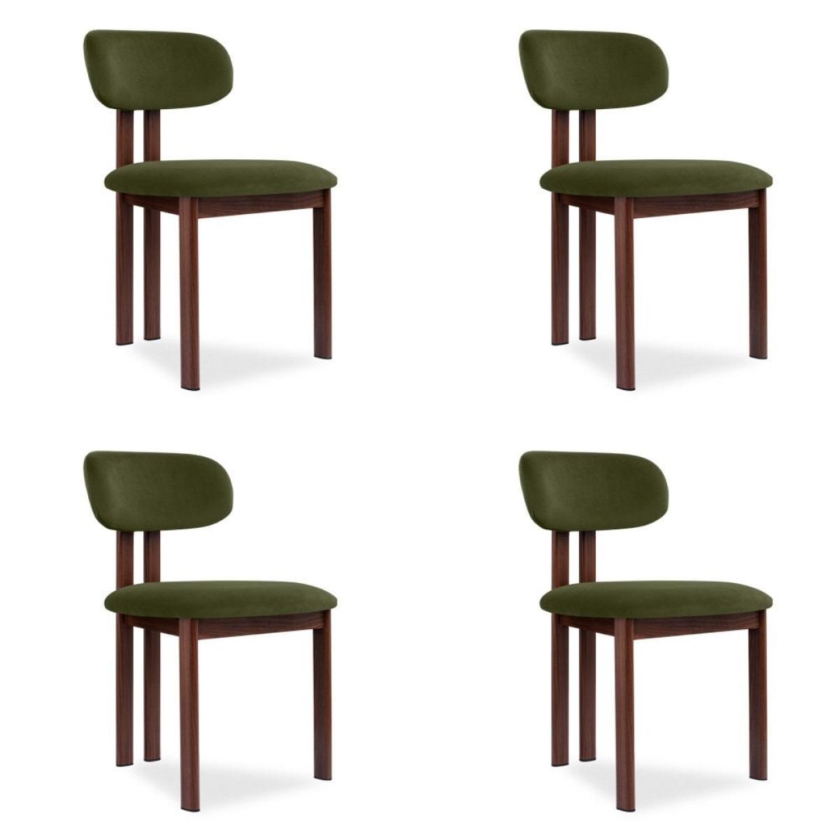 Finnley & Arbor 4 Chairs Dining Set, Walnut & Olive Green Sustainable Velvet