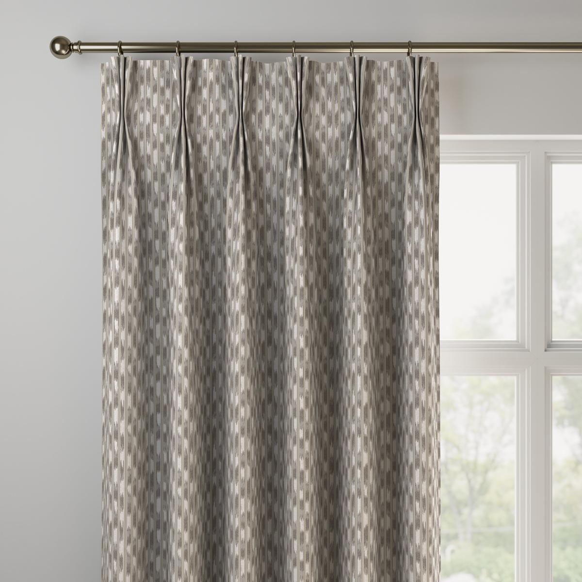 * Made with sustainable materials - 100% recycled polyester* Selection of header types available* Choice of linings options available* Made to your measurements!* Sold as a pair Introduce a touch of classic style to your interior with this jacquard fabric, featuring a timeless striped design that brings a sense of sophistication to any space. The bold colour palette adds depth and richness, creating a captivating visual impact.**Choosing your lining:**Blackout provides minimal light disturbance in your home making it perfect for bedrooms. Thermal helps to keep the warmth in and the cool air out meaning it’s great for family rooms or lounges. Our Standard Lining is perfect if you like the glow of natural light whilst your curtains are closed whilst still maintaining your privacy. Please note: you measure for pinch pleat curtains in the same way as pencil pleat curtains. Please note: If your measured width is over 124cm your curtains will come with a fabric join to provide the full width required.