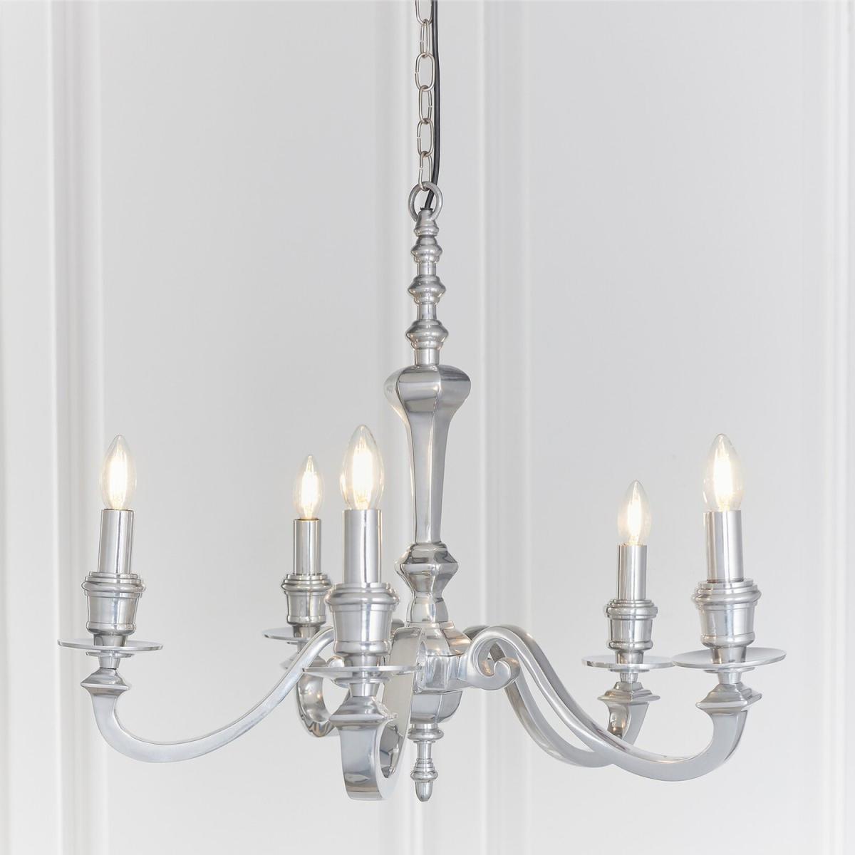 Finsbury 5 Light Multi Arm Pendant Polished Cast Aluminium, E14 - Polished Cast Aluminium