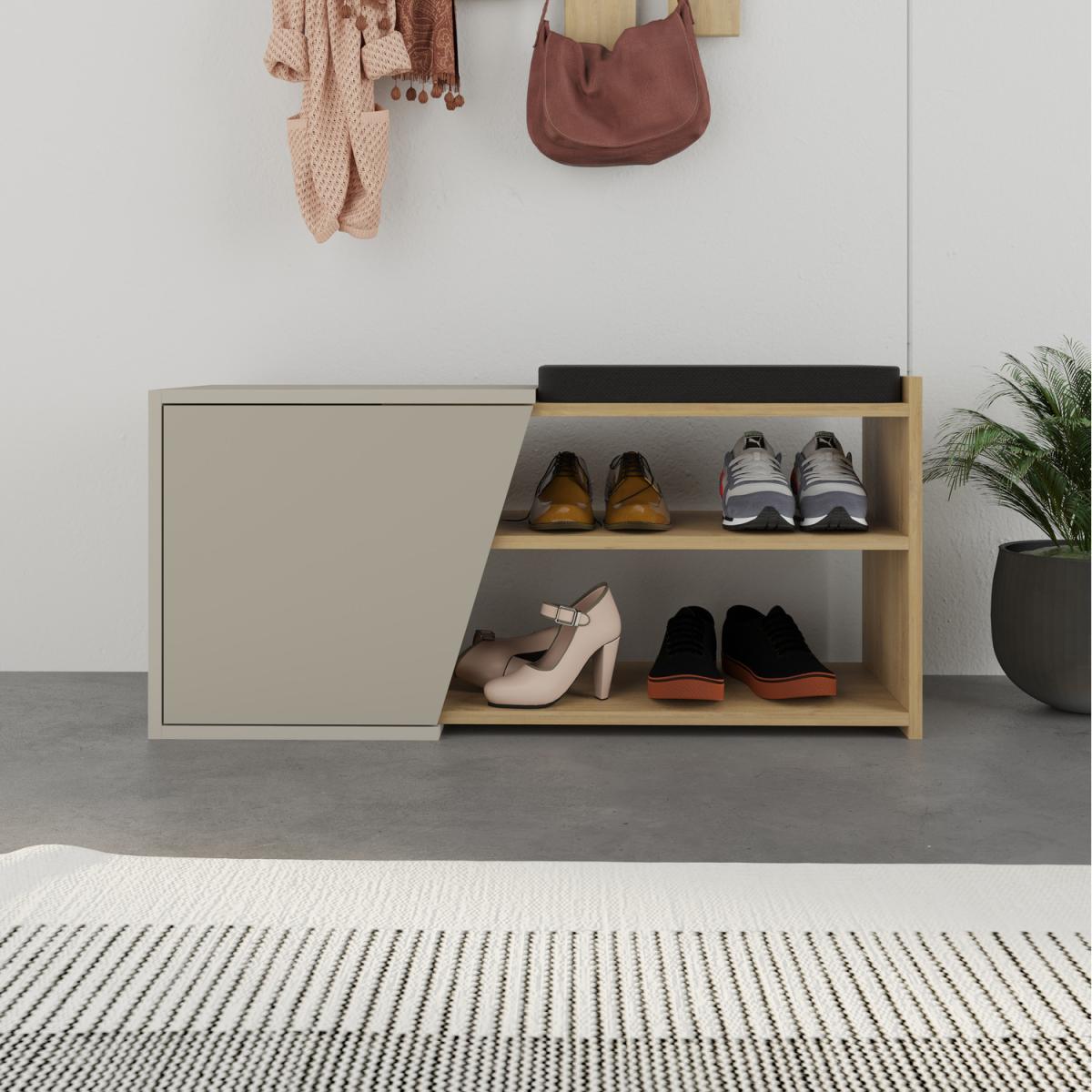 Fiona Modern Shoe Bench - Sandstone - Oak
