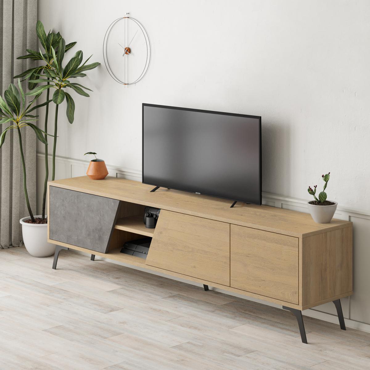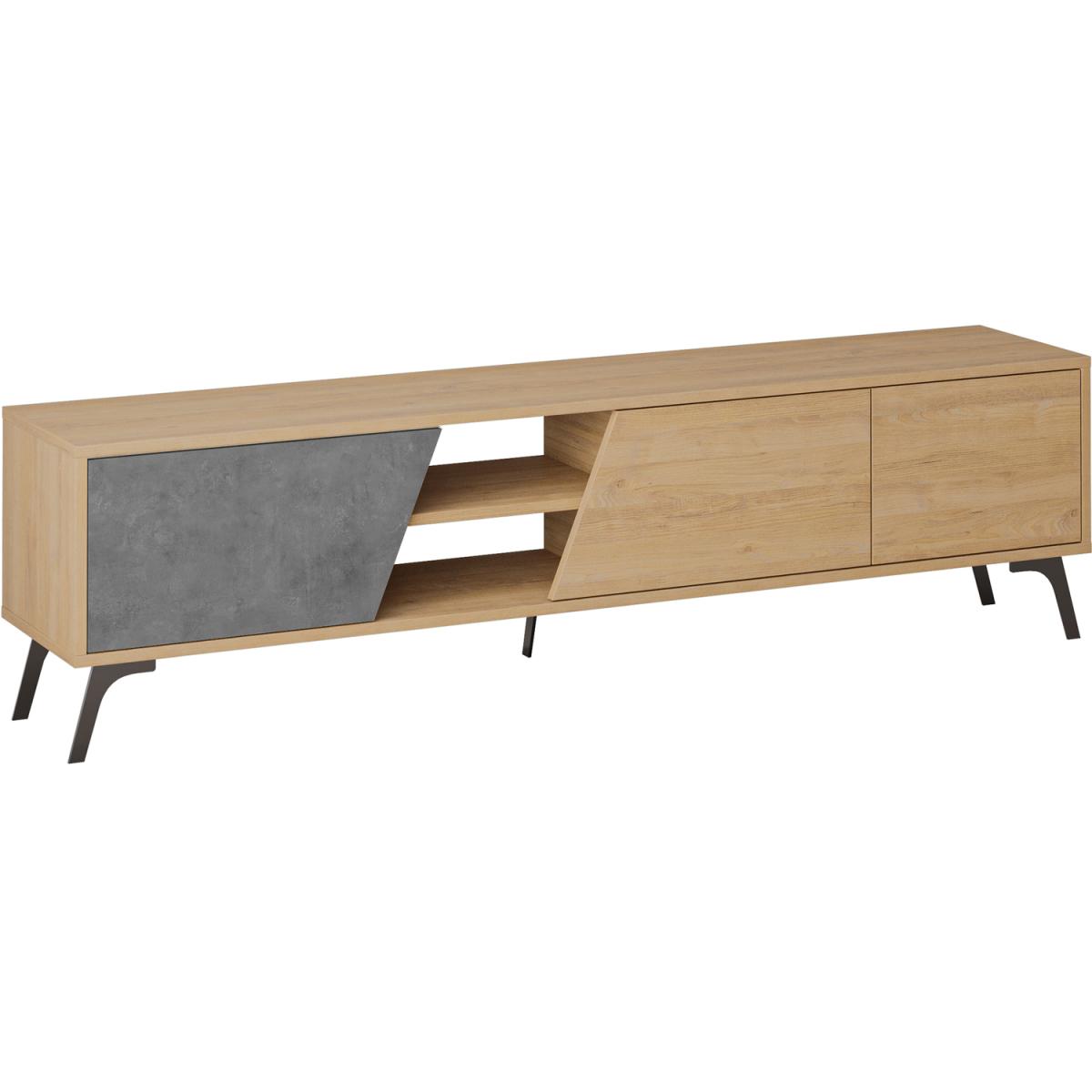 Fiona Modern TV Stand Multimedia Centre TV Unit With Storage - Oak - Retro Grey