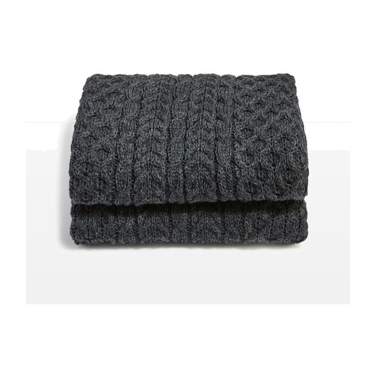 Woven in Ireland, this classic Aran throw is perfect for cosyingup on the sofa. A weighty knit in deep charcoal wool, thistimeless, versatile piece will add warmth and character to anyroom. Knitted woollen throw in cream. Chunky Aran cable knit pattern. 100% pure new wool. Made in Ireland. Perfect for a sofa.