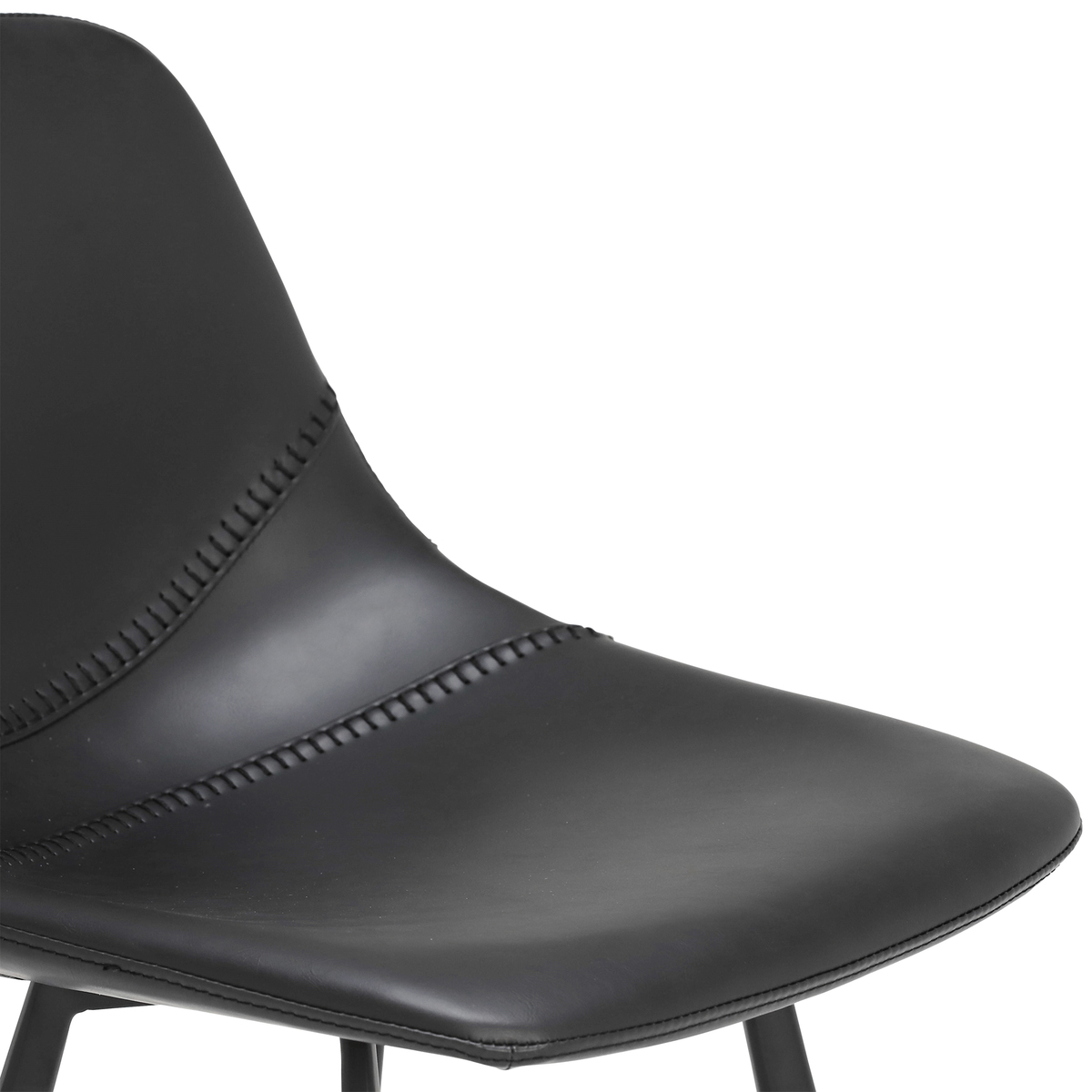 Featuring a black faux leather seat atop slim, black metal legs, the Fiori bar stool in Tan is a sleek and stylish addition to any kitchen or living area. A handy footrest lets you perch with ease, whether it’s a quick catchup over dinner or an evening of drinks with friends. Filled with foam and moulded to hug your body, the comfortable seat is detailed with exposed stitching for an urban twist. Also available in brown, this bar stool blends seamlessly into a host of interior settings.