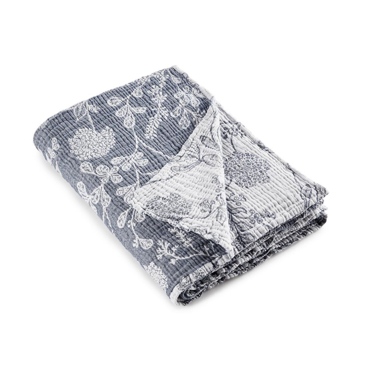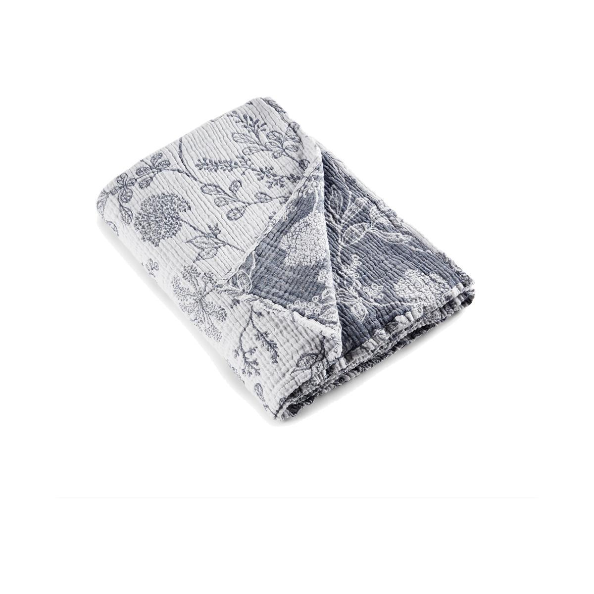 The Fiori cotton muslin throw is patterned with a flower print with Japanese influences for an elegant and refined look. Reversible. Made in Portugal.