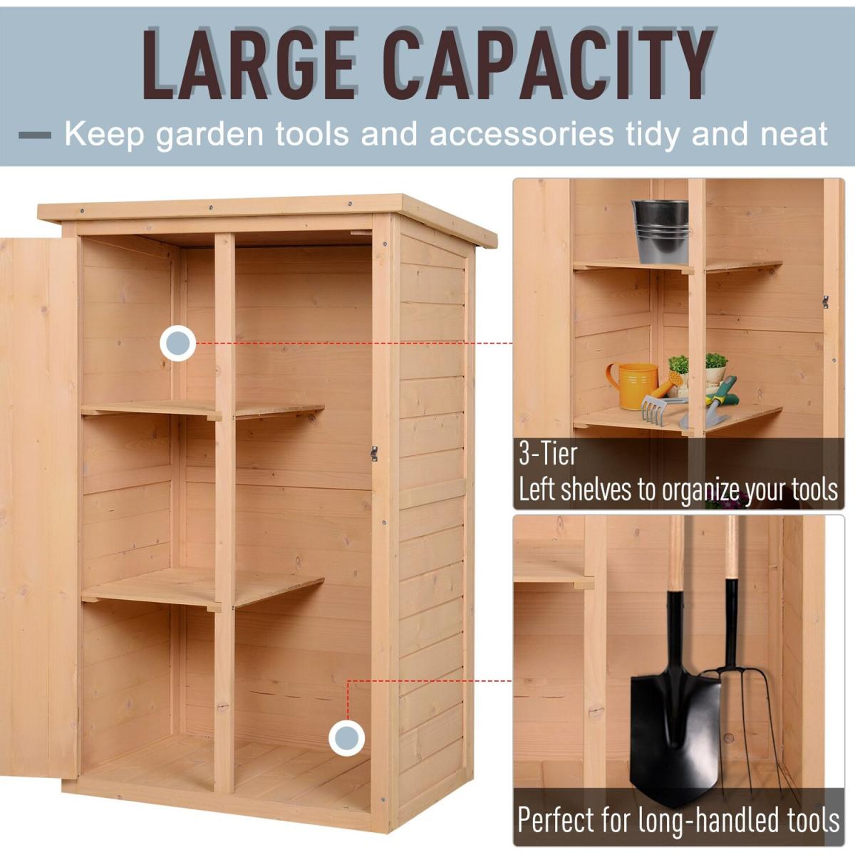 Ensure you have somewhere to keep your garden equipment, even when space is limited with this storage shed from Outsunny. Using fir wood for the outdoor shed body, with a waterproof paint finish for protection against the elements, the tool cabinet's compact 115 x 75cm design fits into smaller spaces easily. Inside there are two shelves for smaller items, whilst the open right side is perfect for larger equipment. It's finished with an asphalt-covered sloped roof to protect the inside. A fantastic way to get your garden tidy and organised.