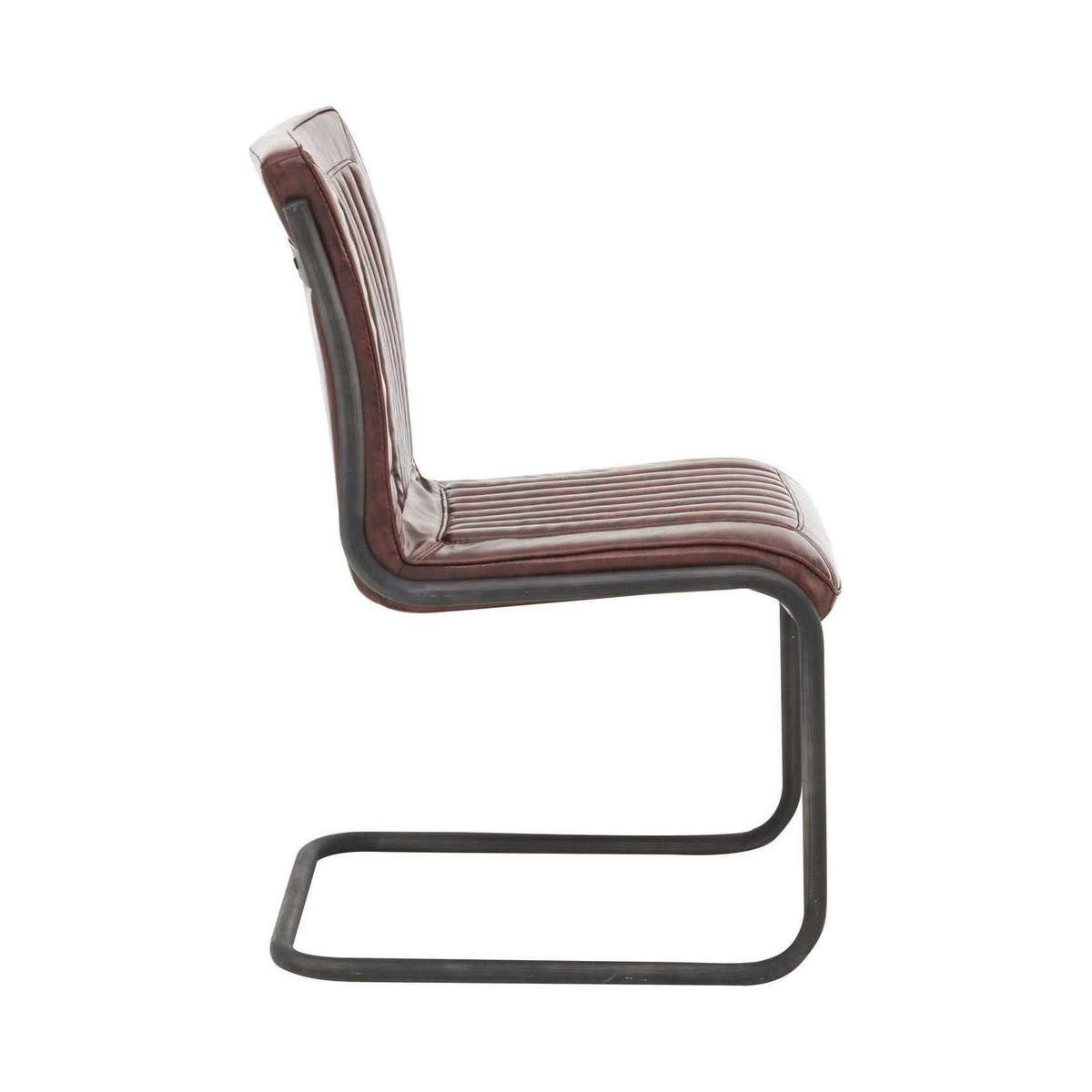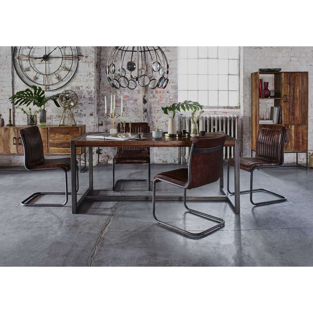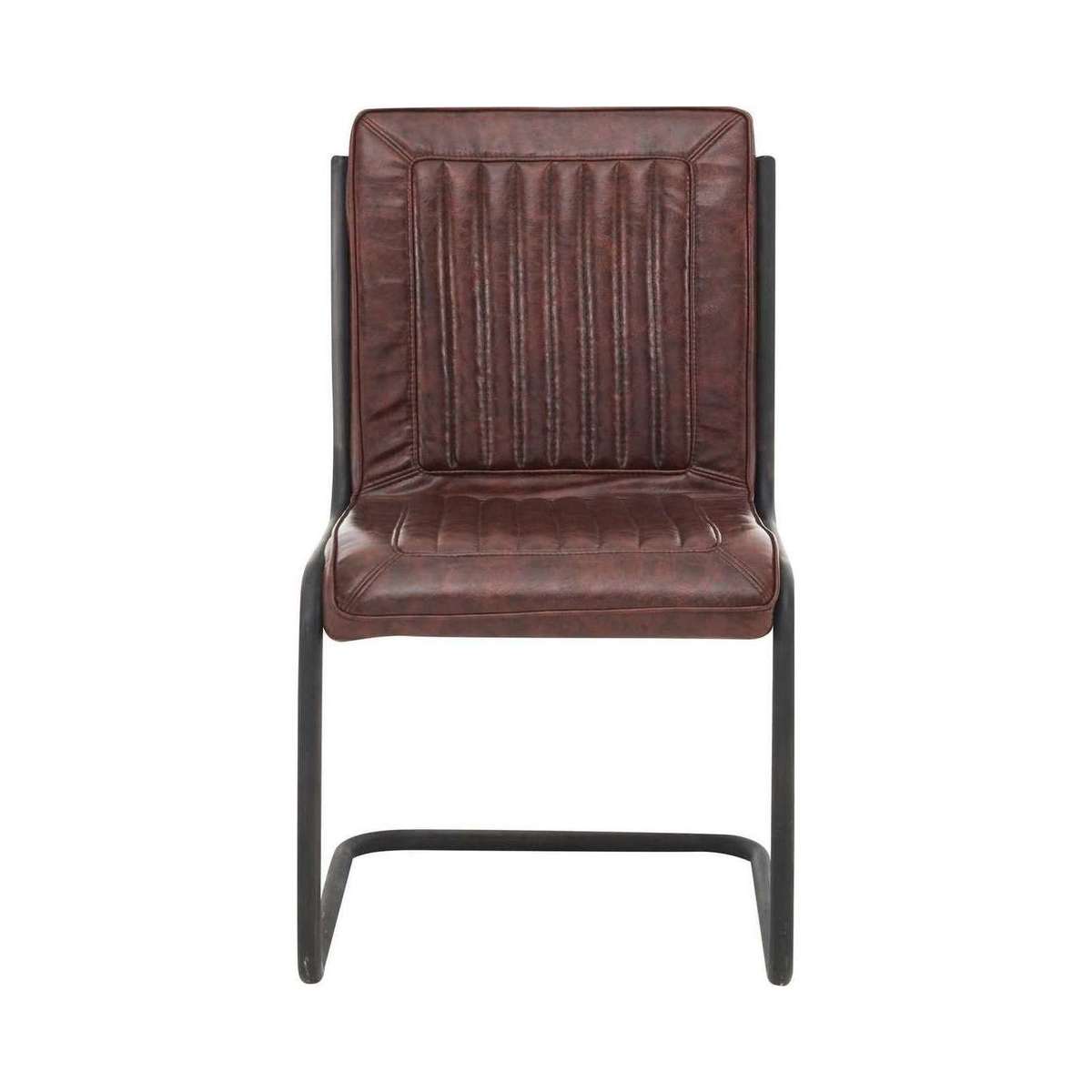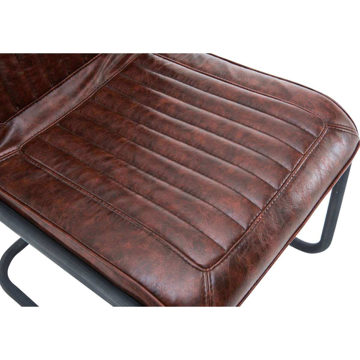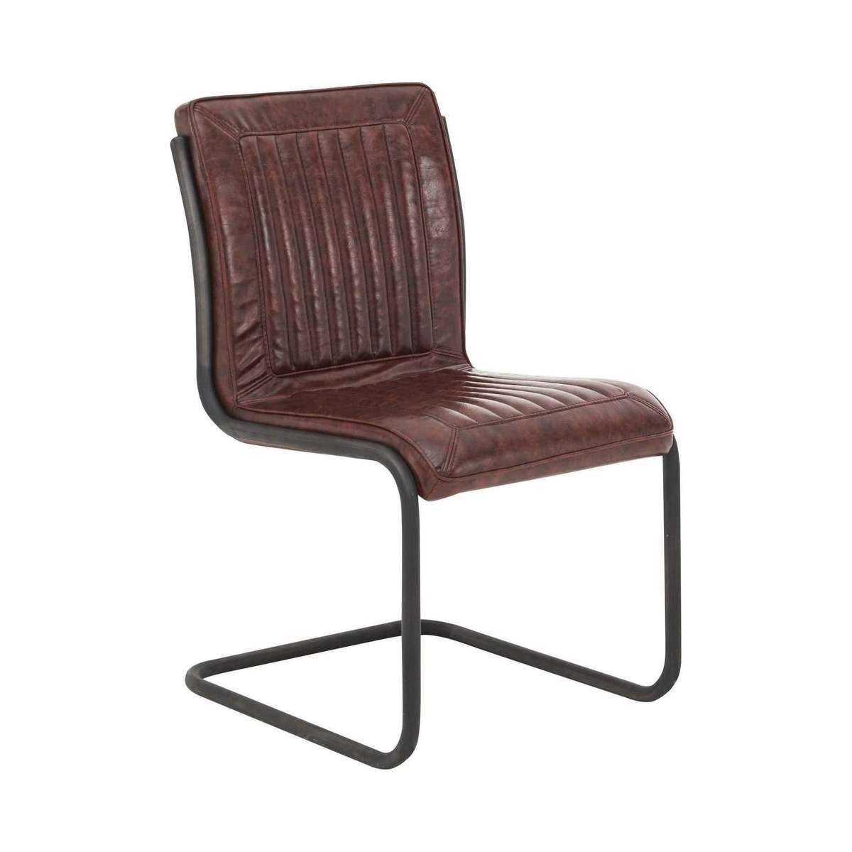 A modern industrial dining table needs the perfect chair – like the Fire dining chair.;Retro in style and beautifully crafted, this comfortable dining chair perfectly suits the industrial aesthetic. It’s well-padded and fully upholstered in a soft yet durable and easy-to-clean cognac-coloured faux leather with a stylish antiqued finish. Parallel rows of stitching within a wide border enhance the authentic leather look. The chair’s cantilevered frame is made of iron.;Part of the Fire collection of dining tables, dining sets and living room occasional and storage pieces, the Fire dining chair is handcrafted in India. It pairs beautifully with the Fire dining table but also makes the perfect desk chair in a contemporary home office. A Furniture Village exclusive.