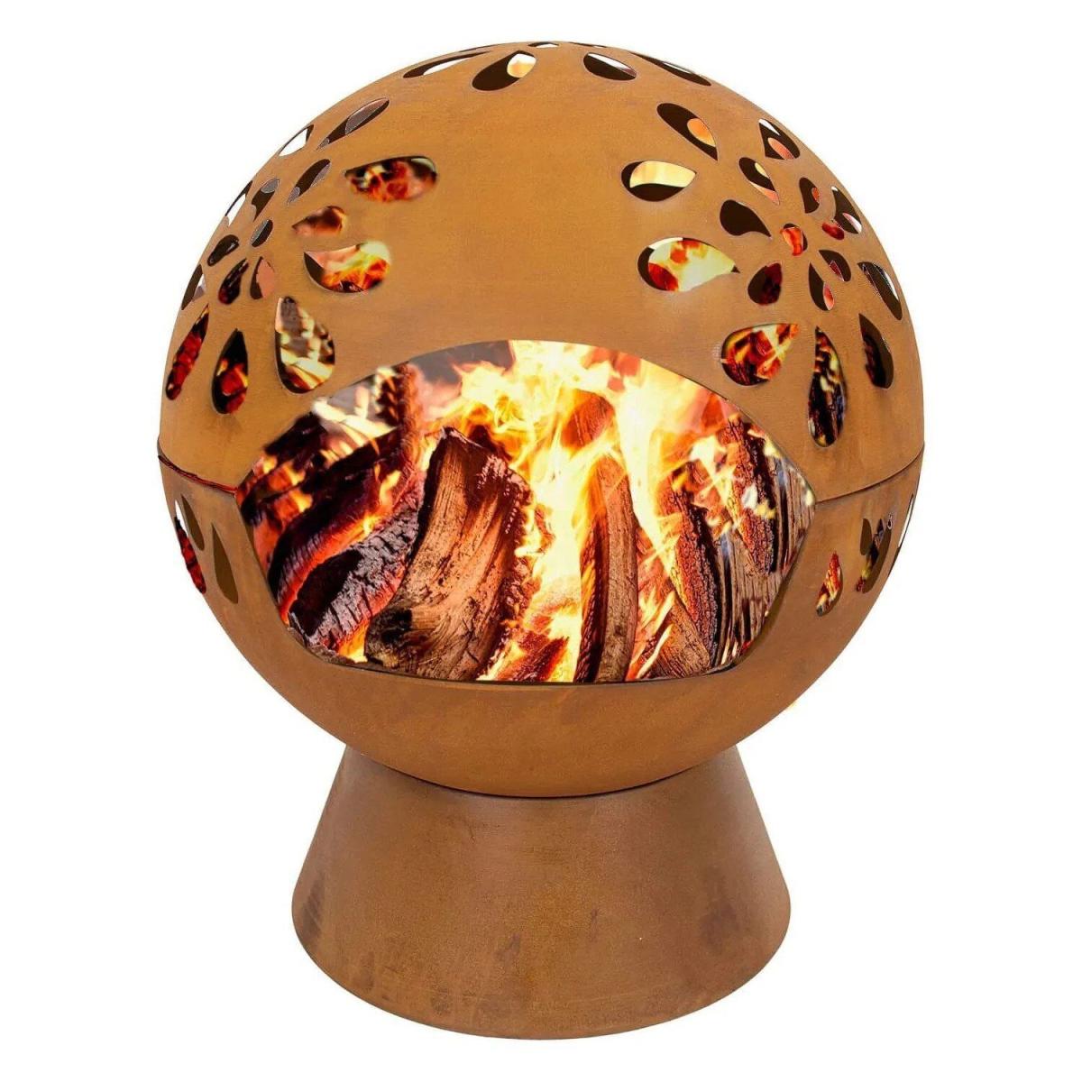 The globe fire pit is sure to be a brilliant piece to add to your outdoor space. Giving you off great heat whilst also looking brilliant with the stylish decorated design. The round outdoor fire pit comes with all the parts you need. A useful fire poker is included, great for keeping the fire going and meaning you do not have to source one from elsewhere. The fire pit comes with a useful weatherproof cover, ideal for protecting the piece from the unpredictable British weather. Easy to put on and take back off when you want, the cover protects your fire pit. The fire pit is easy to put together, simply put the 3 parts together and the fire pit will be ready to use in a matter of minutes. Allowing you to take it back apart when you are not using it with ease.