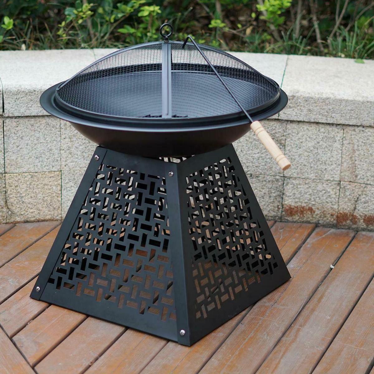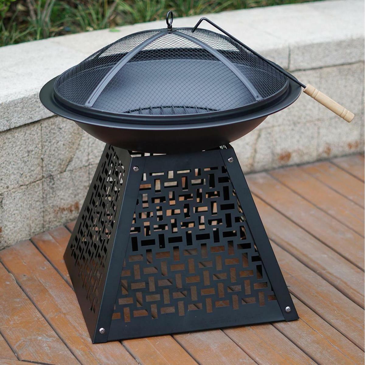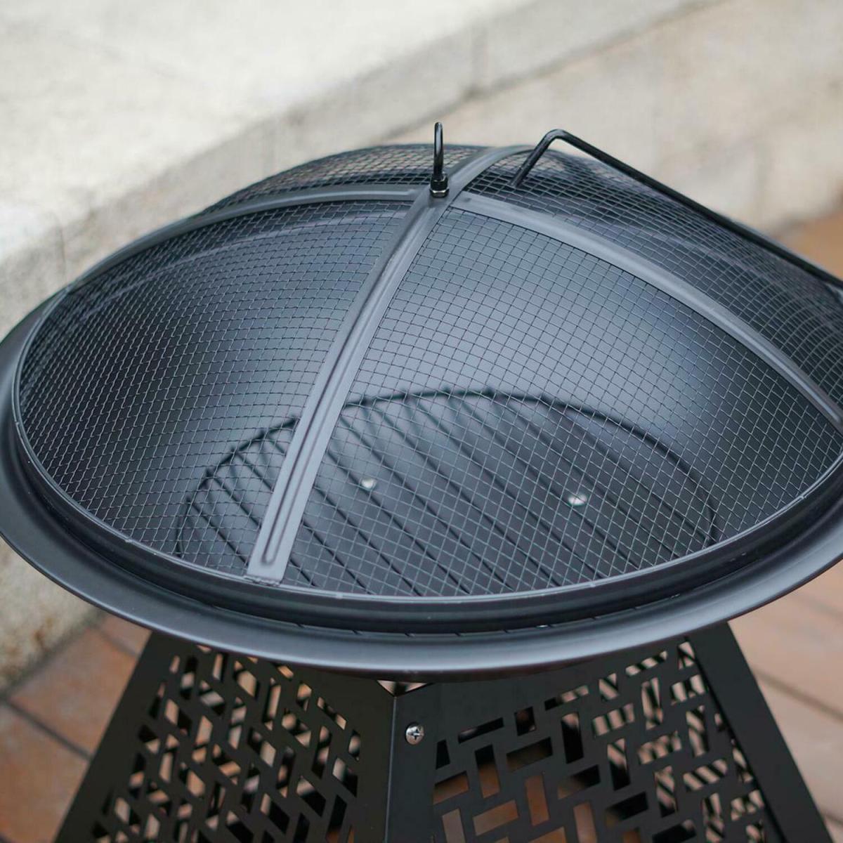 The Round Fire Pit with Lid is a robust but lightweight fire pit which features sturdy decorative base, along with a mesh lid to help keep the fire contained. The Round Fire Pit can be used with fuels such as Wood, Logs, Charcoal and more and is an excellent heat conductor. This makes the fire pit great for outdoor garden parties, BBQ's, Camping Trips and late evenings with family and friends. Along with easy-to-read instructions is a Poker and all the required screws and fittings which make for a quick and easy assembly, and can just as easily be dismantled. Perfect for storing the fire pit away when not in use or for packing up on camping trips.