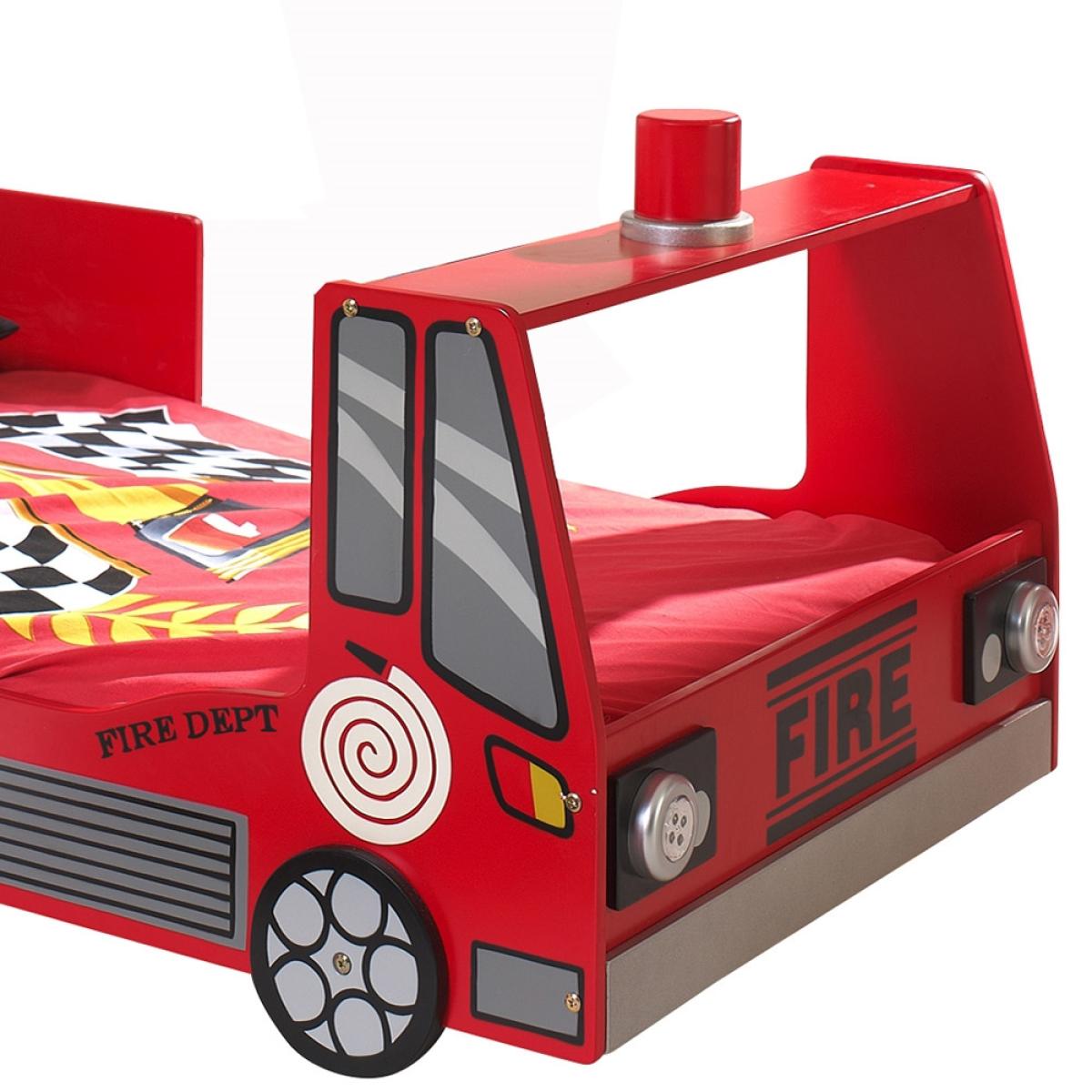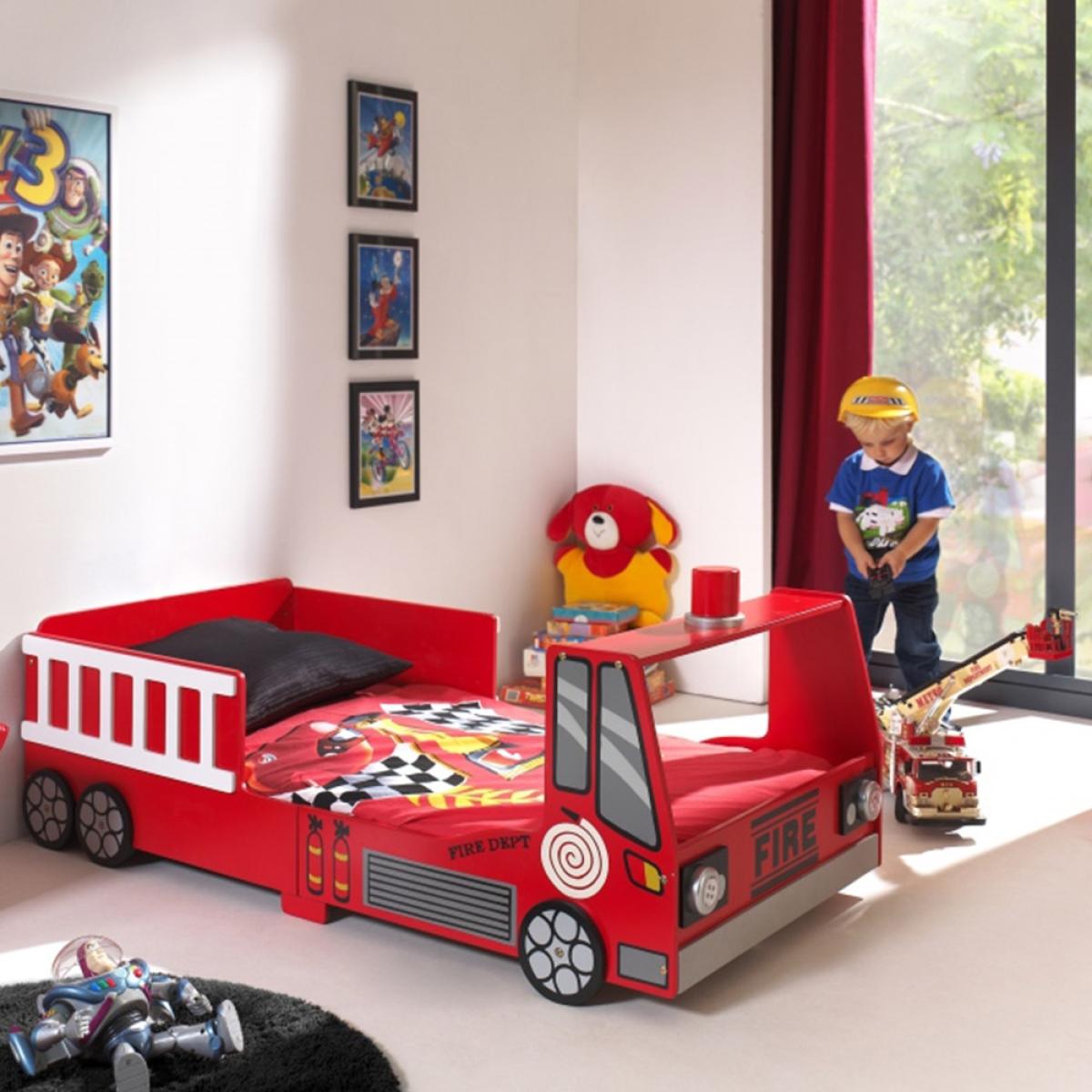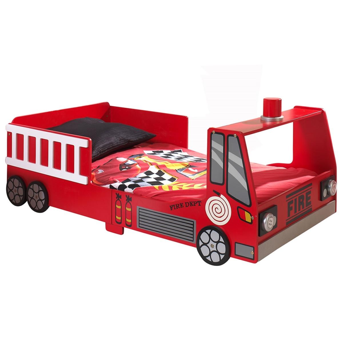 Your little hero will be desperate for bedtime to roll around with the Fire Truck Toddler Bed. Your little one's imagination can run wild with the built-in LED headlights guiding the way for all of those rescue missions! The bright and colourful graphics on this fire engine toddler bed add to the playfulness of this piece with everything a little firefighter would need, ladder, water hose and sirens all ready to go! There will be many dream-filled nights of rescuing cats from trees and fighting fires all over town. Your little one will save the day in their very own fire engine toddler bed! Not only is this piece fun but also built with your little one in mind, the lowered sides make it easy for little legs to climb in and out independently, so when your little one gets sleepy they can climb on in. Why not add to the look by adding some fun fireman themed covers and pillows!.