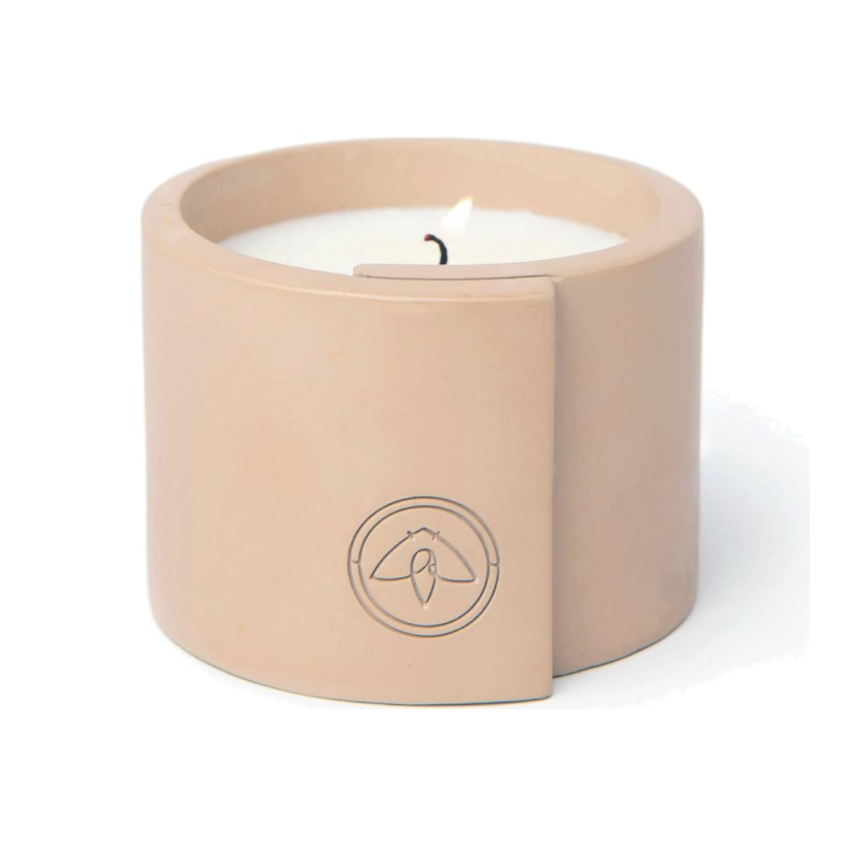 The playfulness of design and name. The concrete vessel encircles the scented soy wax candle, providing a modern and uniquely elevated aesthetic in both form and colour. Mix and match scents from the Cirque Collection to update your living space. Concrete vessel in unique shape; repurpose as a catchall or vase. Peach & Patchouli scent. Soy wax. Approximate burn time 25 hours. Size H6.35, W8.79, D8.79cm. Diameter 8.79cm.