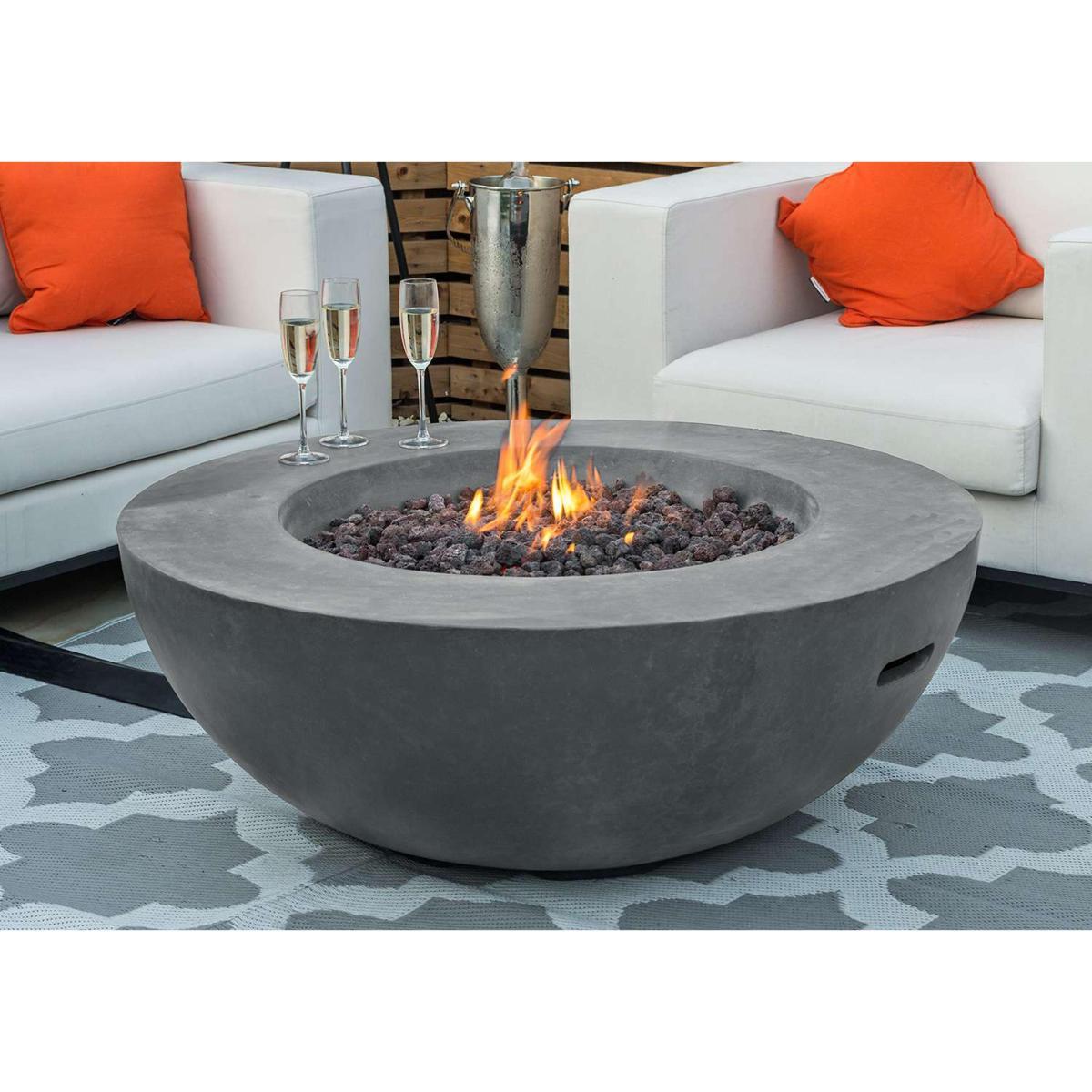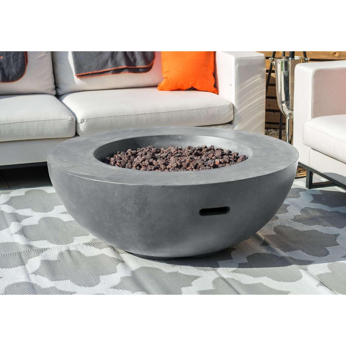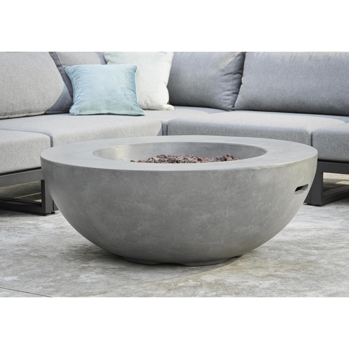 Gather round, everyone. The Brisbane round fire pit could be the focal point your patio craves. You can rest drinks on the edge as you enjoy relaxing long into the evening by firelight. Why you’ll love it. Warmth and firelight for garden relaxation. Stunning, bowl shaped fire pit and coffee table in one. Gas powered. Filled with attractive lava rock. Clean-lined modern style in polished concrete. In a choice of three colours. Sociable round shape. Rest drinks and snacks on the wide outer rim. Very easy to operate, with zero mess. On average, 6 hours of use from one 5kg gas bottle. What you need to know. Made of highly durable glass-reinforced concrete. Easy to maintain and clean. Operate with control panel on the side of the fire pit. Choice of heat settings. Can be left outside all year. A fitted fire pit cover is included. A 2.5m hose, with clip on gas regulator, is included. AAA battery included for ignitor. Fire pit burner, liner and ring are made from high quality, rust-resistant 304 stainless steel. High grade stainless steel inner, ring and burner are rust-resistant. Uses a standard green 5kg patio propane gas canister (available to buy separately). The fire pit system is CE Certified. Recommended accessories are a hose cover (available to buy separately) and gas bottle cover (also available separately). Clean with water and a soft cloth. Avoid abrasive cloths or chemical cleaners. If exposed to the salt of coastal winds we advise regular wiping down and covering in winter and in stormy weather.