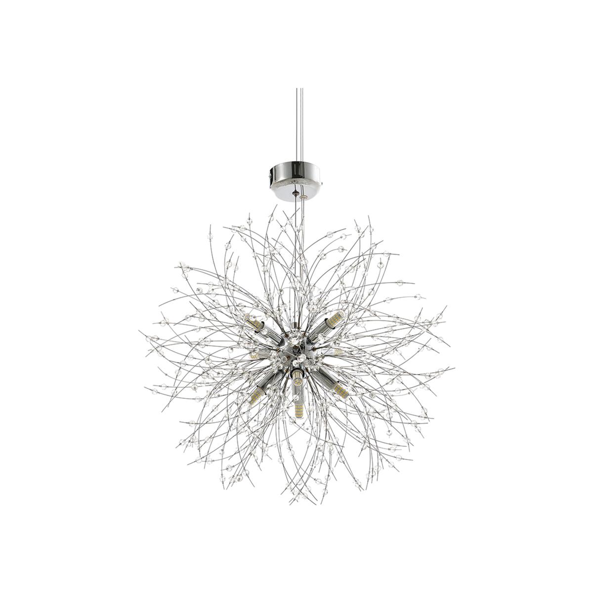 This striking chandelier features a firework-inspired design, with multiple elegant branches extending from a central point. Each branch is adorned with delicate crystal details that shimmer in the light, creating a stunning visual effect. Ideal for adding a touch of glamour and sophistication to any modern living space, this chandelier brings a sense of drama and elegance to your home.