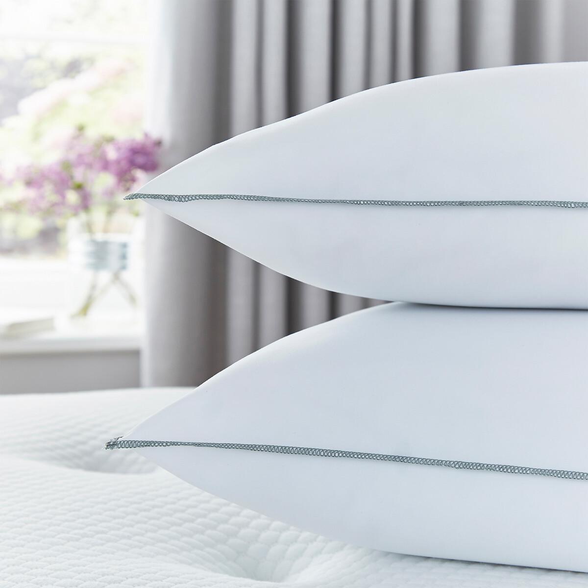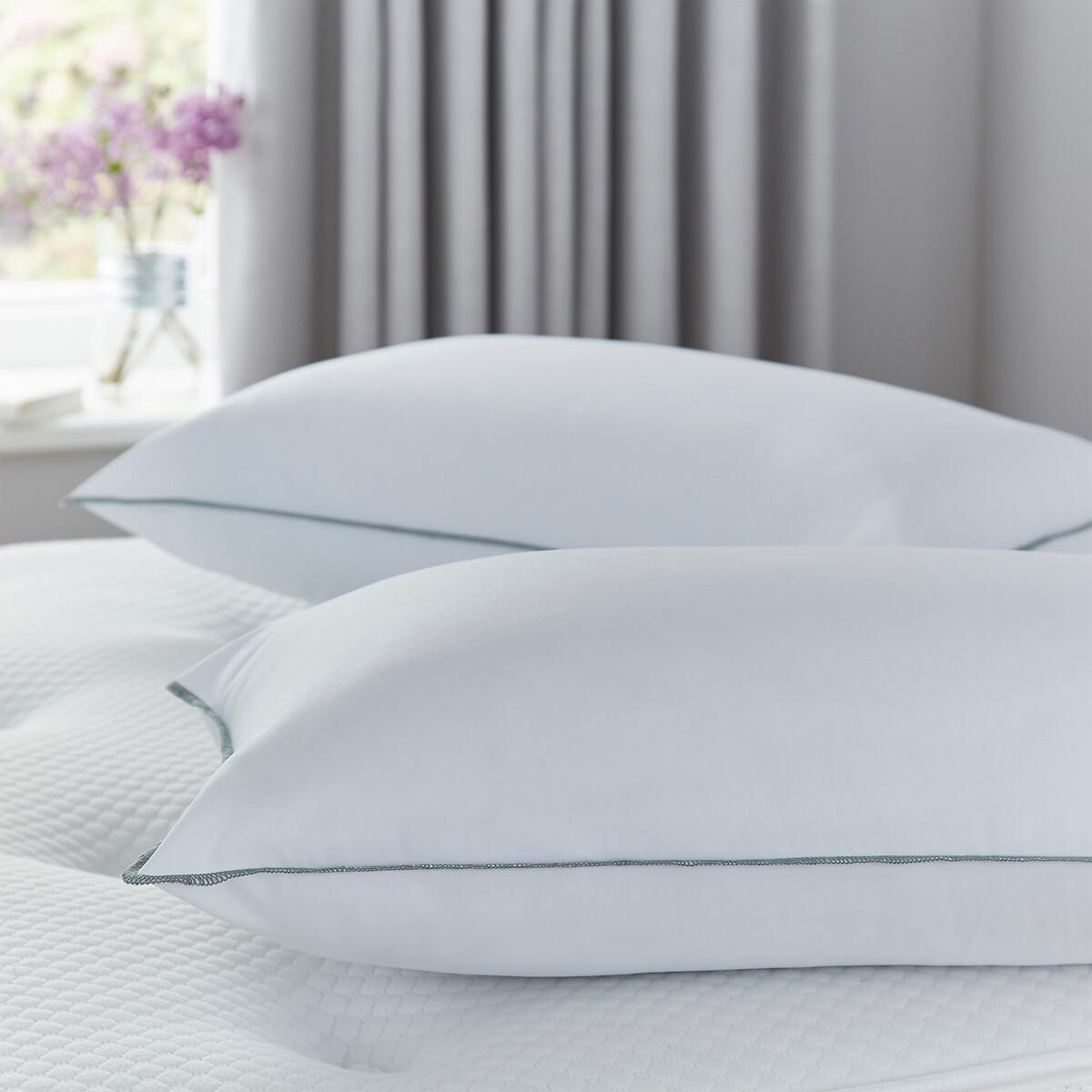 The Firm Support Pillow Pair by Silentnight is simply designed to offer comfort and support. The pillows have a ventilated breathable foam core in the centre surrounded by deep filled bouncy hollowfibre. This results in a plump and supportive pillow that is ideal for people who sleep on their side. The pillows are encased in a mircofibre cover that is both soft and easy to care for and will provide ultimate comfort for a great night’s sleep. The pillows come with a two year manufacturer’s guarantee so you can sleep soundly with your purchase. The pillows are hypoallergenic which means they do not contain any materials that are likely to cause allergies. Suitable for hand washing. At Silentnight we understand the importance of a good night’s sleep and we believe your pillow should be as unique as you. When choosing the right pillow you need to consider your dominant sleep position. For example people who sleep on their front require only a small amount of support from their pillow, so a soft and slim pillow is ideal for front sleepers. Back sleepers need a little more support, so a medium firmness is best suited. Finally, side sleepers require the most support from their pillow to help relieve pressure from the neck. If you sleep on your side you will feel more comfortable with a firmer pillow. Back and side sleepers may need to use more than one pillow to achieve the perfect level of support..• 2 Silentnight Firm Support Pillows, standard size L69 x W46 x H15cm.• Features a ventilated foam core within the centre of the pillow for breathable support.• Provides great support for your head and neck for ultimate comfort while you sleep.• The foam core is surrounded by soft and bouncy hollowfibre and encased in a microfibre cover.• Firm support, suitable for side sleepers, hypoallergenic and made in the UK.• 2 year manufacturer’s guarantee. This product will be dispatched by one of our trusted suppliers. You’ll be contacted by their selected courier about your delivery. COMFY01. Goods must be unused and returned in their original packaging. If sealed for health/hygiene reasons they must also be returned unopened with seals, stickers and tags intact.