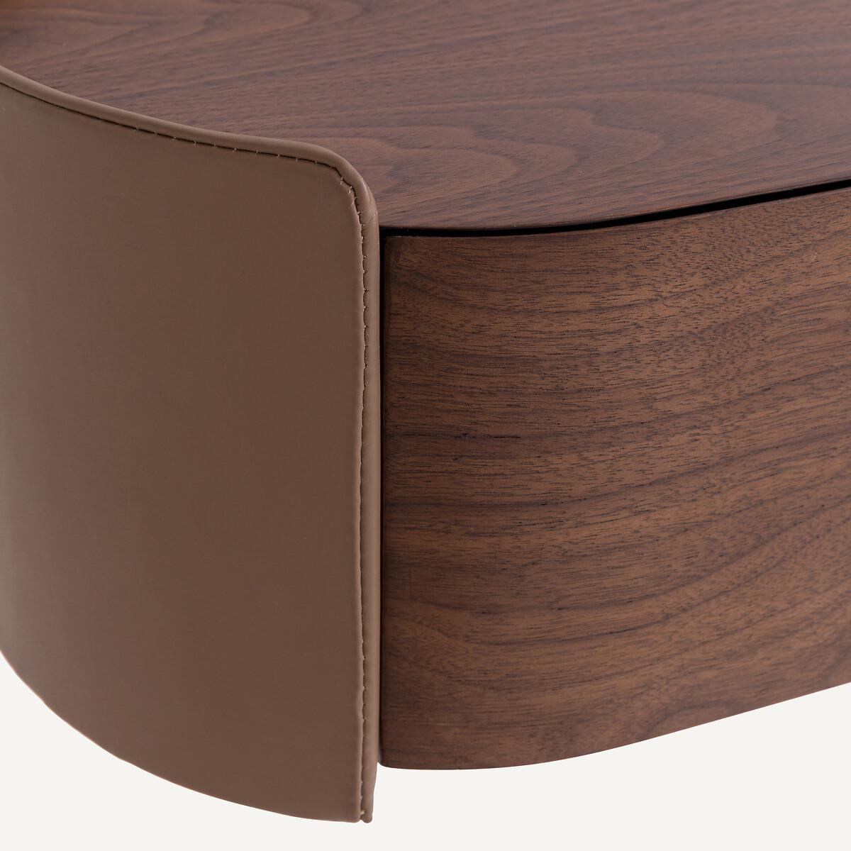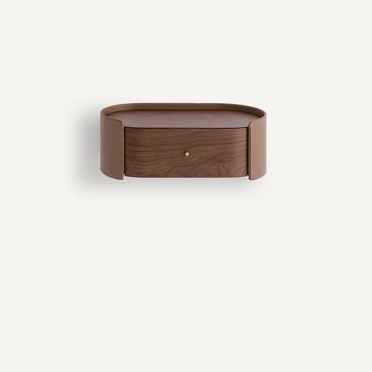 With curves that soften its edges, the Firmo bedside borrows from 1950s style. Sophisticated, its sides covered in genuine Italian leather offer an elegant contrast with the walnut veneer of the drawers. Firmo can be positioned according to the height of your bed. An exclusive AMPM design. Product Details • Structure in FSC® certified eucalyptus MDF • Sides covered with genuine Italian leather (cowhide, corrected grain, aniline finish, chrome tanning) • Topstitched detail • Drawer in FSC® walnut veneered MDF, nitrocellulose finish • Steel soft closing system. • Gold coloured iron buttonDimensions. Overall • Width 56cm • Height 19.8cm • Depth 31.3cm. Useable drawer dimensions • L39.5 x H16.2 x D24cmDelivery:. Sold pre-assembled. Available for home delivery. Note! Please check that all access points are large enough to accommodate your delivery (doors, stairs, lifts). • WOOD FROM SUSTAINABLY MANAGED FORESTS. FSC® certified wood comes from forests that are environmentally, socially and economically well managed. Parcel Dimensions • 1 parcel • L66 x H27 x D38cm. 10.8kg