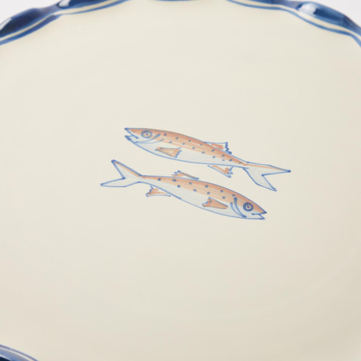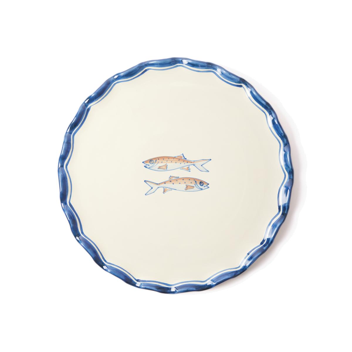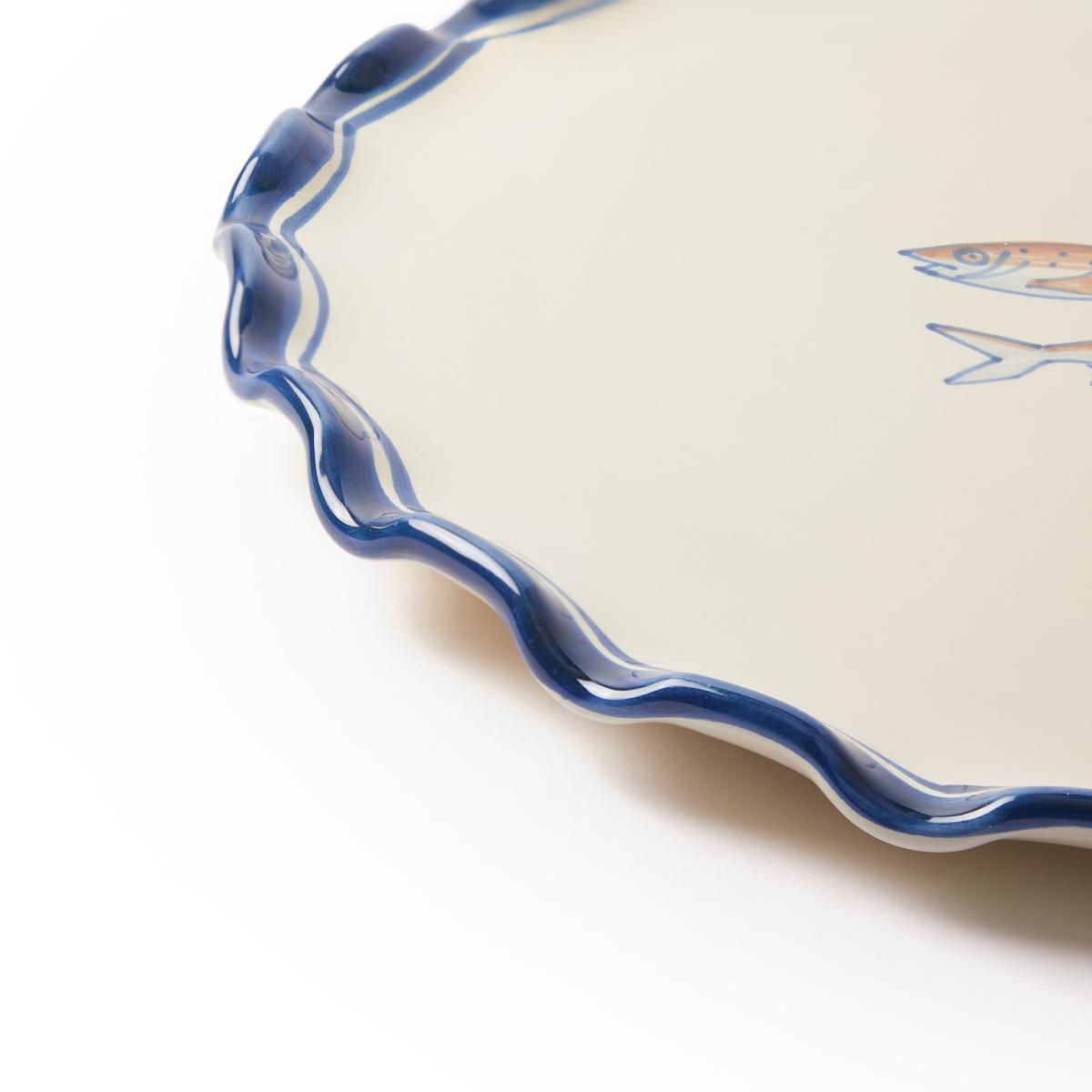 Our stoneware Fish Platter is made in a family run factory in Puglia, Italy, an area well known for its history in producing world class ceramics. Each piece has been finished by hand, adding colour to the playful fish illustration and the blue waved design which decorates the rim giving this piece a more traditional feel. Perfect for displaying on open shelving, displaying fresh fruit or vegetables or serving up your favourite salads or pasta dishes, this platter brings a touch of playfulness and a classic feel to everyday dining and entertaining.