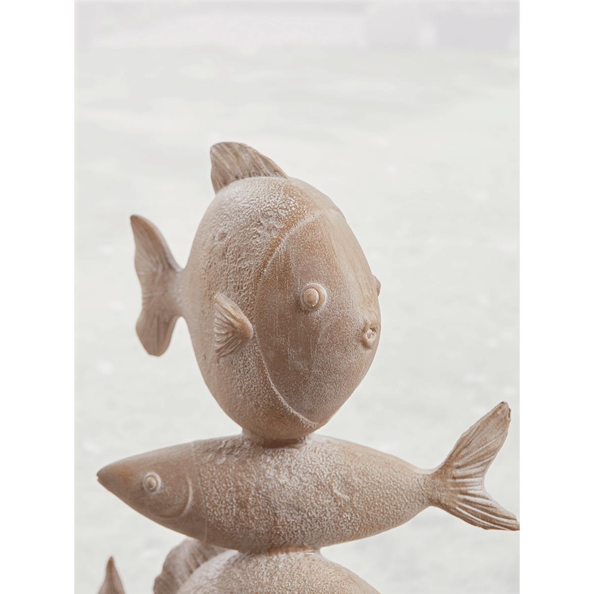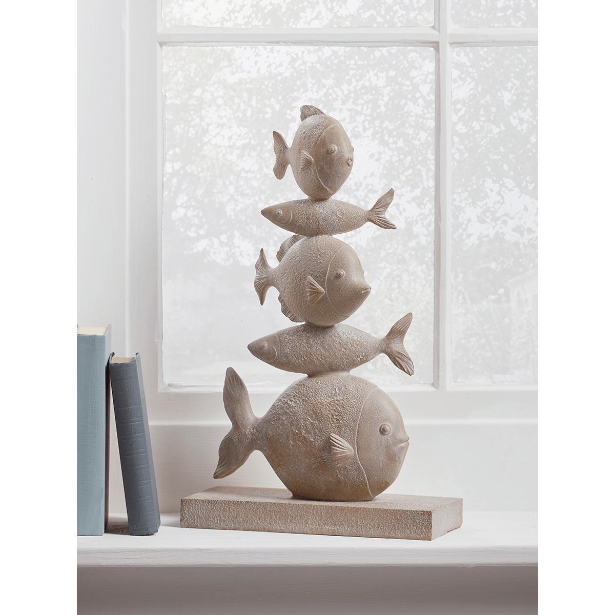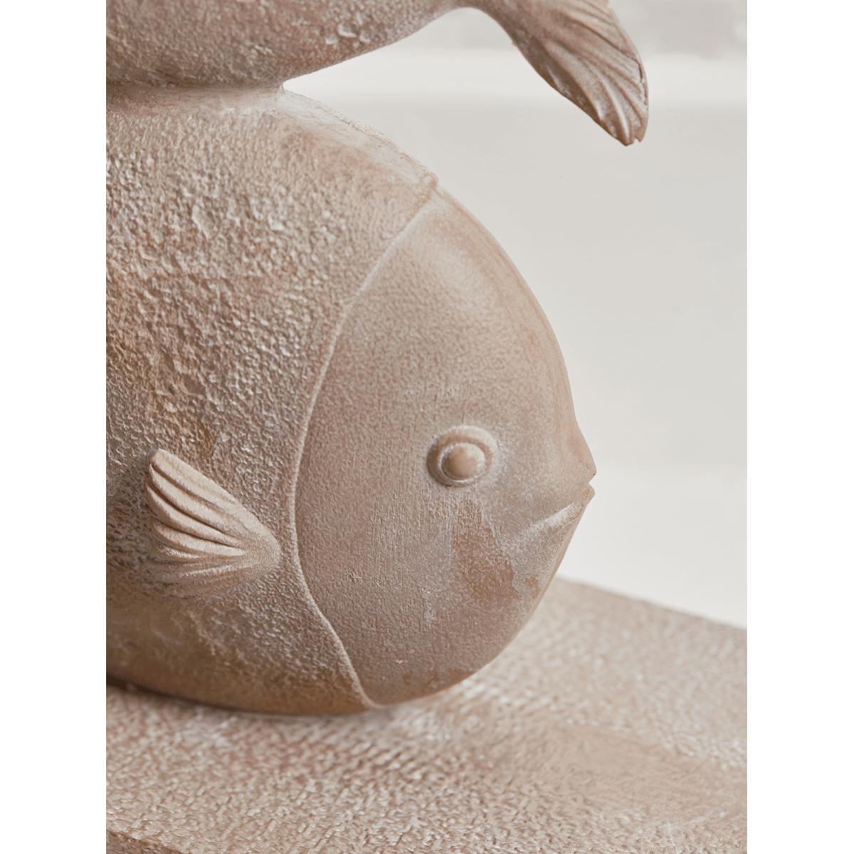 The brown washed finish of our lively fish ornament highlights the detail in the ornament beautifully. Our pretty fish come posed above one another on a plinth base - perfect for bringing character and charm to your shelves, and for providing height when styling any surface.