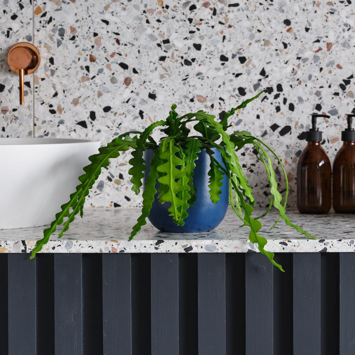 Originating from the tropical rainforests of Mexico, the Fishbone Cactus is named after its uniquely shaped long, flat stems which resemble the shape of a fishbone. These stems will begin growing upright, but as they mature they’ll grow longer and being to trail down. You’ll notice this plant grows aerial roots, this is because in its natural habitat the fishbone cactus would cleverly anchor itself to another plant. Super easy to care for, the Fishbone is the perfect plant for any new plant parent. Paired with a handmade, perfectly-fitting coloured earthenware pot. How to keep me happy: Please note: As this is a living product your plant may vary to the one photographed. Plant height measurement includes the pot. Width measurement is for the width of the pot only; width of the plant may vary. Please note, unfortunately we cannot deliver this item to Northern Ireland or the Channel Islands.