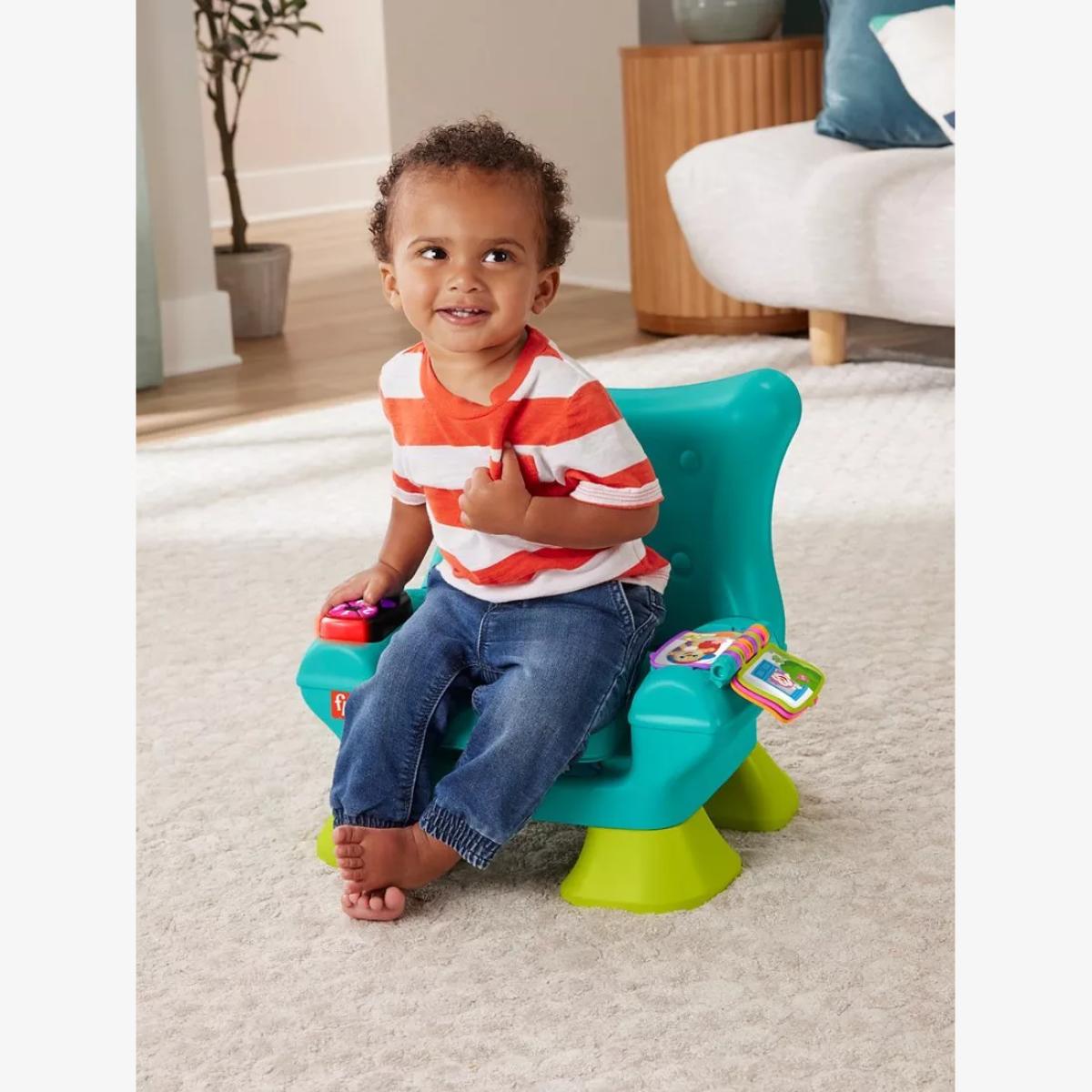 I’m a fan of the Laugh & Learn chair because its soft pink hue adds a friendly pop of colour without overwhelming a space. It works especially well in Scandi-inspired nurseries, contemporary playrooms or any lightly toned living room corner. To style it, tuck it beside a low wooden shelf with a few board books on display and layer a natural-fibre rug underneath to define the spot. Its compact size means you can move it around easily for story time or snack breaks, and the built-in educational buttons blend seamlessly into modern family spaces.