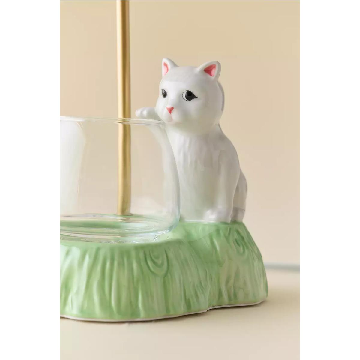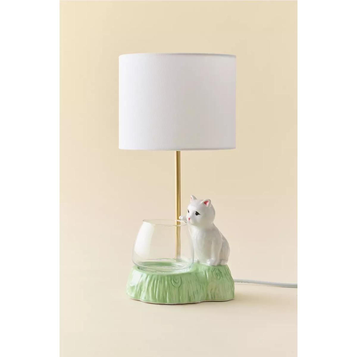 Add a kitsch touch to your space with this super cute fishing kitten table lamp. Plug-in design with a ceramic kitten with a glass embellishment for your trinkets and textile lampshade. Bulb not included. **Content + Care** \- Ceramic table lamp with a textile shade and glass embellishment \- Spot clean \- Recommended bulb: Type G (not included) \- Socket: E14 \- UK and EU plug