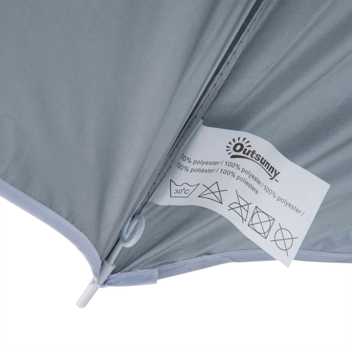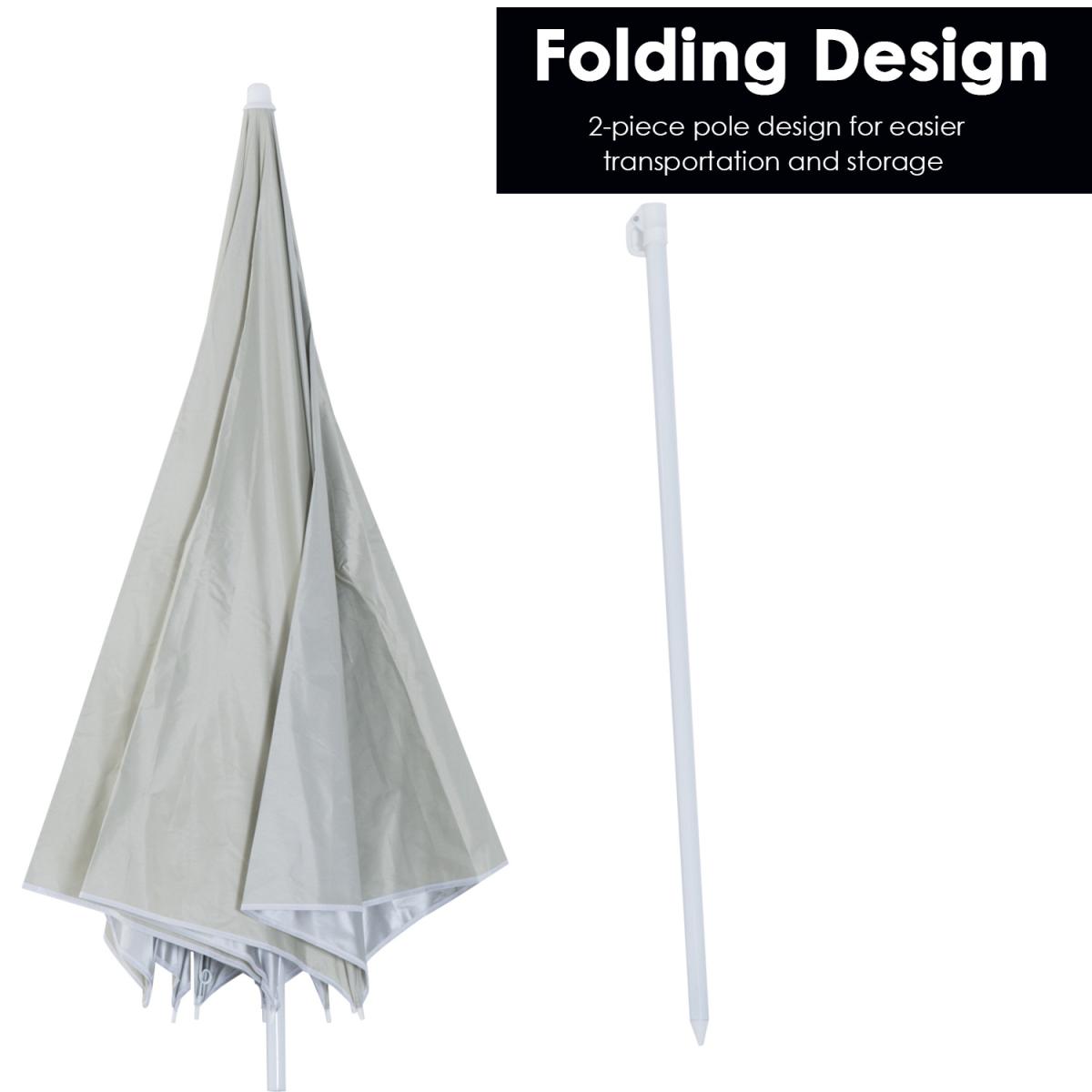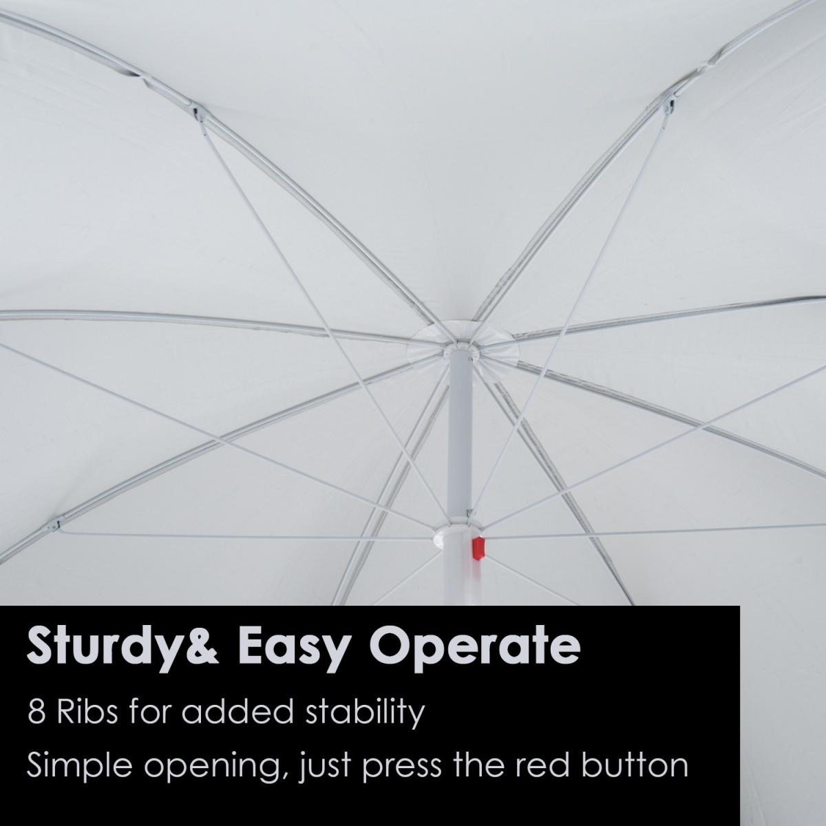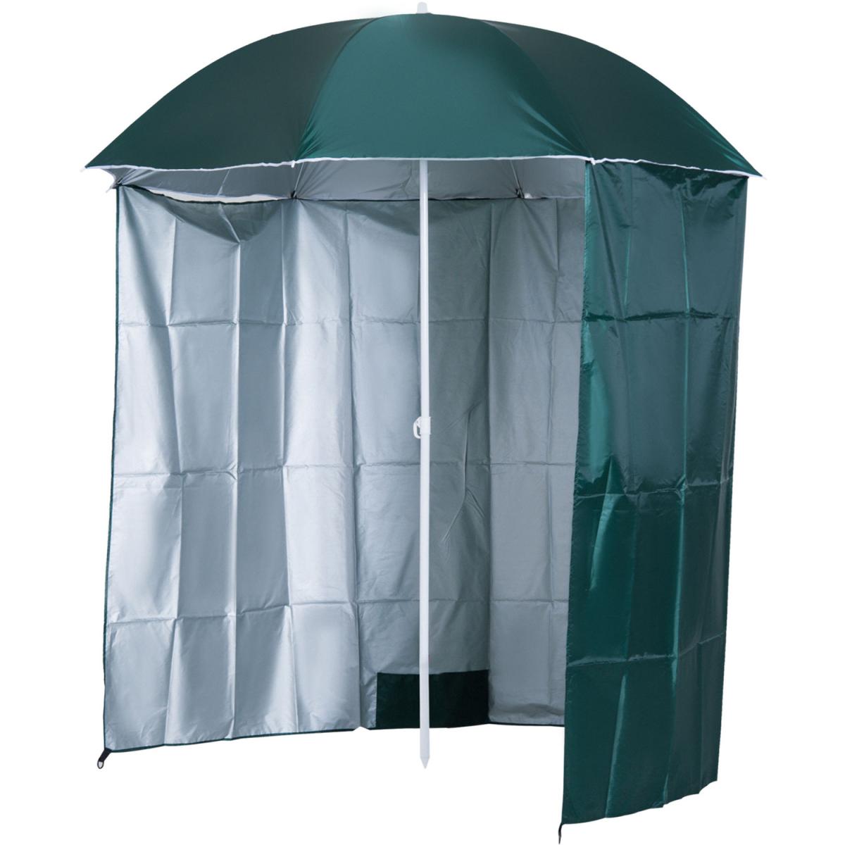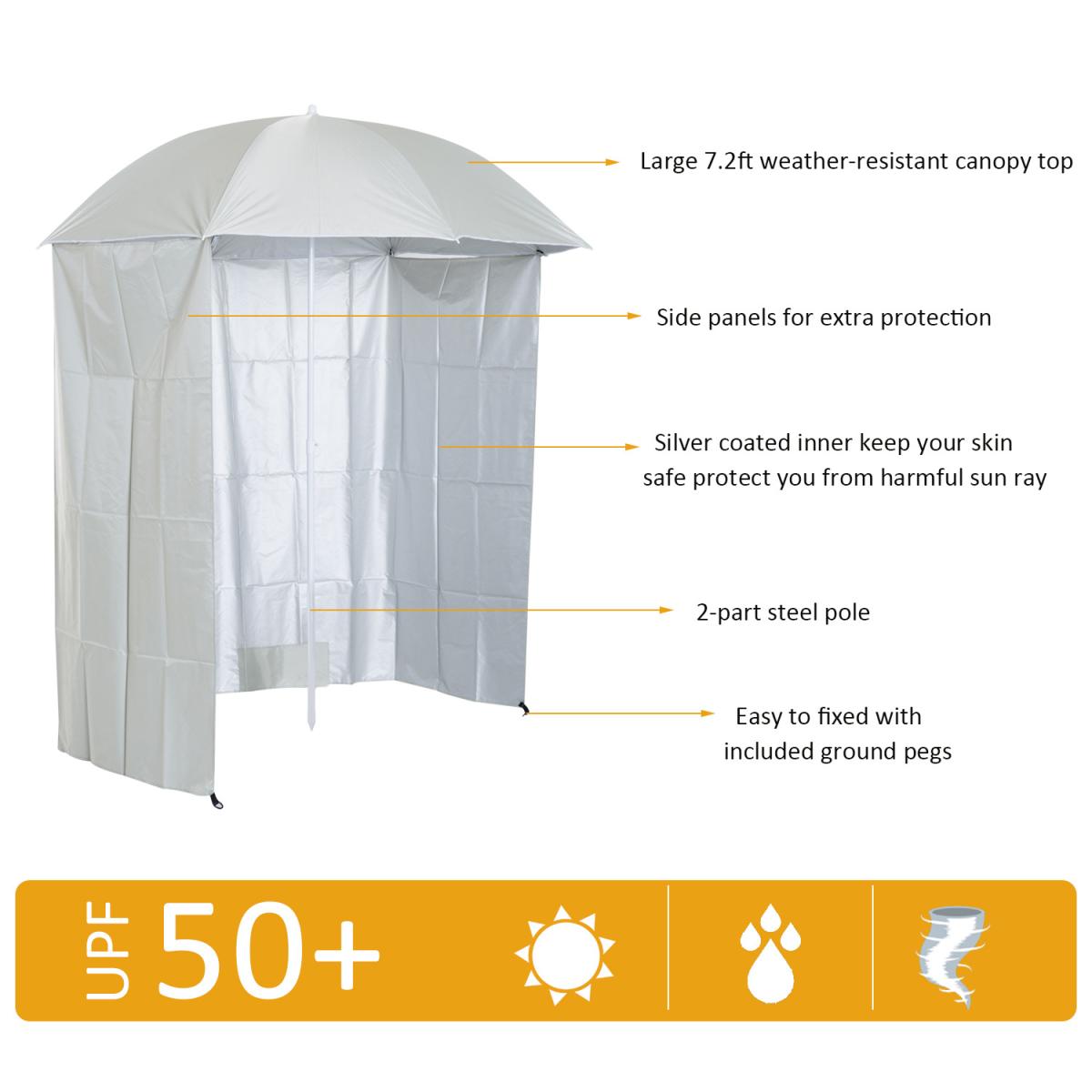 This Outsunny sports beach umbrella is a suitable accessory to have when you are at the beach or fishing. The umbrella acts as an effective sunshade with side coverings to keep the wind and rain away. It comes complete with ground stakes and sandbags to secure your umbrella to the ground. The umbrella also has an inner silver lining to the polyester cloth which will be able to protect you from harmful UV rays. The unit comes with a carry case which is helpful when travelling and storage. Round stakes and sandbags secure the umbrella to the ground (ITEMS NOT INCLUDED)
