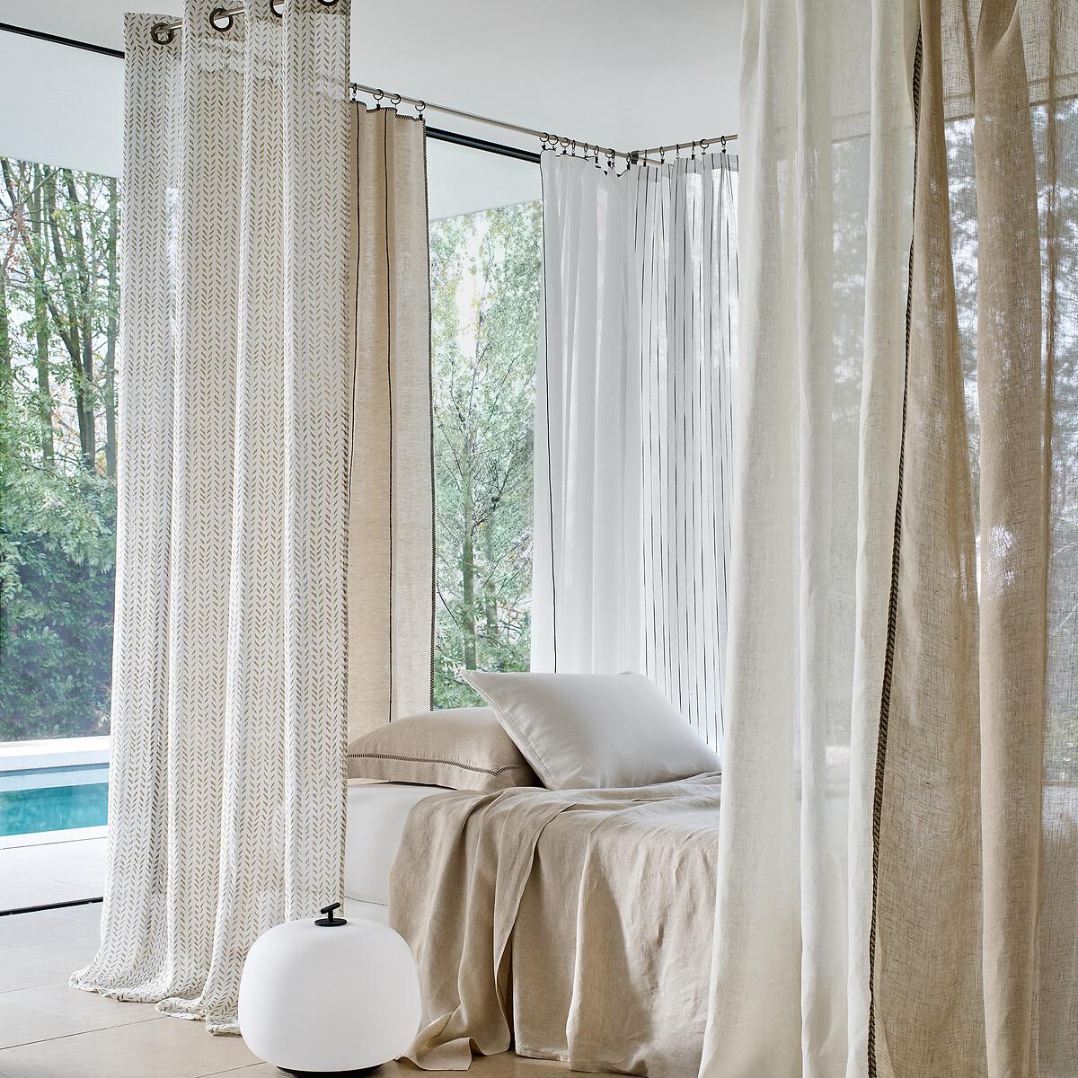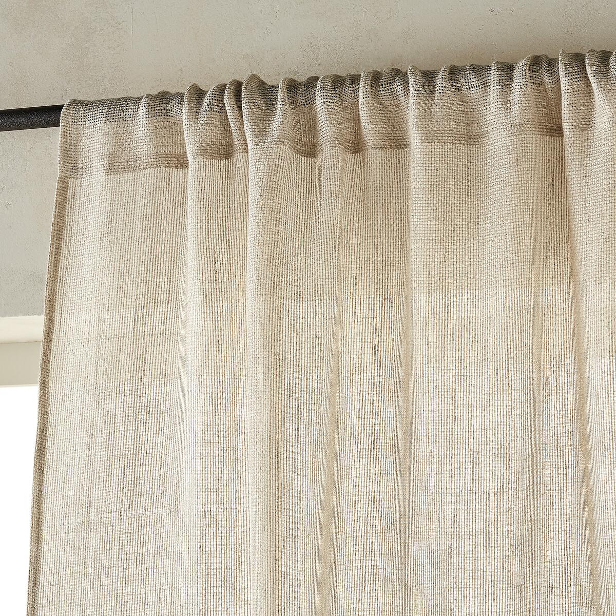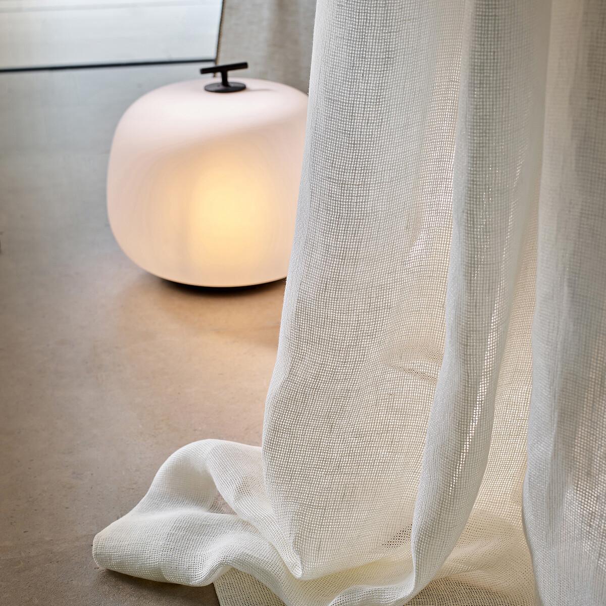 The Fishoyi sheer is in a subtle linen fabric. The lightness of the "net effect" weaving gives it a unique charm, with small irregularities. Product Details • 100% linen • Openwork finish, fishing net mesh style • Rod pocket finish. Can also be hung with Loch curtain clips, sold on our site. Care Advice • Dry clean only. Sizes • L140 x H180cm • L140 x H220cm • L140 x H260cm • L140 x H320cm • L140 x H350cm