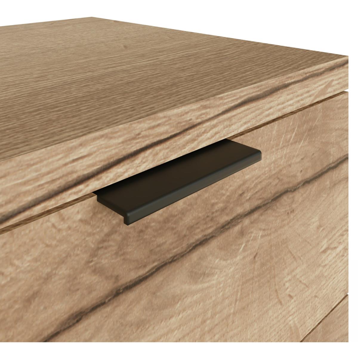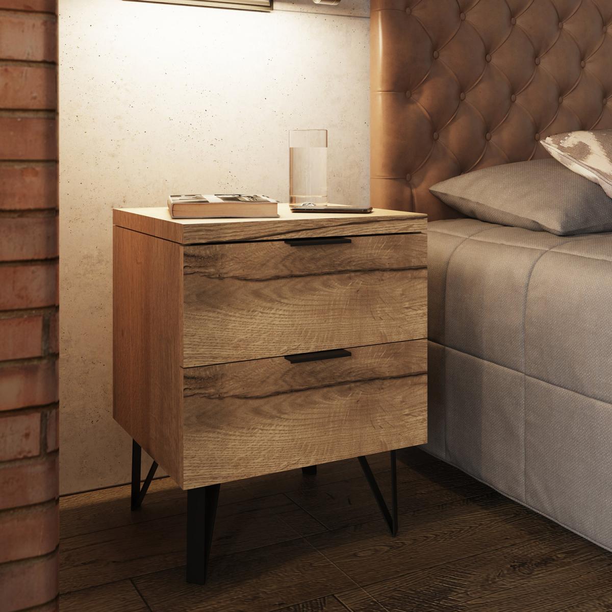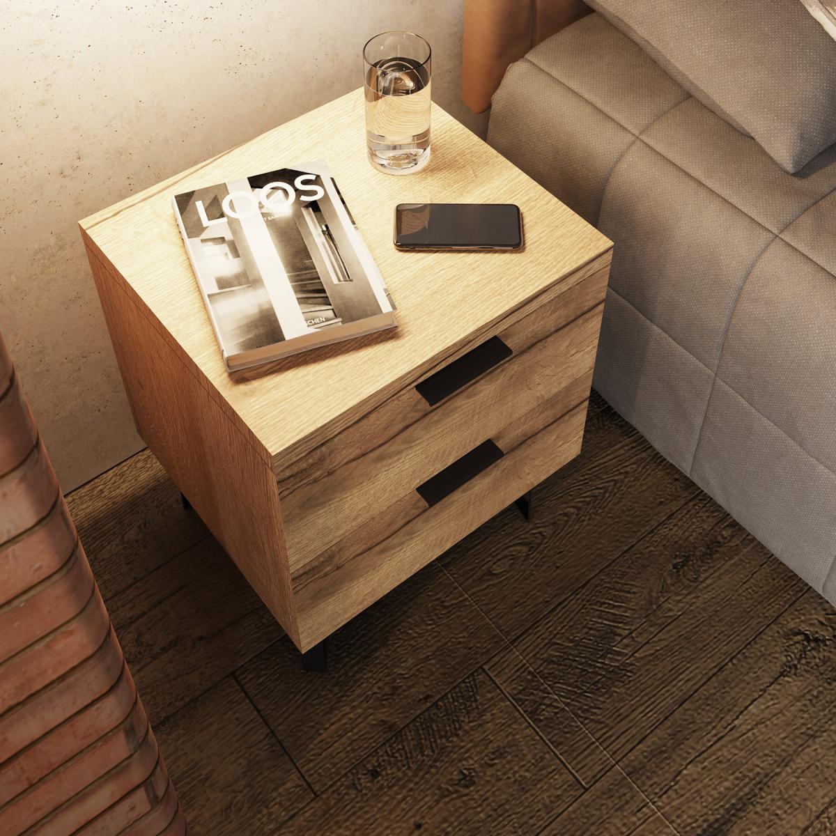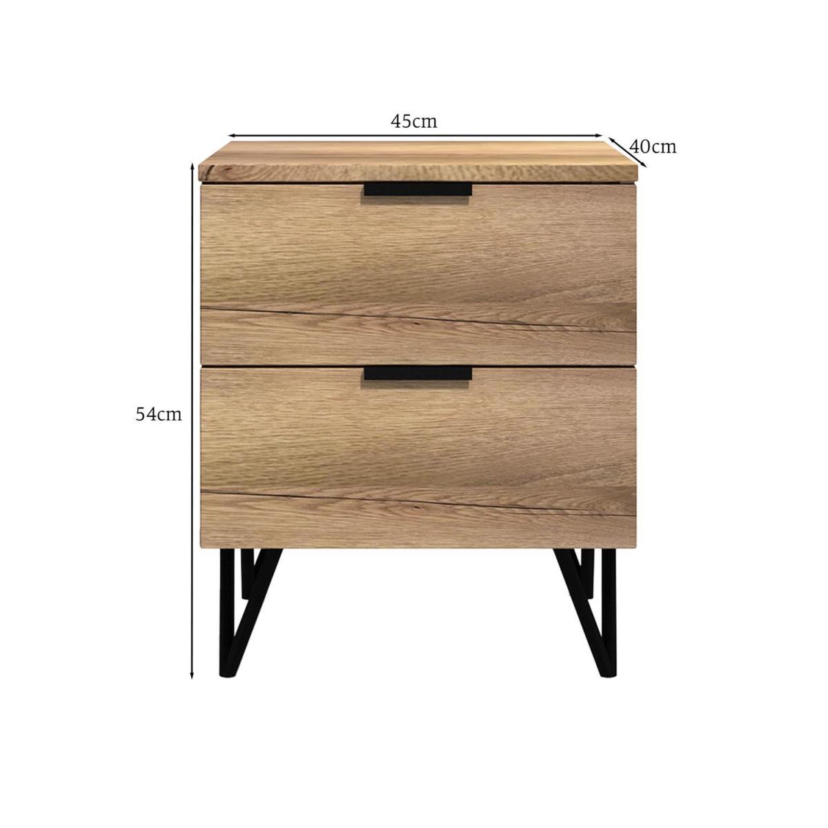 Elevate your bedroom's aesthetics with the Fisso 2 Drawer Bedside in Cracked Oak. This uniquely designed piece brings out the best of traditional and modern design elements. The cracked oak finish imparts a timeless charm, emphasising the intricate details of the wood, while the streamlined design and sleek black accents cater to contemporary tastes. Ditch those toolbox blues, assembling this piece is a breeze. Each panel simply clicks together using a patented hook and groove system, eliminating fiddly hardware and so much stronger too! Click together in less than half the time of standard flat-pack. Cracked oak veneer finish, capturing the detailed elegance of oak wood aesthetics. Contemporary black handles and legs that add a modern flair. Two drawers, offering ample storage space for your night-time essentials. Flat Pack - Easy DIY Quick Click Assembly - Instructions & Fittings Provided.