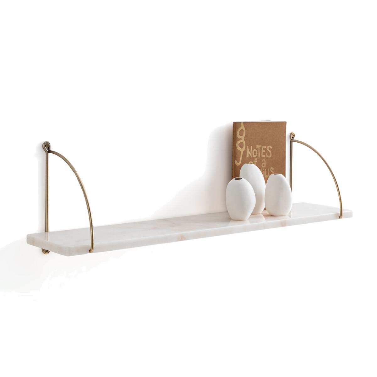 I love this shelf for its elegant mix of marble and brass, which offers a sleek, sophisticated look. It's versatile enough to work in both modern and classic interiors, adding a touch of luxury without being ostentatious. Practical styling tips include layering decorative objects like vases, candles, or small plants to create visual interest. It’s perfect for displaying books, small plants, or personal mementos in living rooms, kitchens, or even bathrooms. When styling, keep the colour palette considered-neutral tones or metallic accents will enhance its refined aesthetic. Its slim profile makes it ideal for spaces where you want to maximise style without sacrificing space.