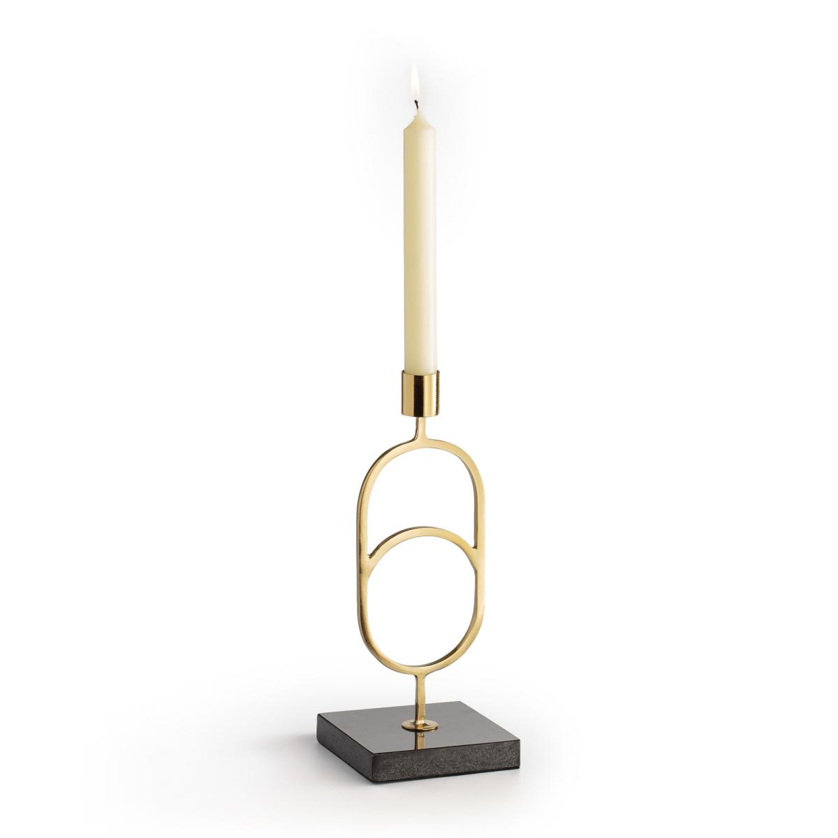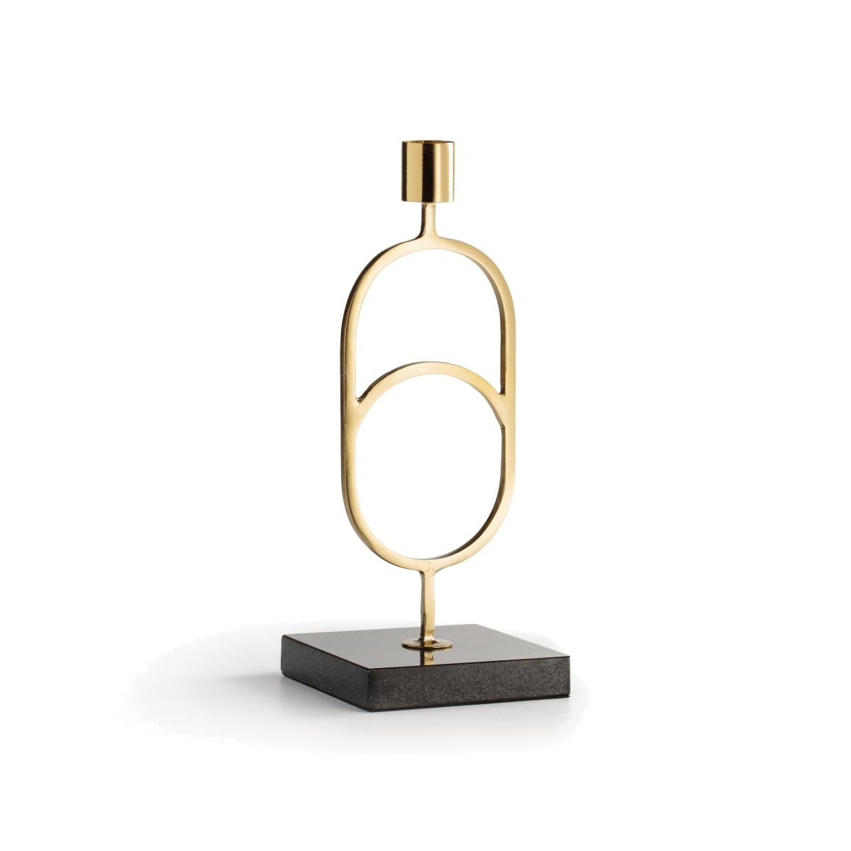 The Fitia candlestick has a delightful charm thanks to its combination of curved brass and marble.