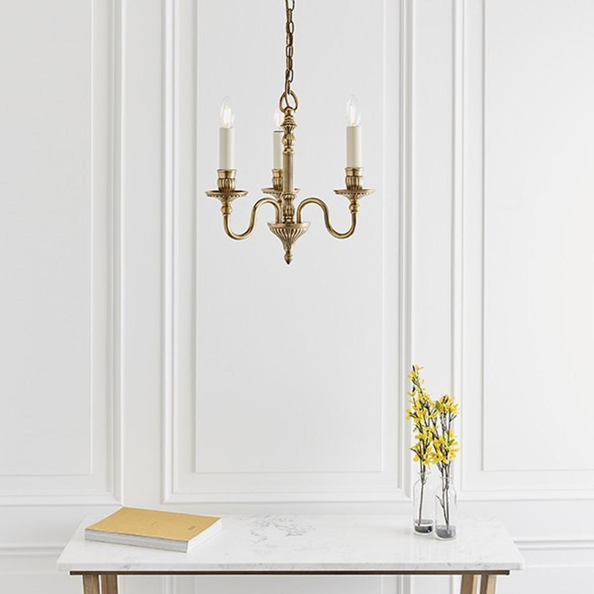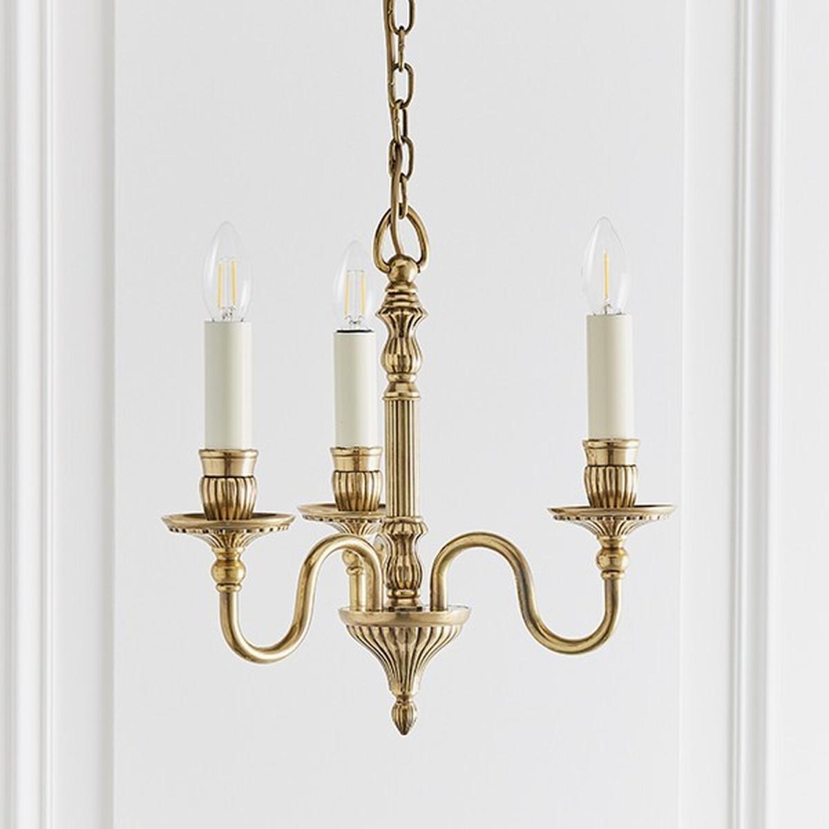 The three light pendant is a premium quality, solid brass fitting in a Georgian style with a decorative detailed finish. Dimmable, matching items available and compatible with LED lamps.