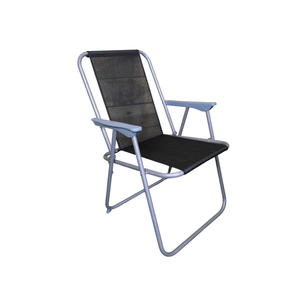 Foldable Grey and Black fixed position Garden chair with a Grey metal frame with a Black fabric seating material. This foldable chair provides easy storage and manoeuvrability.