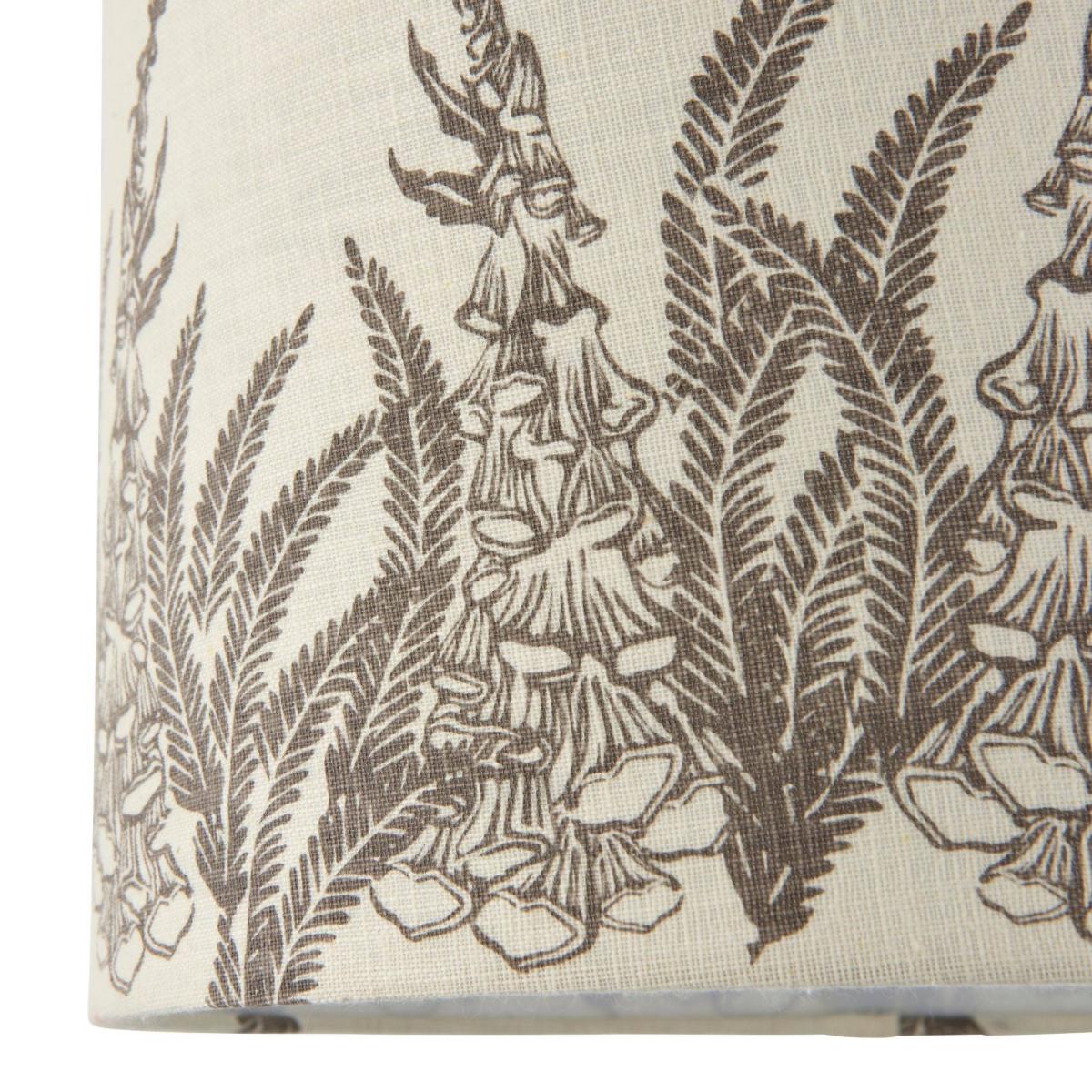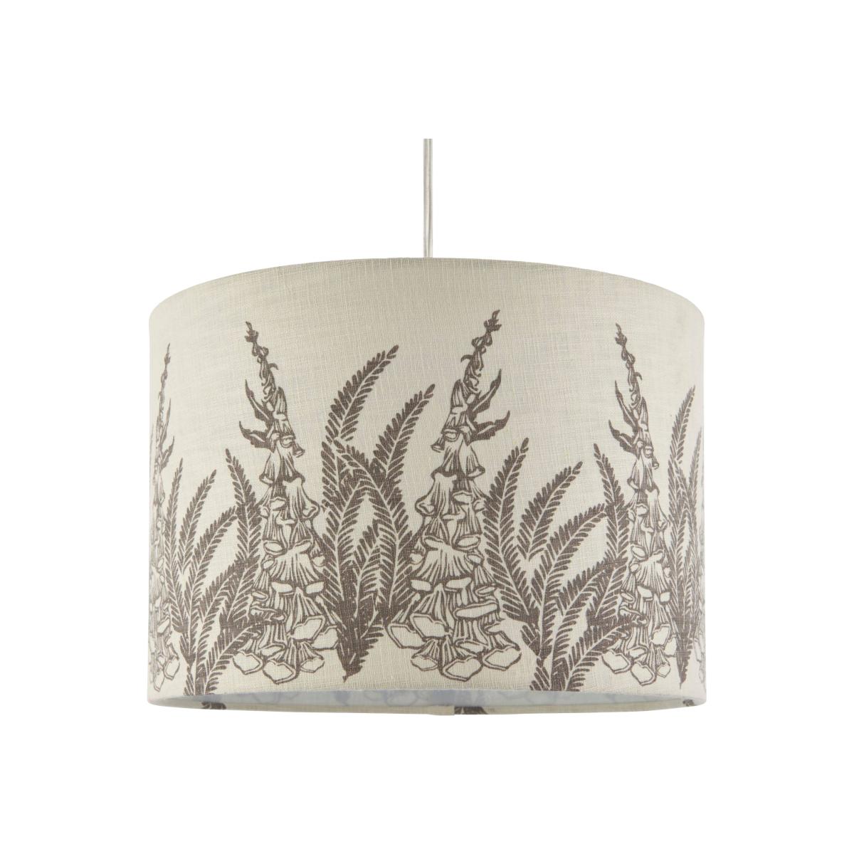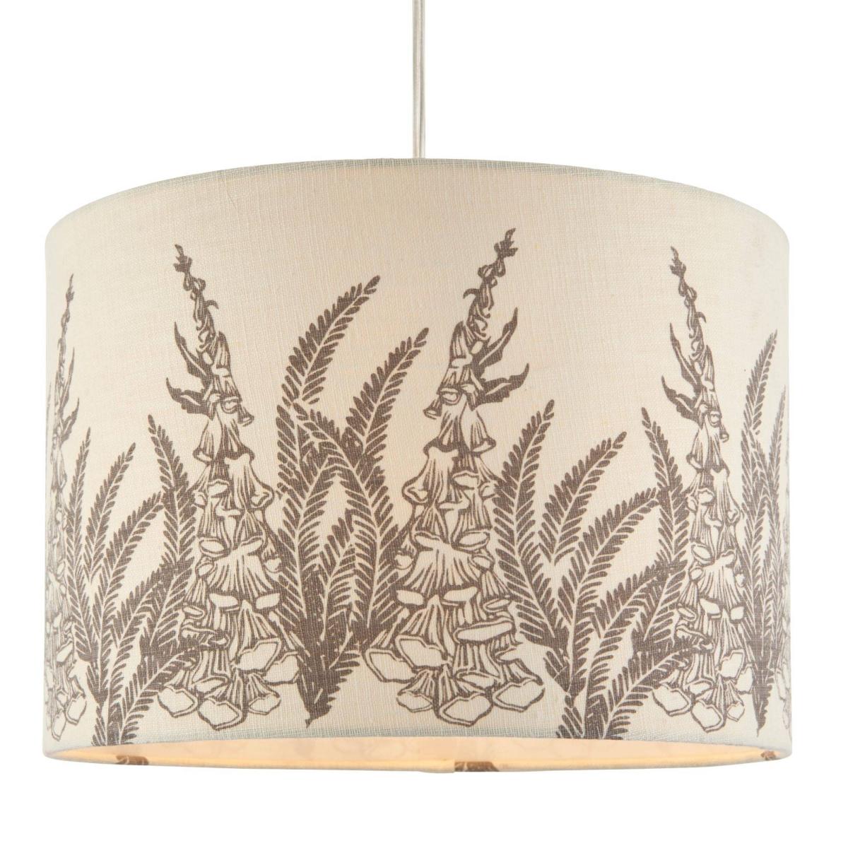 Modern pendant light shade boasting a warm grey floral print. A beautifully rustic light shade, the Fjell Pendant Light Shade is a lovely piece from Pagazzi Lighting. A natural linen mix with a screen-printed, warm grey floral pattern creates a homely, country house style, which would look great in both traditional and contemporary interiors. It is an 'easy fit' non-electric pendant which can be fitted with ease to an existing bulb holder in living rooms, hallways and bedrooms. It's reversible gimble also allows the shade to be used with both table lamp and floor lamp bases.
