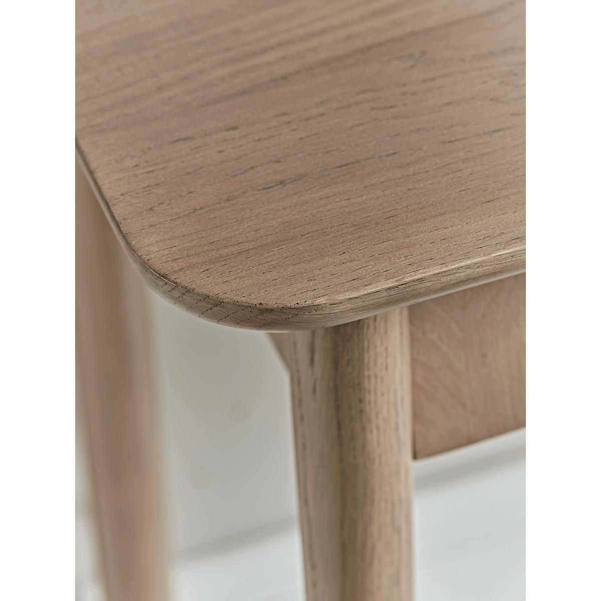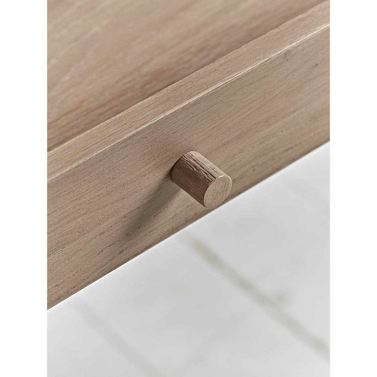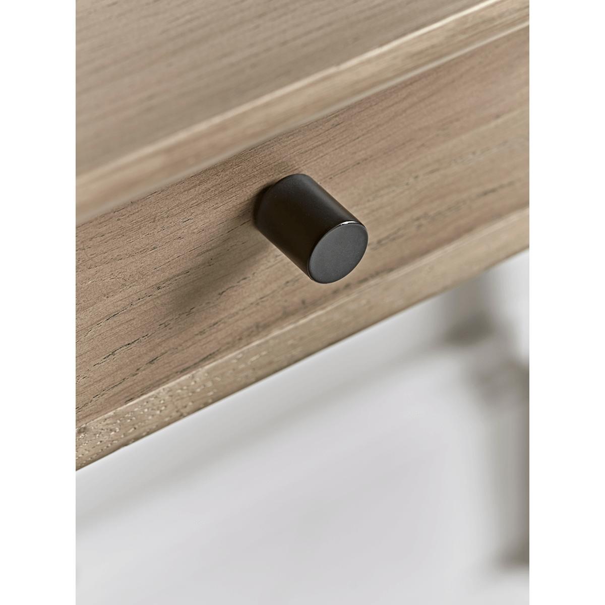 With a simple, elegant profile, our Scandinavian inspired desk features a polished oak surface with a lip detail, a wide length drawer and slender smooth legs. Crafted from oak with a greywash effect and flawlessly finished, our desk has a subtle wood grain and tactile, smooth edges. Choose from a oak drawer pull, or an alternative contrasting black metal pull.