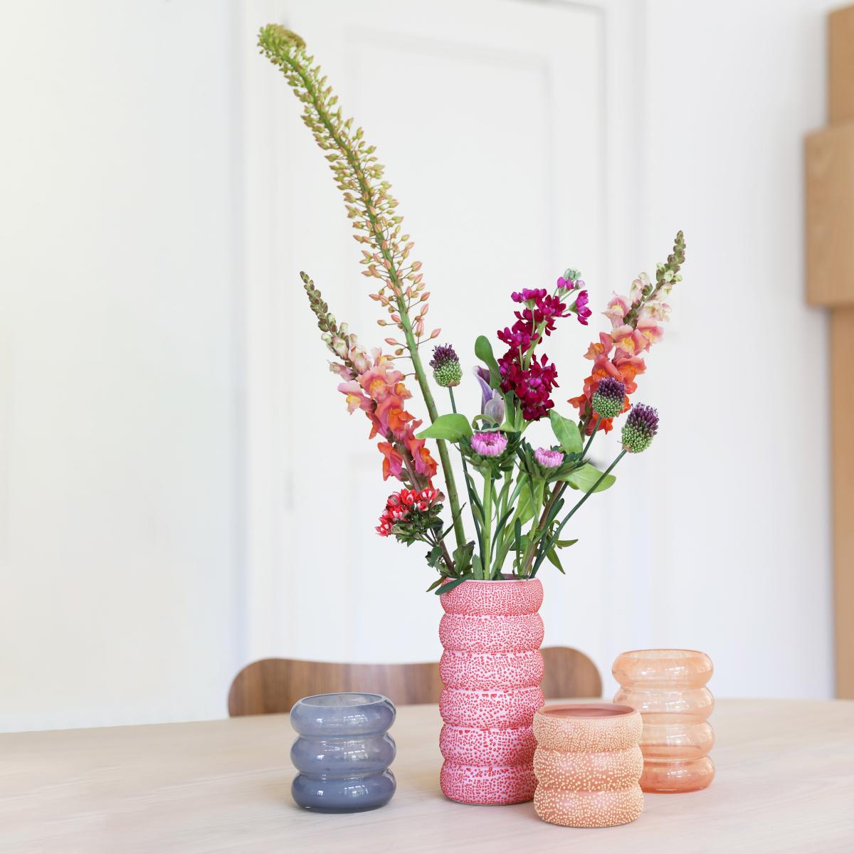 Inflated design! This "bulging" sandstone vase brings soft, rounded shapes into your interior and is sure to catch the eye. The vase is covered with multiple coloured microbubbles: an intriguing, tactile surface.