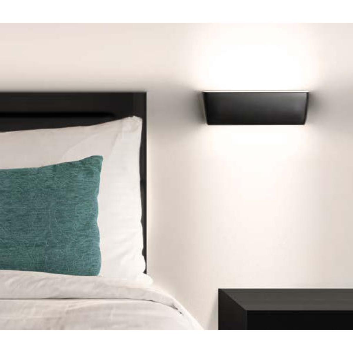 Wall lamp with double output for a flood uplight and downlight. Die-casted aluminium, with opal metacrylate diffuser.